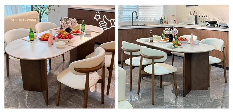 86.61 in <solid wood> dining table [Classy delifeng cave stone Superior Board]]