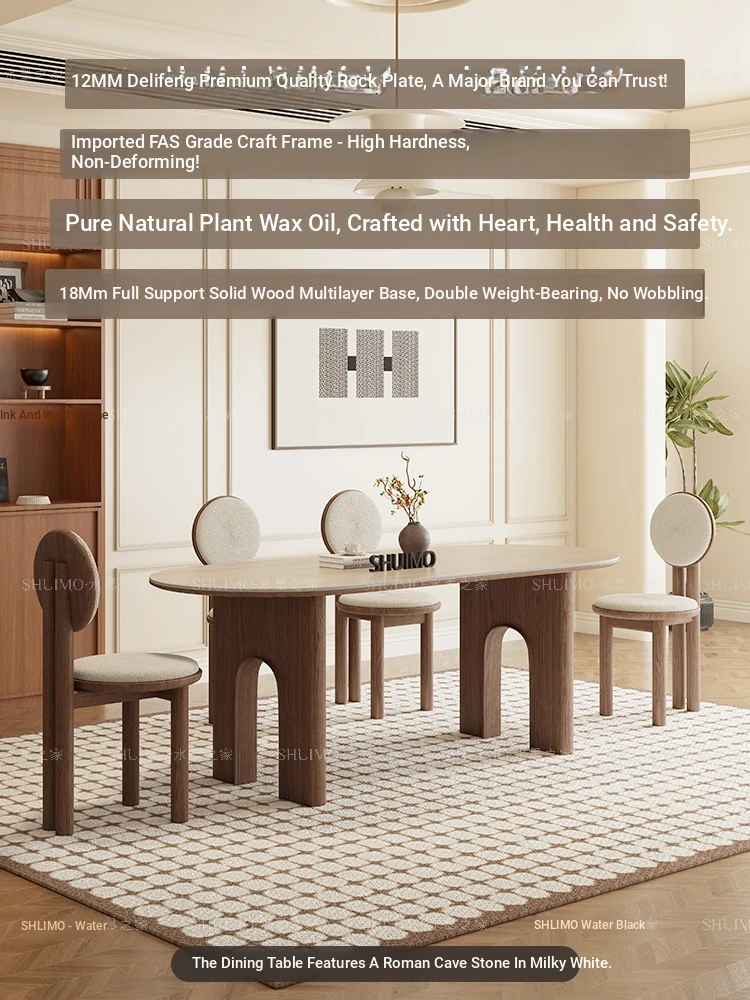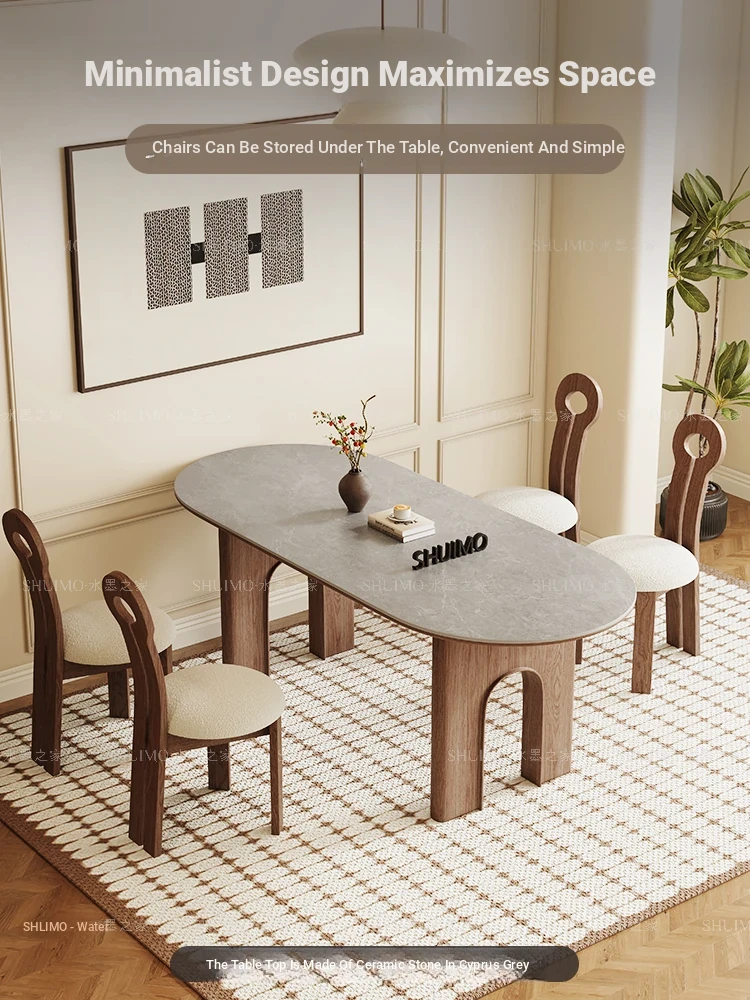 Delifeng French Style Cream Oval Rectangular Dining Table - Elegant Lightweight Design for Small Homes, Perfect for Living Room and Dining Area