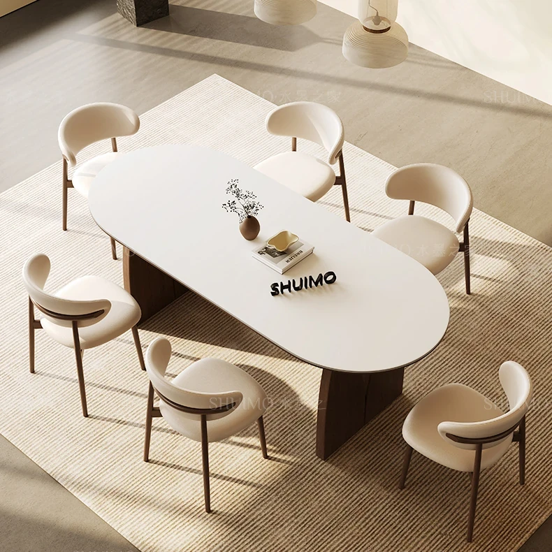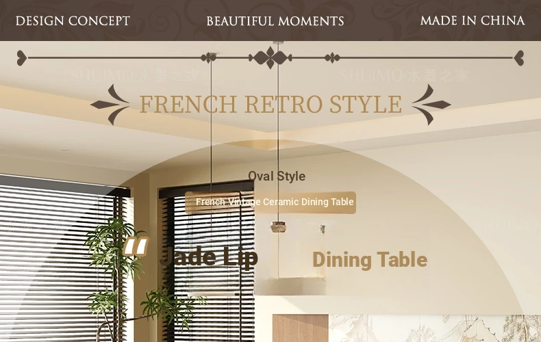 Delifeng French Style Cream Oval Rectangular Dining Table for Small Spaces - Elegant and Chic Home Table for Living Room