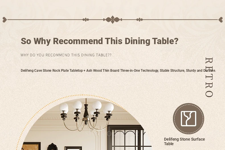Delifeng French Style Cream Oval Rectangular Dining Table - Luxurious Yet Compact Design for Small Spaces, Perfect for Your Living Room