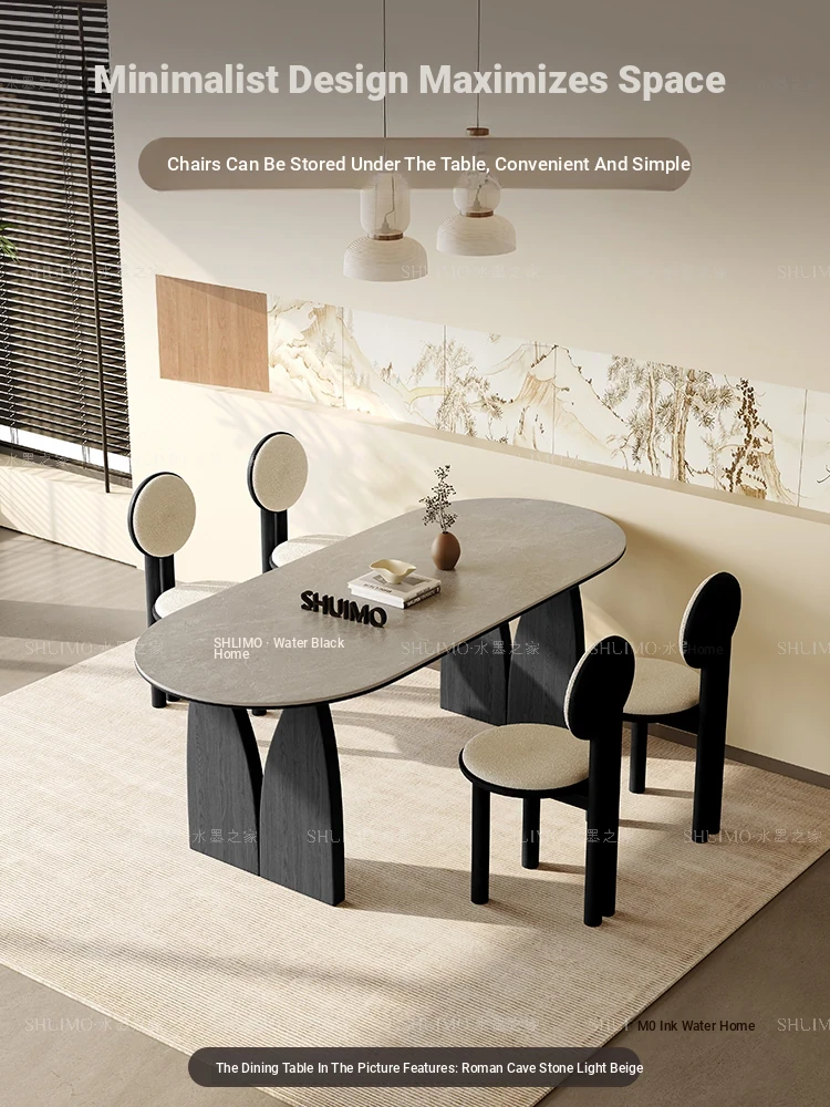 Delifeng French Style Oval Rectangular Dining Table - Luxurious Cream Finish for Small Homes, Perfect for Living Rooms