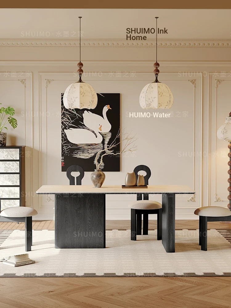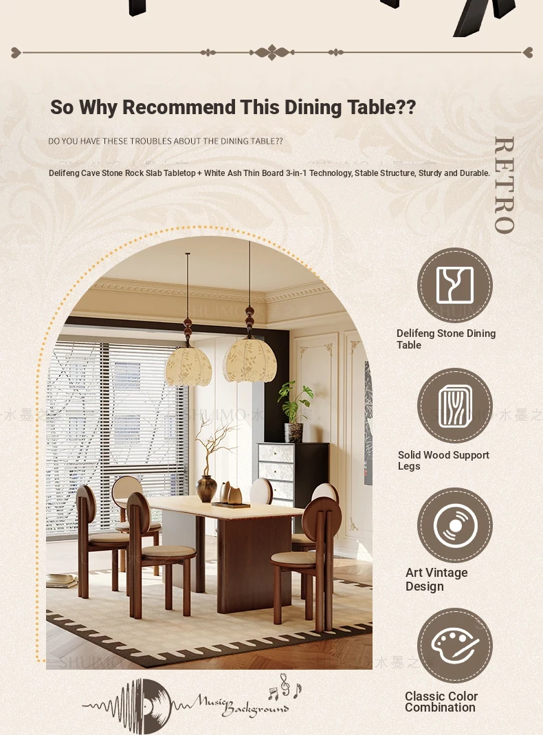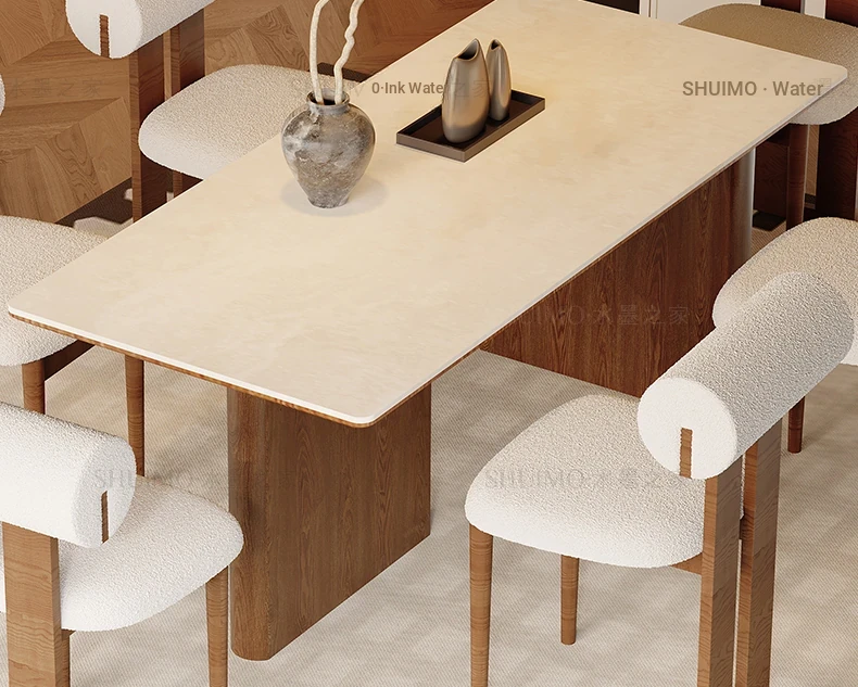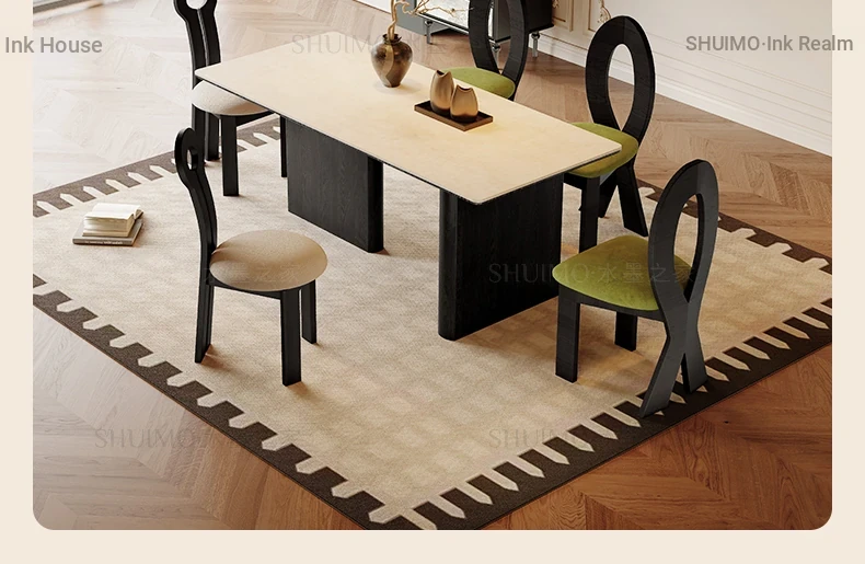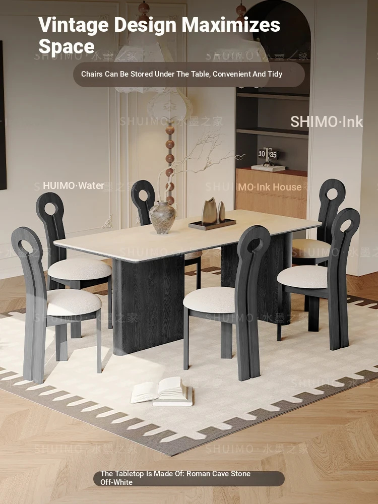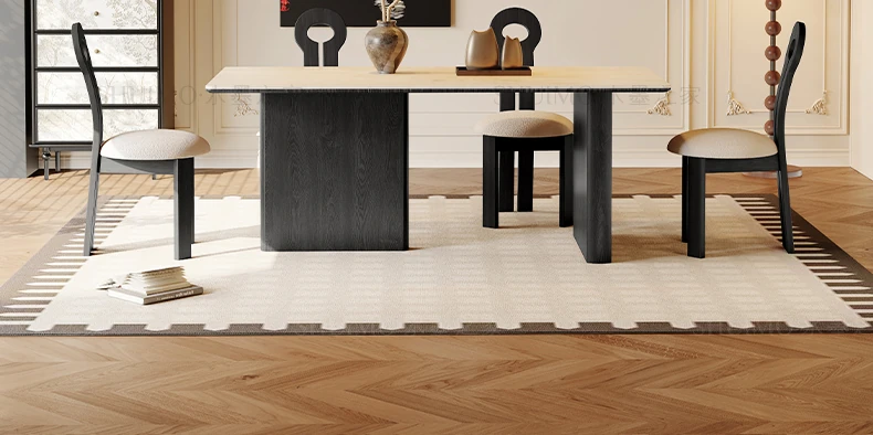 Delifeng French-Style Cream Half-Round Rectangle Dining Table for Small Homes - Elegant Luxury Design for Living Room, Perfect for Cozy Spaces