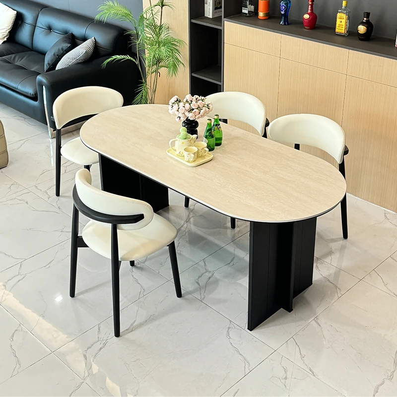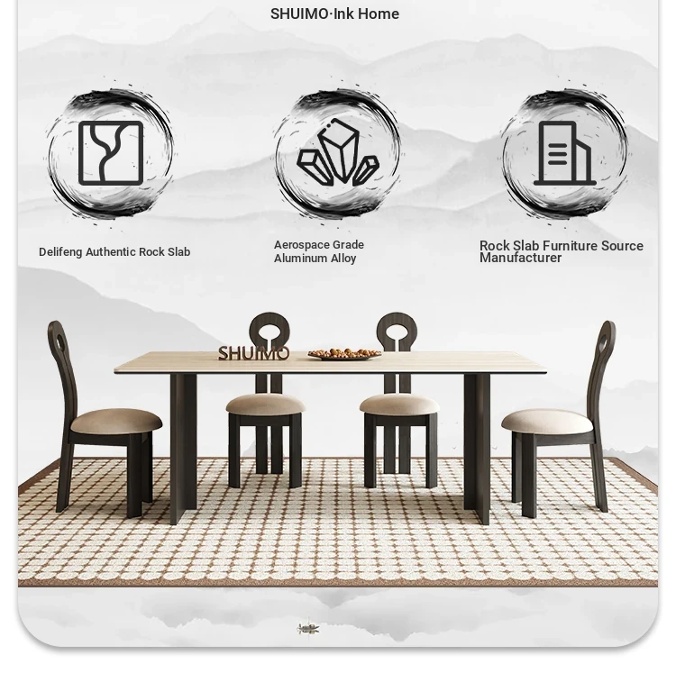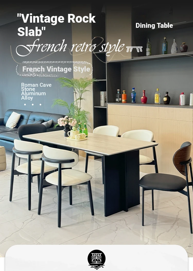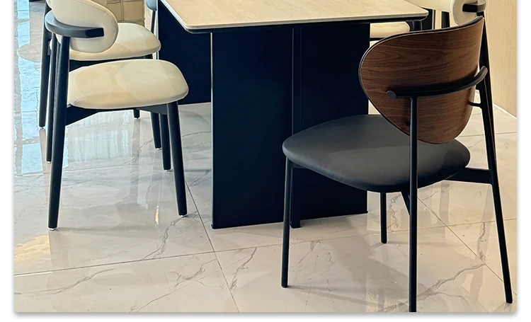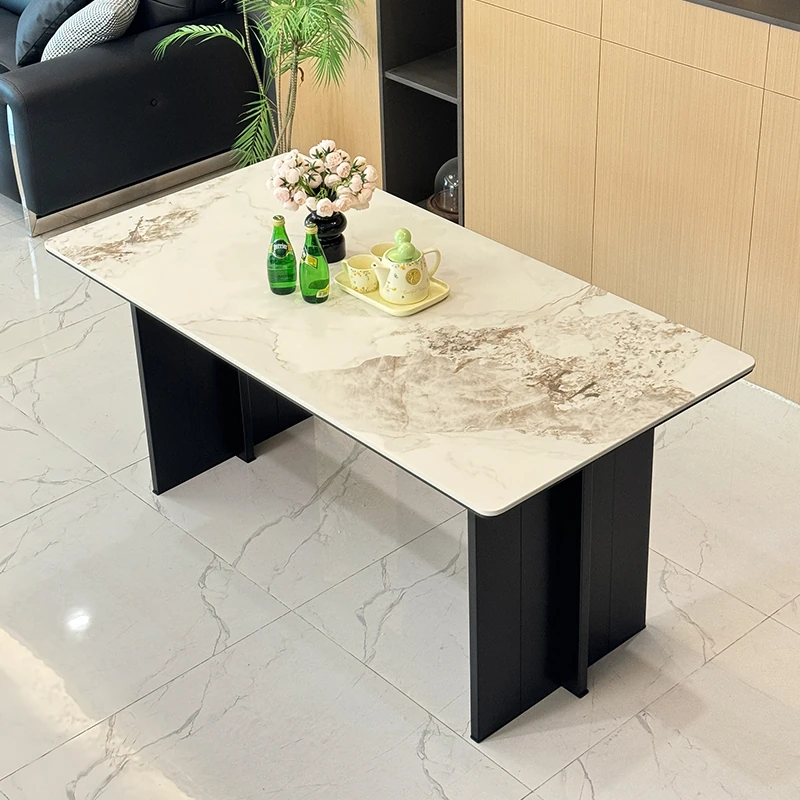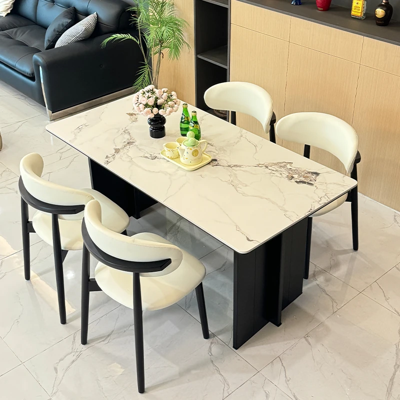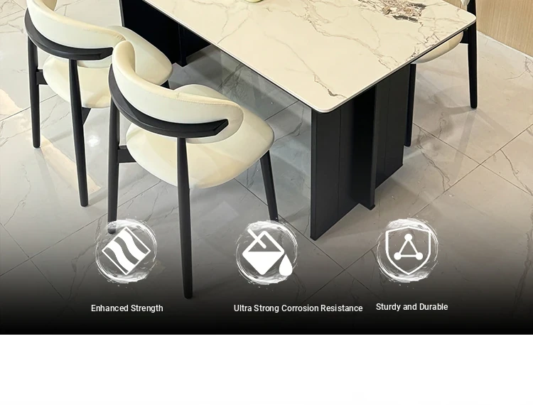 Delifeng Latte Rock Plate Dining Table - Modern Black Aluminum Alloy Table and Chair Set for Small Living Spaces, Perfect for Stylish Home Dining