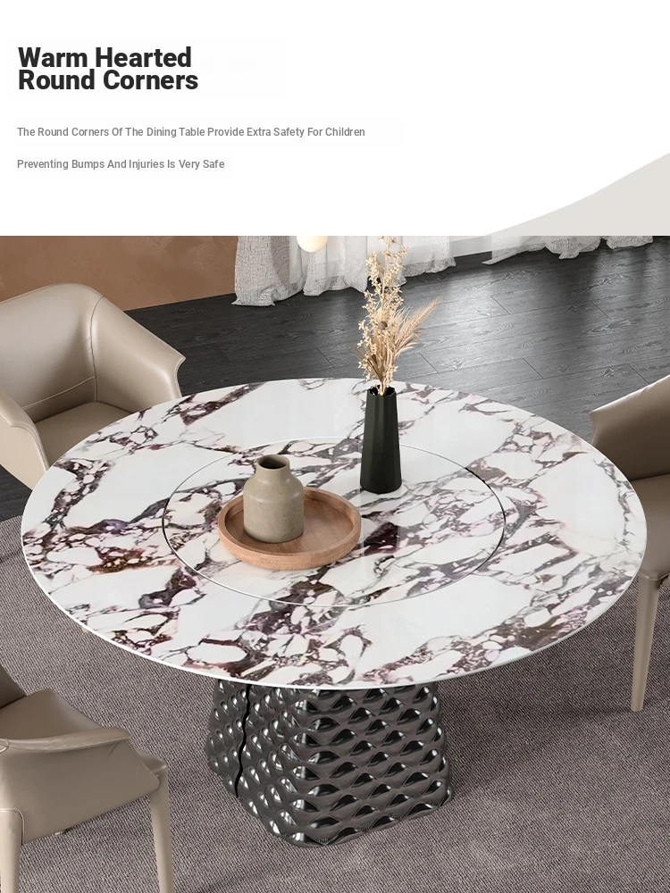 Delifeng Luxury Round Dining Table with Rotating Tray - Stunning High-Gloss Stone Surface for Home Use, Ideal for Villas and Open Spaces - Elevate Your Dining Experience with Elegance and Style