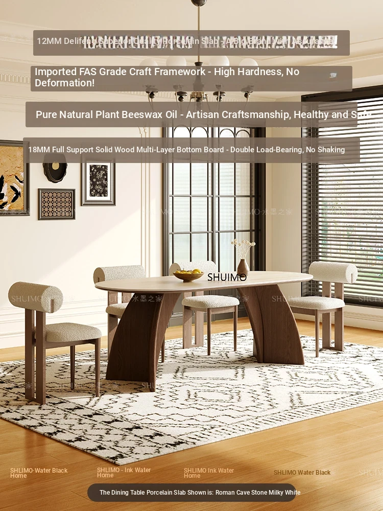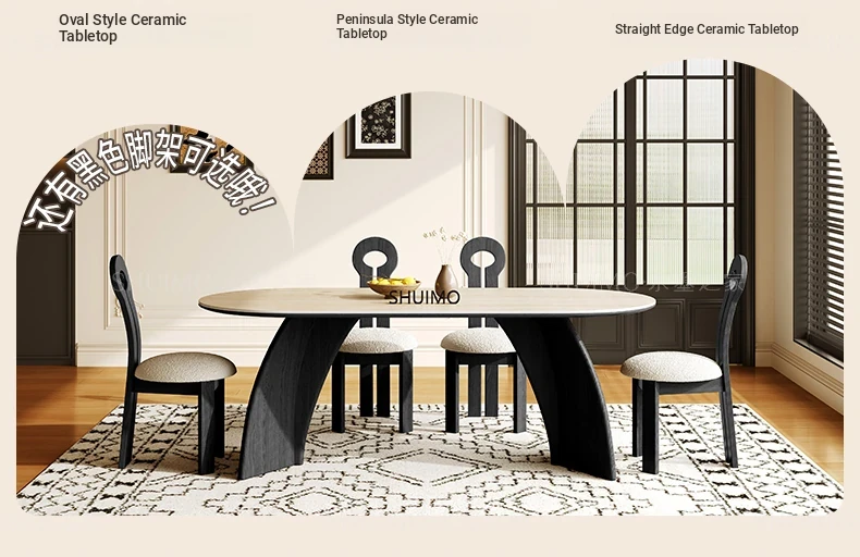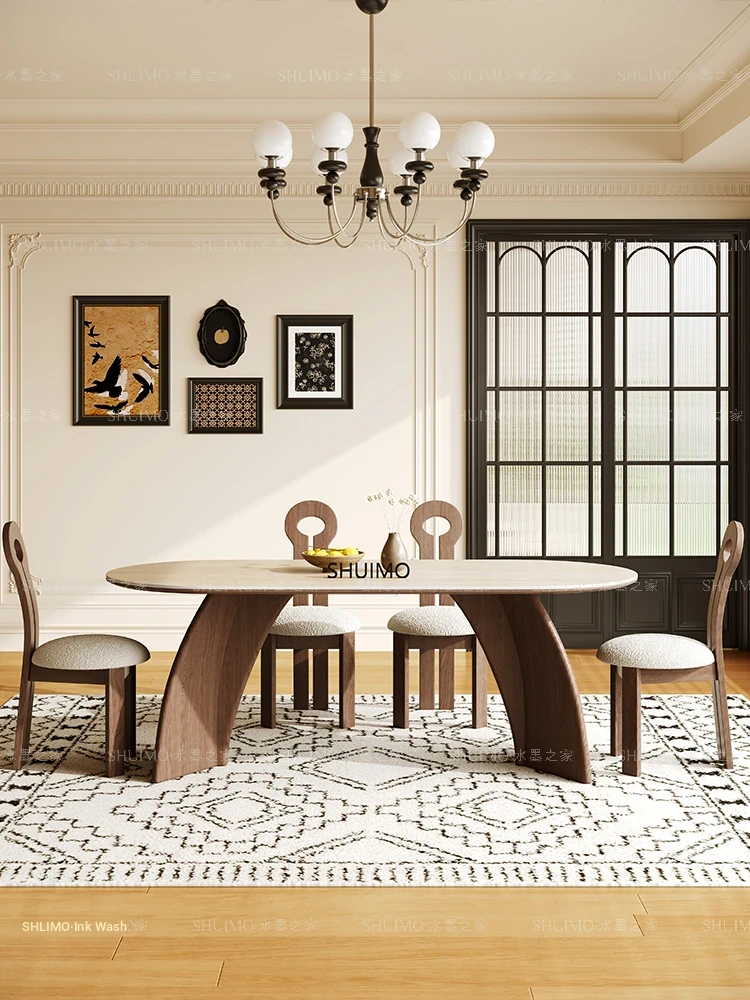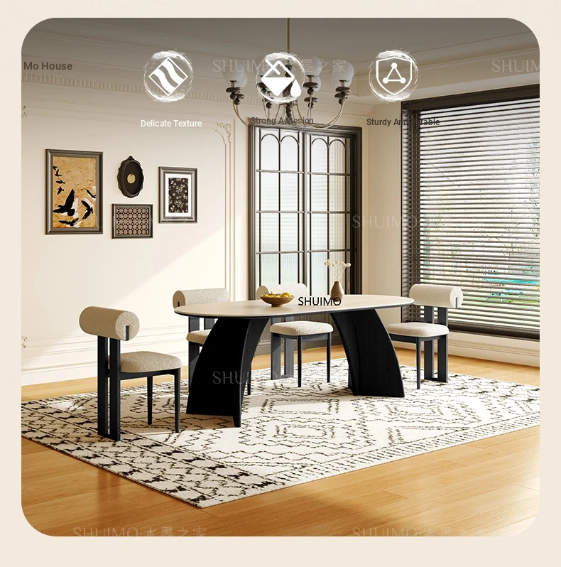 Delifeng Oval Rectangular French Dining Table – Elegant Cream Table for Small Homes, Ideal for Living Rooms – Perfect for Chic Dining Experiences