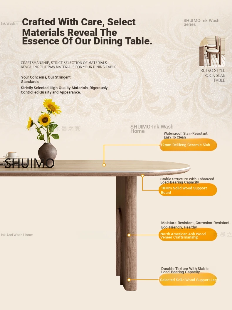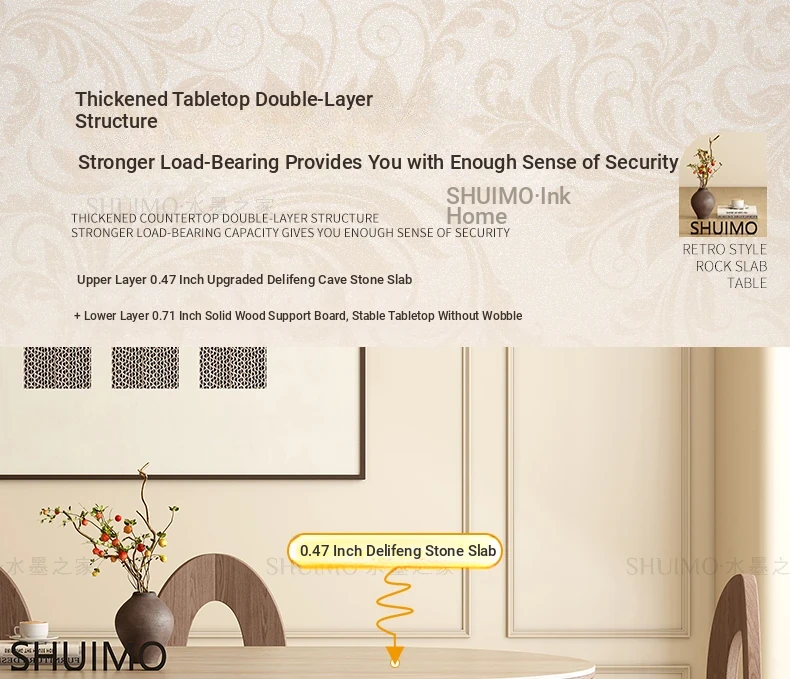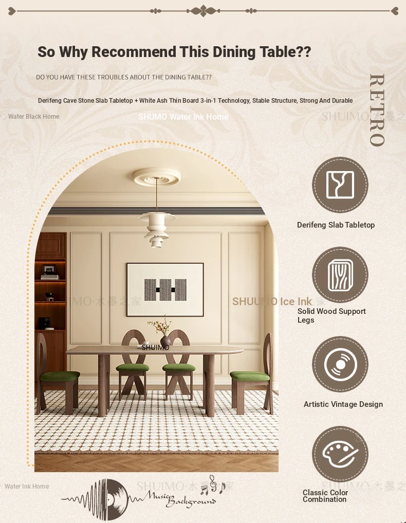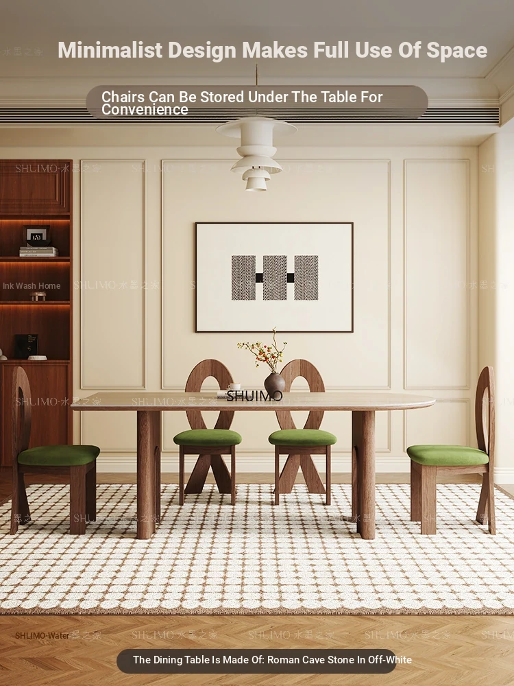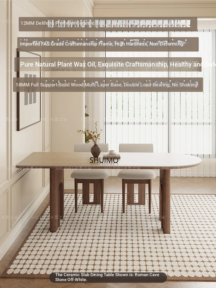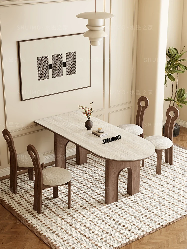 Delifeng Rock Plate French Style Dining Table - Elegant Cream Oval Rectangular Table for Small Spaces, Perfect for Your Living Room