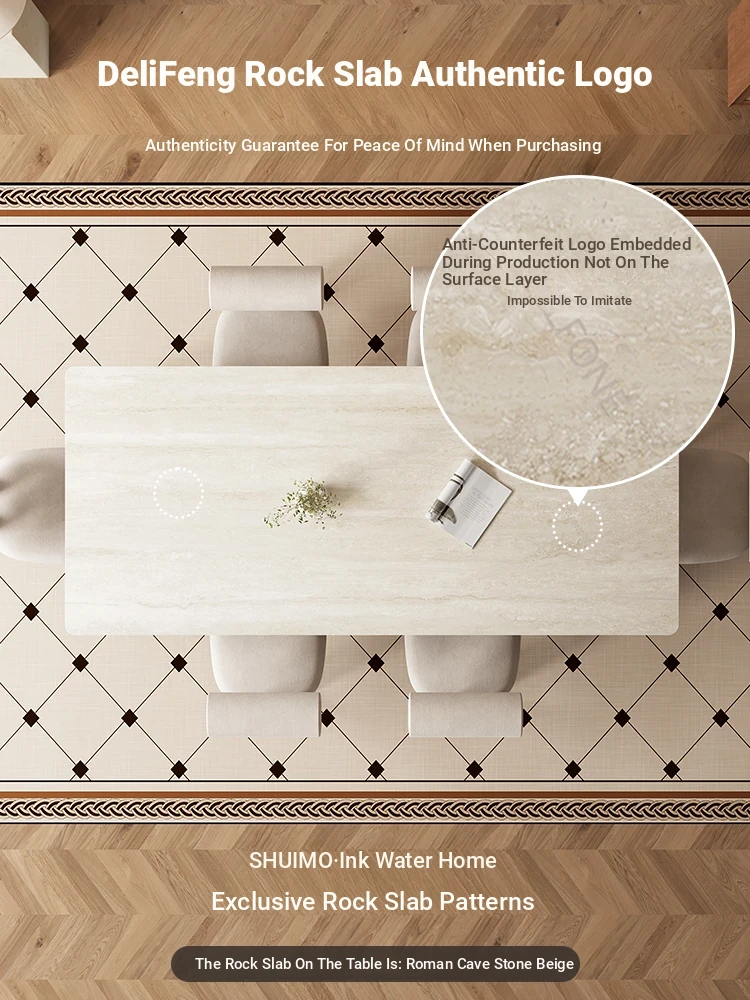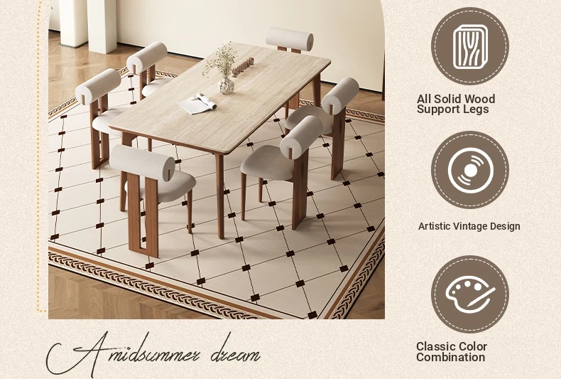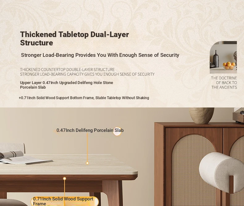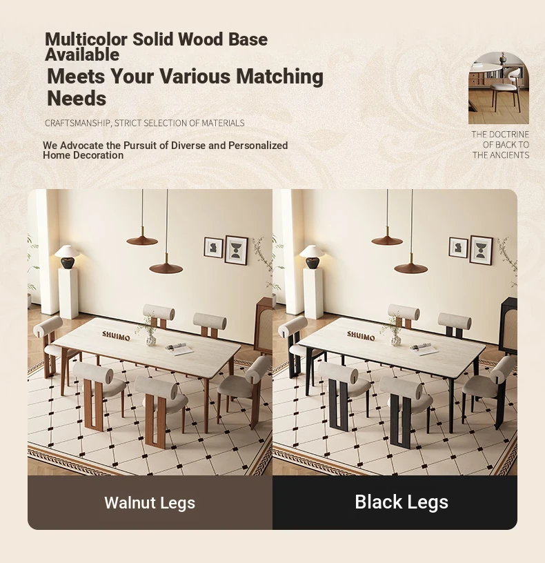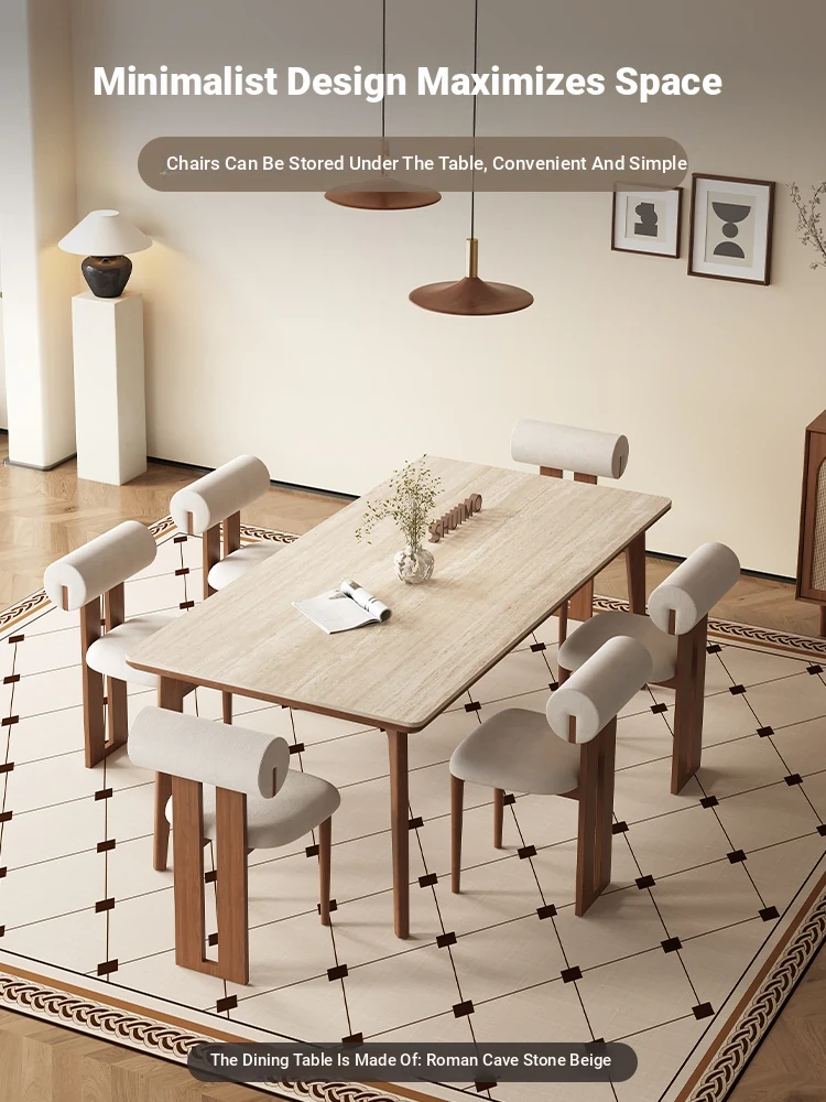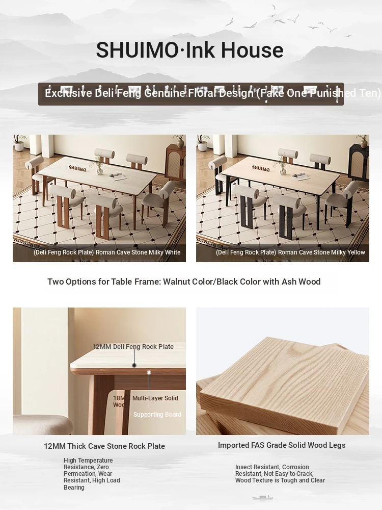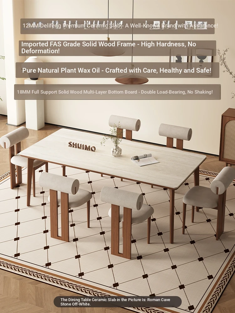 Delifeng Solid Wood Rock Plate Dining Table - Walnut and Ash for Modern Minimalist Living Room, Perfect for Small Spaces, Stylish and Functional Dining Set