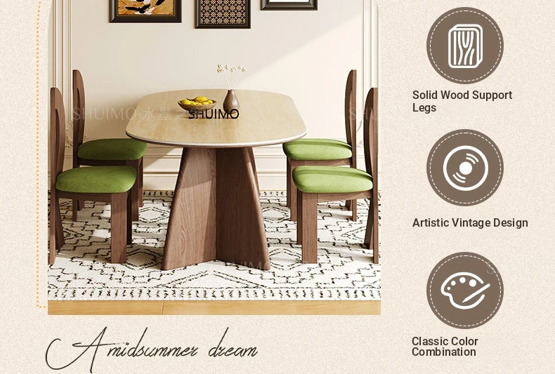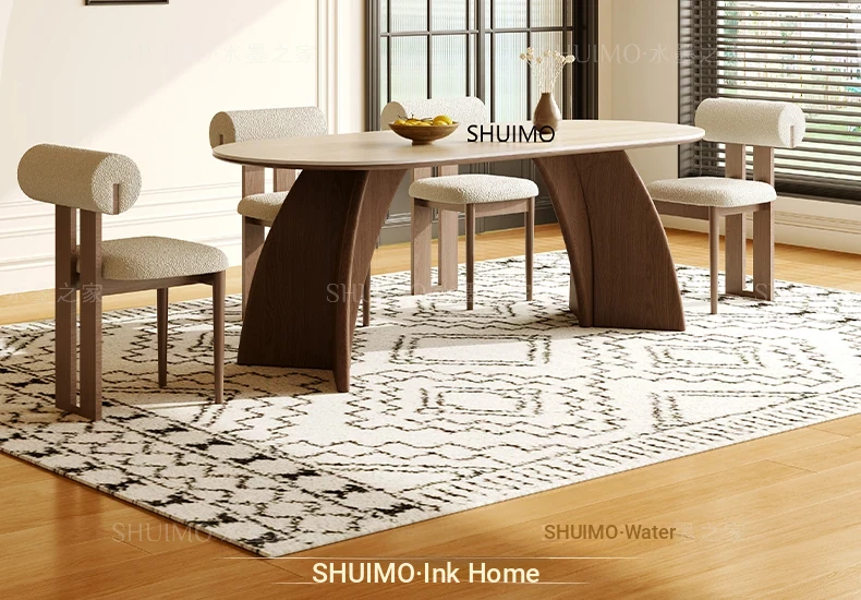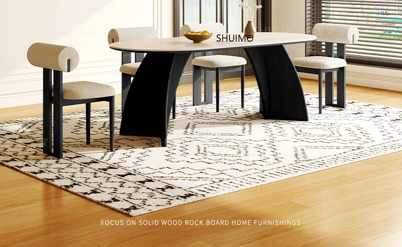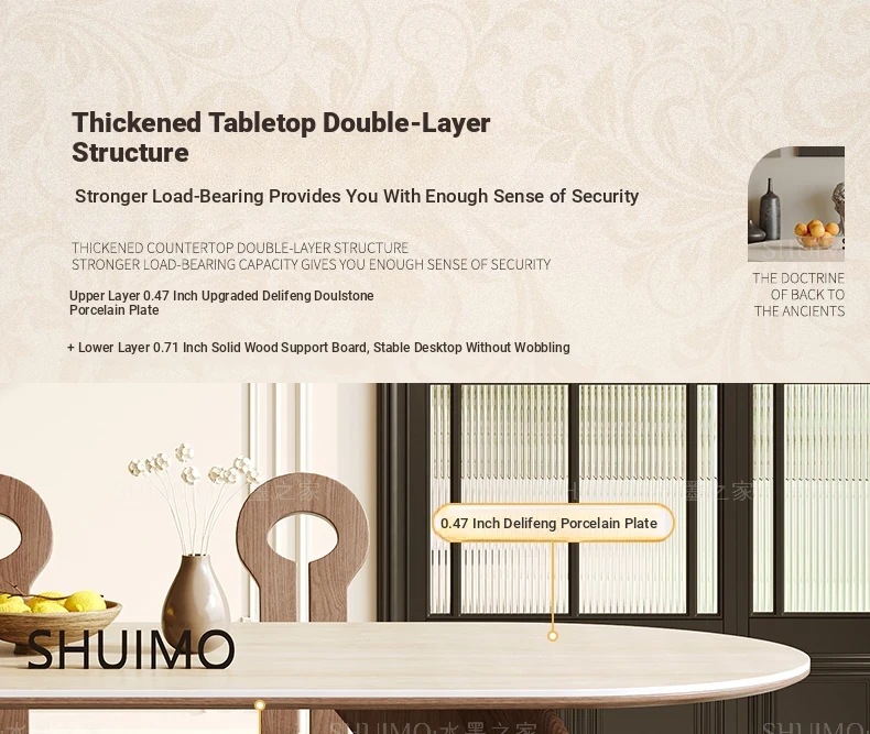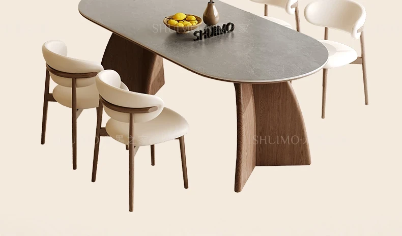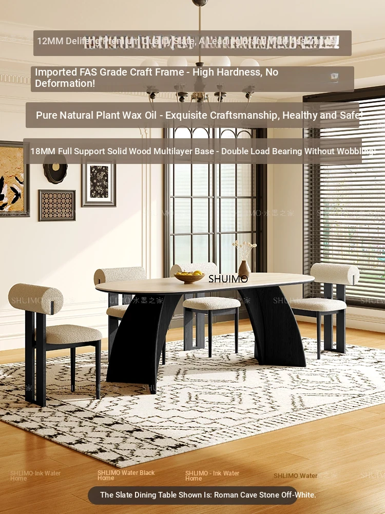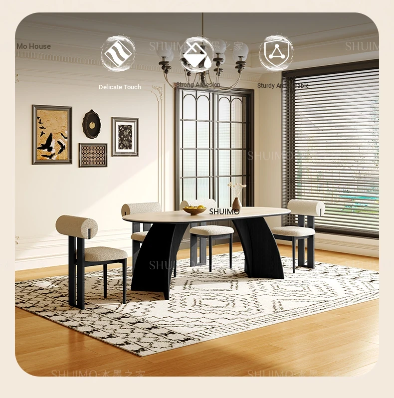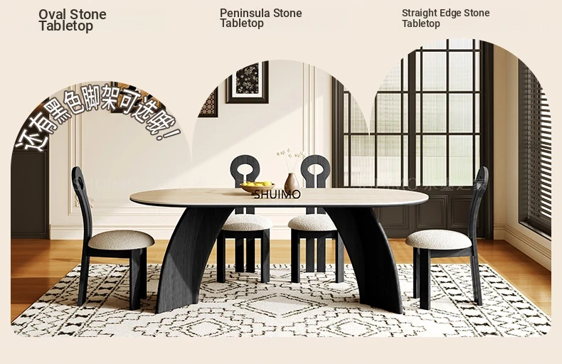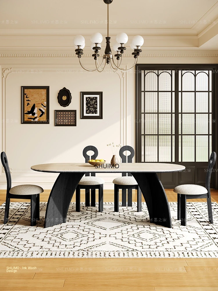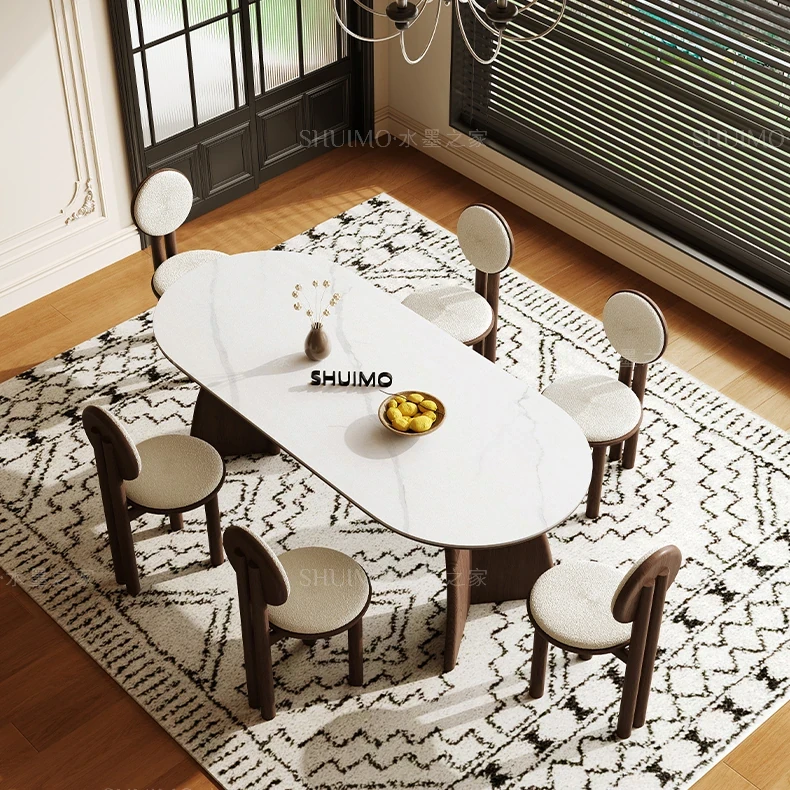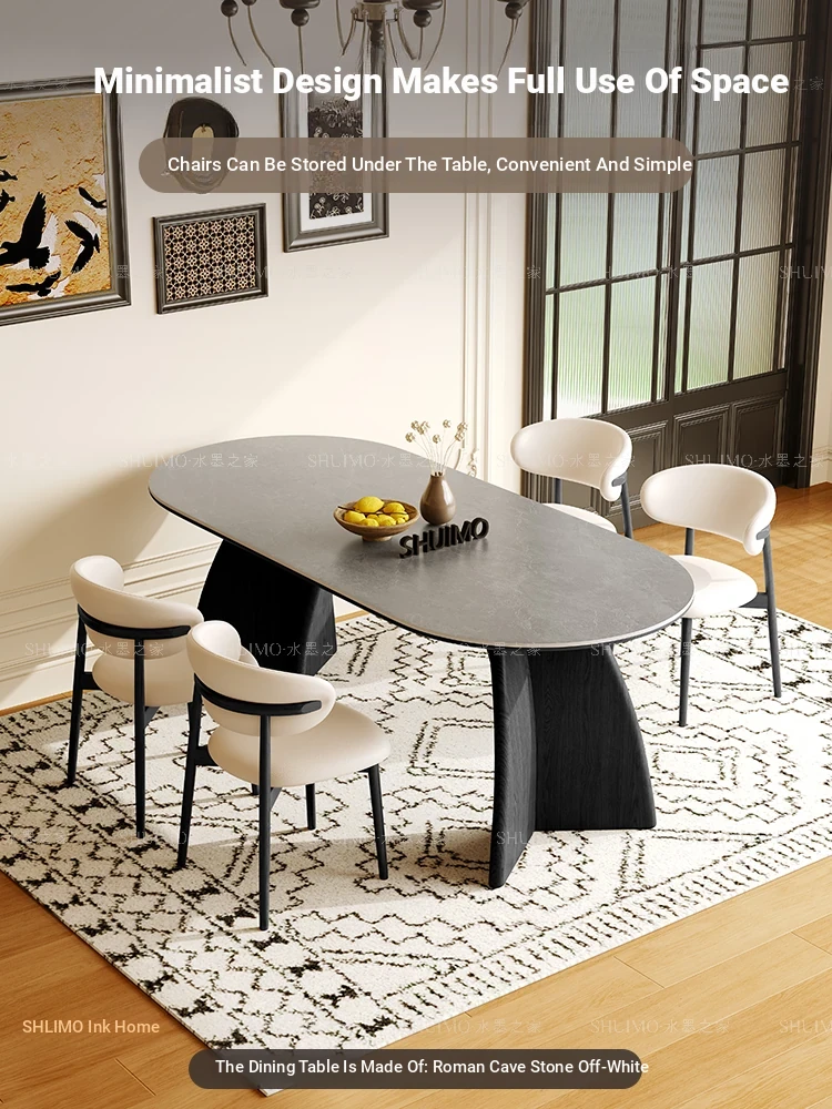 Delifeng Stone Dining Table - Elegant Cream Oval Rectangular Table for Small Homes, Perfect for French-style Dining in Your Living Room. Ideal for Cozy Gatherings and Stylish Decor.