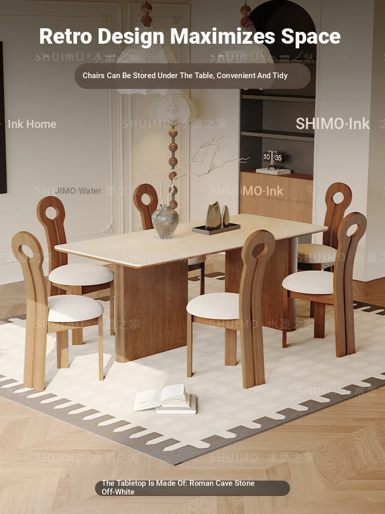 Delifeng Stone Dining Table - French Style Cream Half-Round Rectangular Table for Small Spaces, Perfect for Luxurious Home Dining in Your Living Room