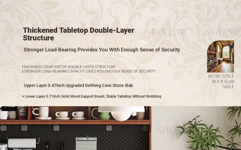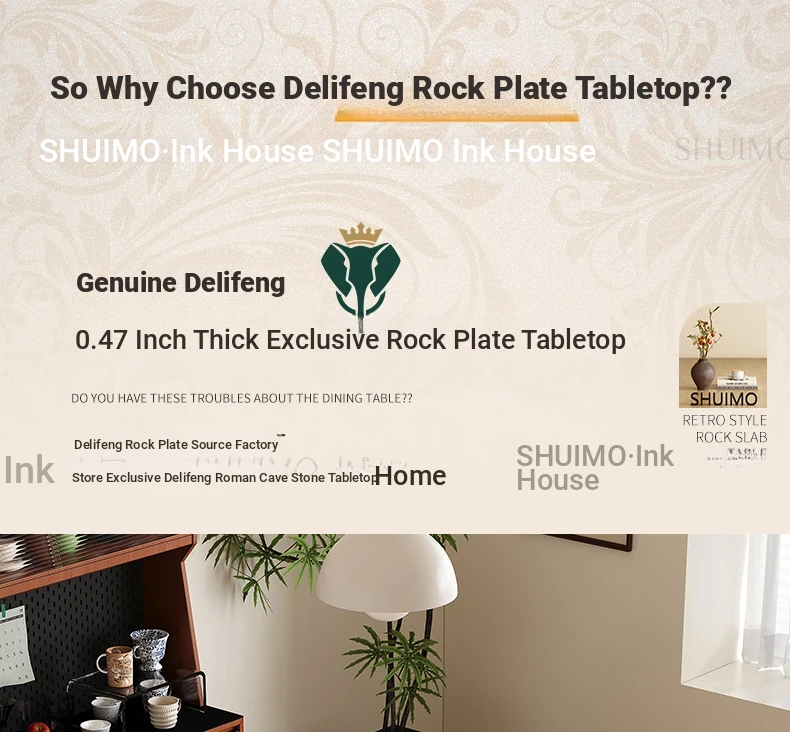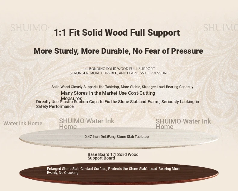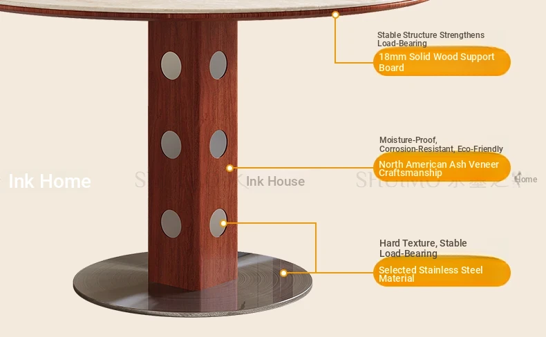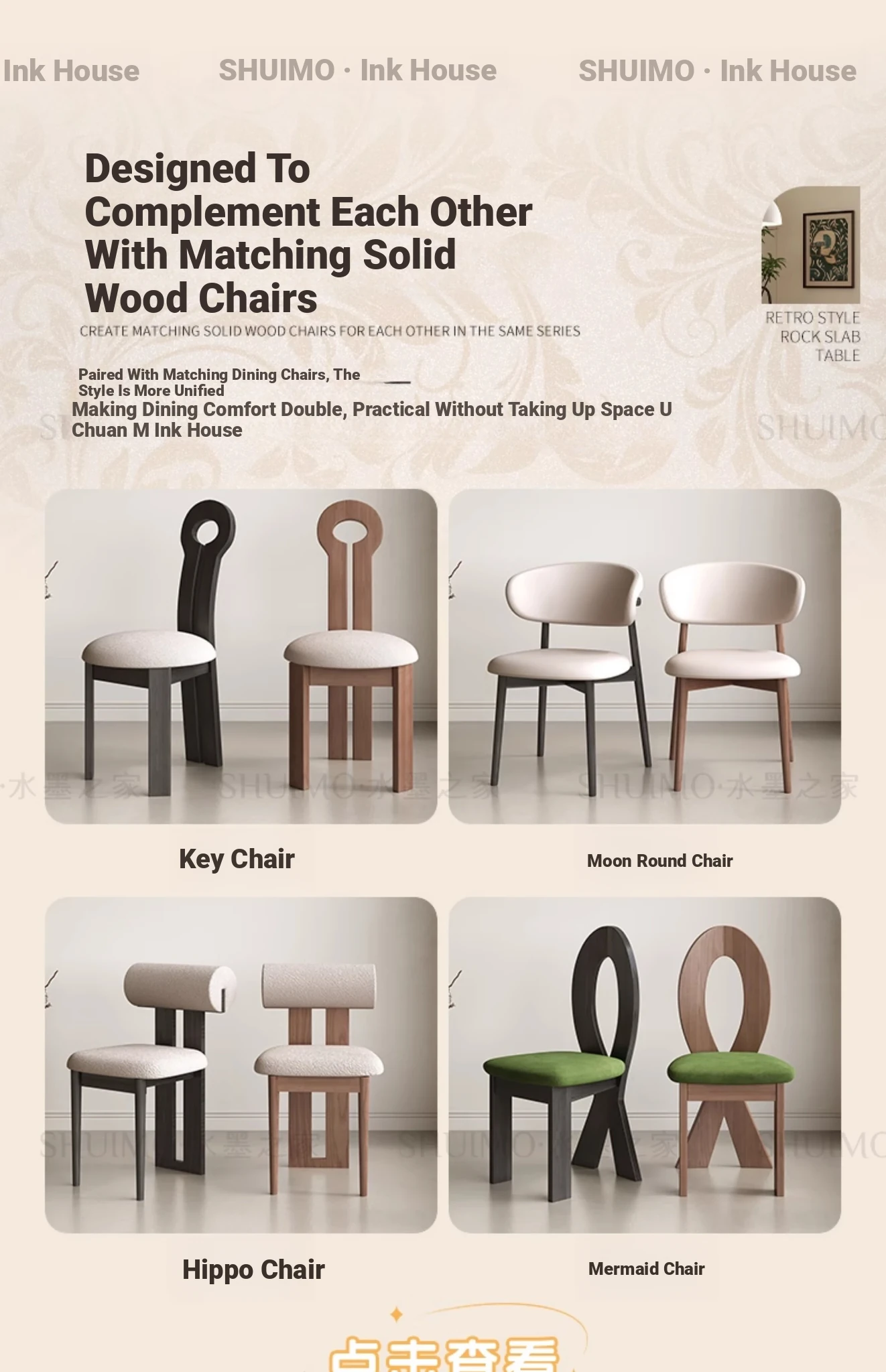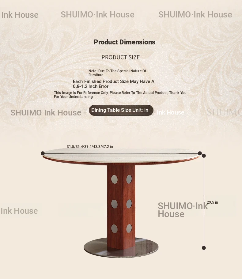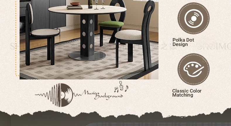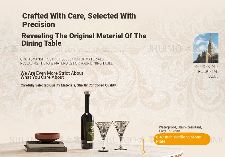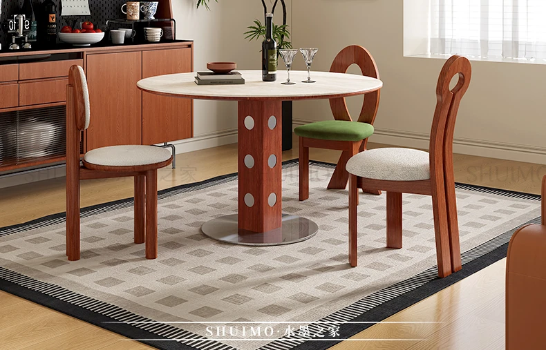 Delifeng Vintage Round Dining Table with Rock Slab Top and Metal Legs - French Bauhaus Style Solid Wood Table for a Chic Dining Experience