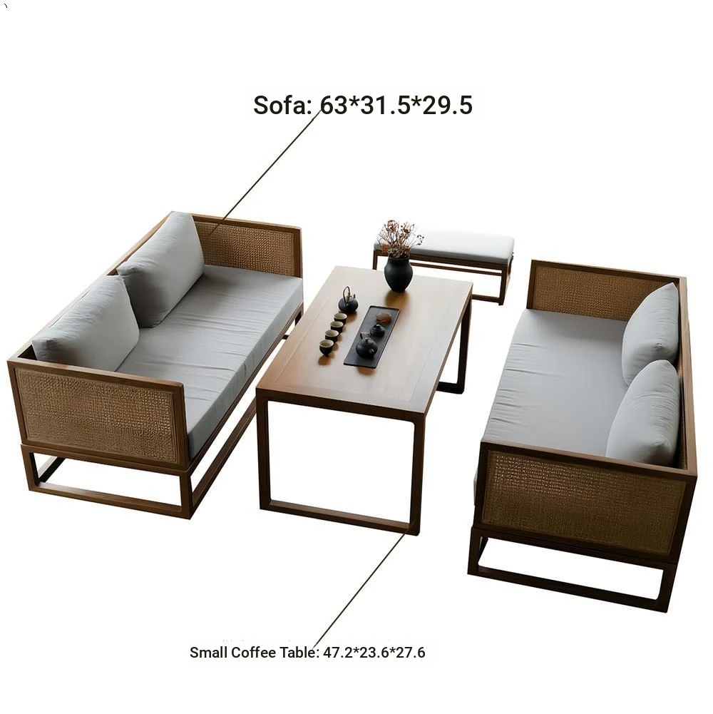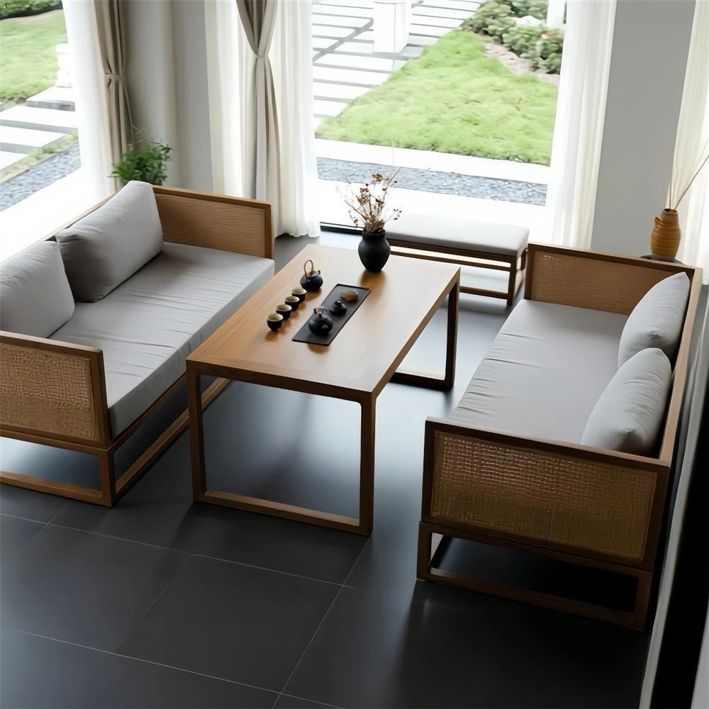 Elegant New Chinese Style Tea House Booth Seating - Premium Solid Wood Sofa Set for High-End Restaurants, Hotels, and Guesthouses. Perfect for Sales Offices and Reception Areas.