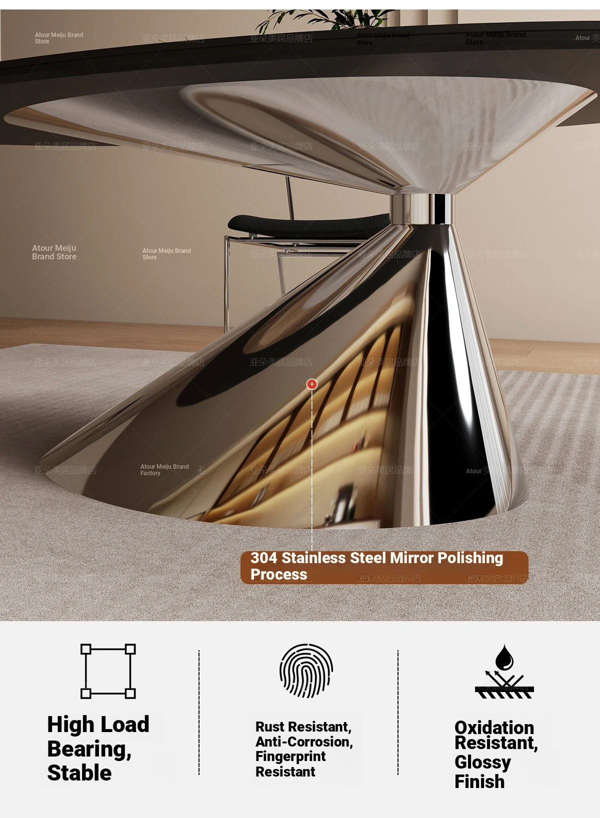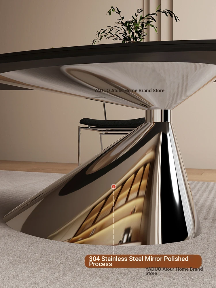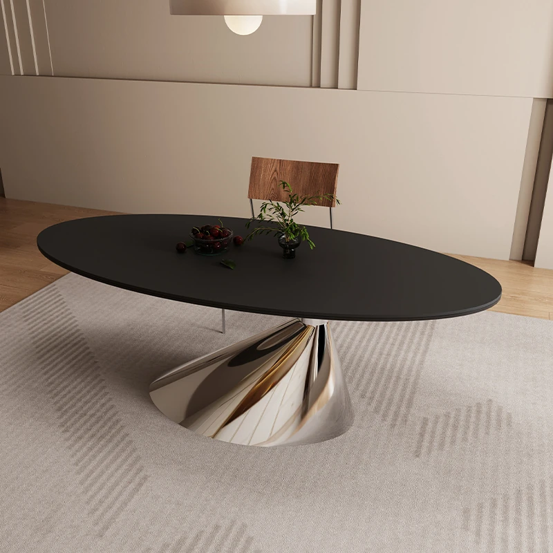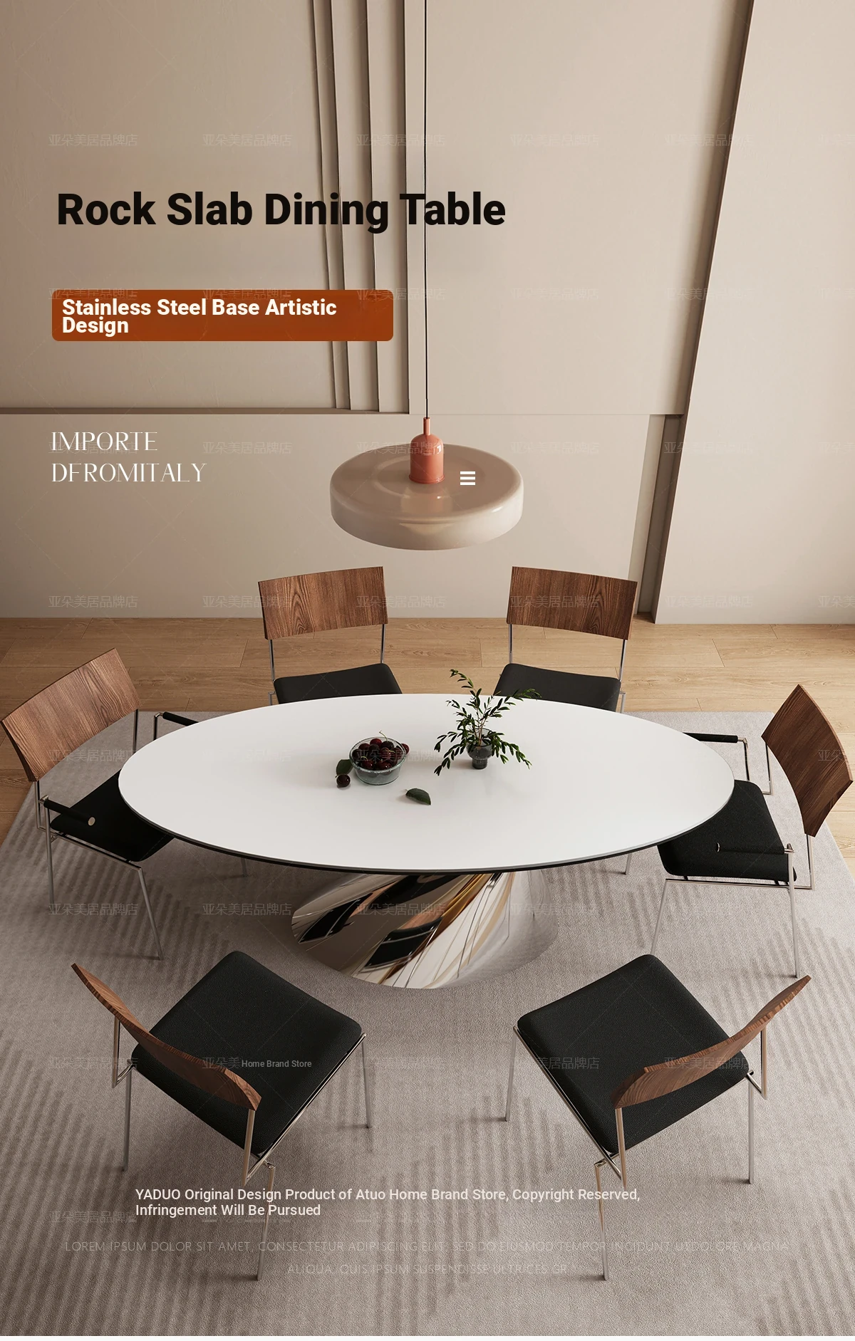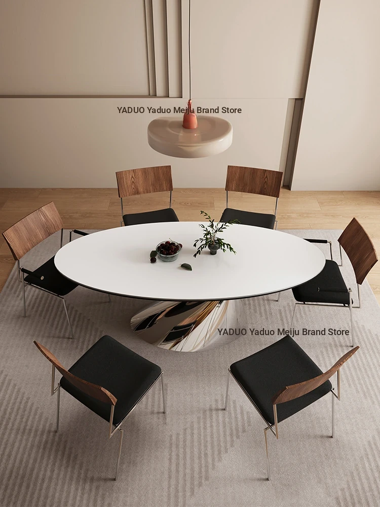 Elegant Oval Dining Table Set with Chairs - Modern Minimalist Design for Home, Featuring Luxury Stone Finish and Artistic UFO Shape, Perfect for Stylish Living Rooms.