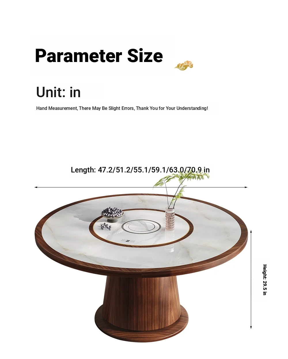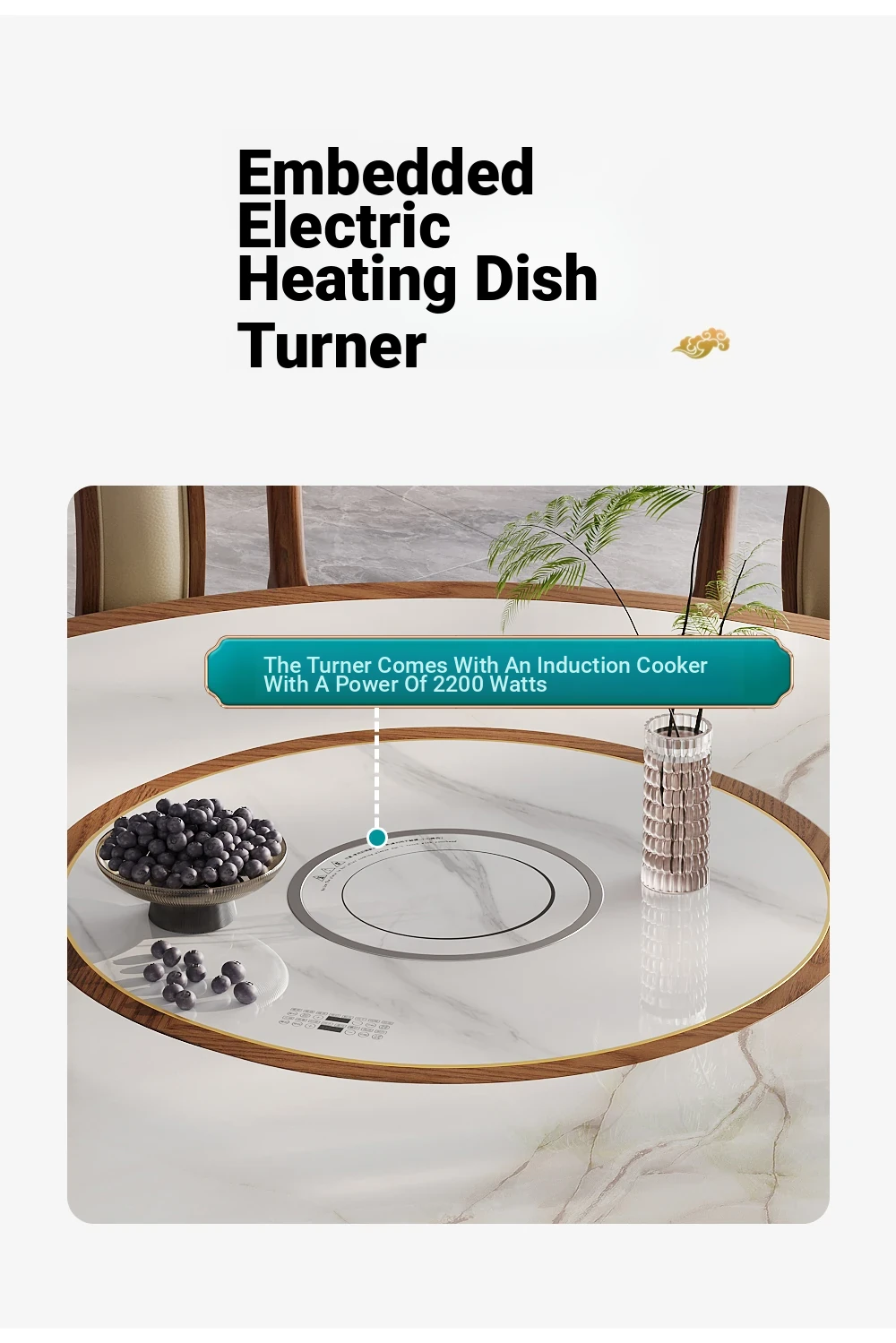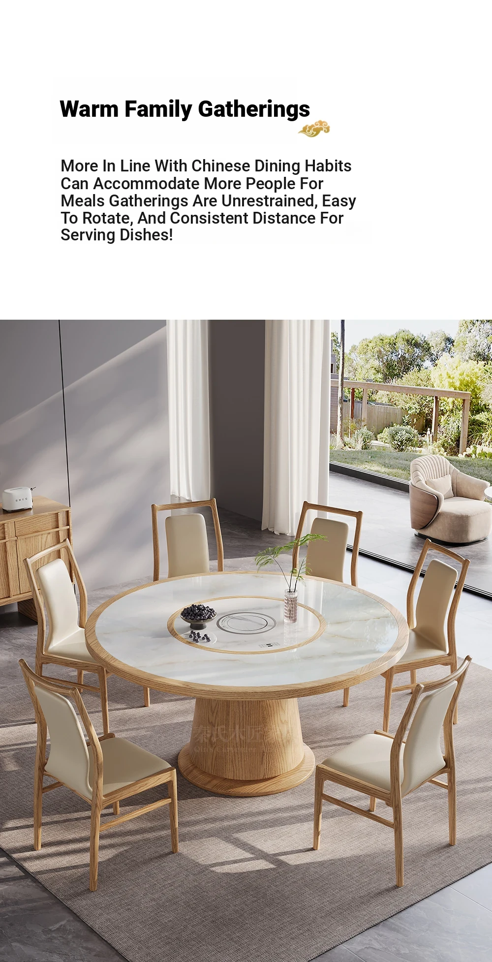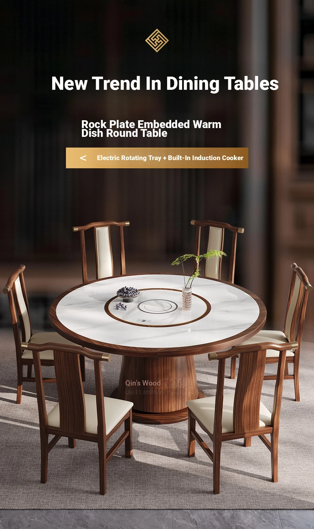 Elegant Solid Wood Multi-Functional Dining Table Set with Induction Cooker and Electric Warming Plate - Modern Chinese Style Round Table for Home Use