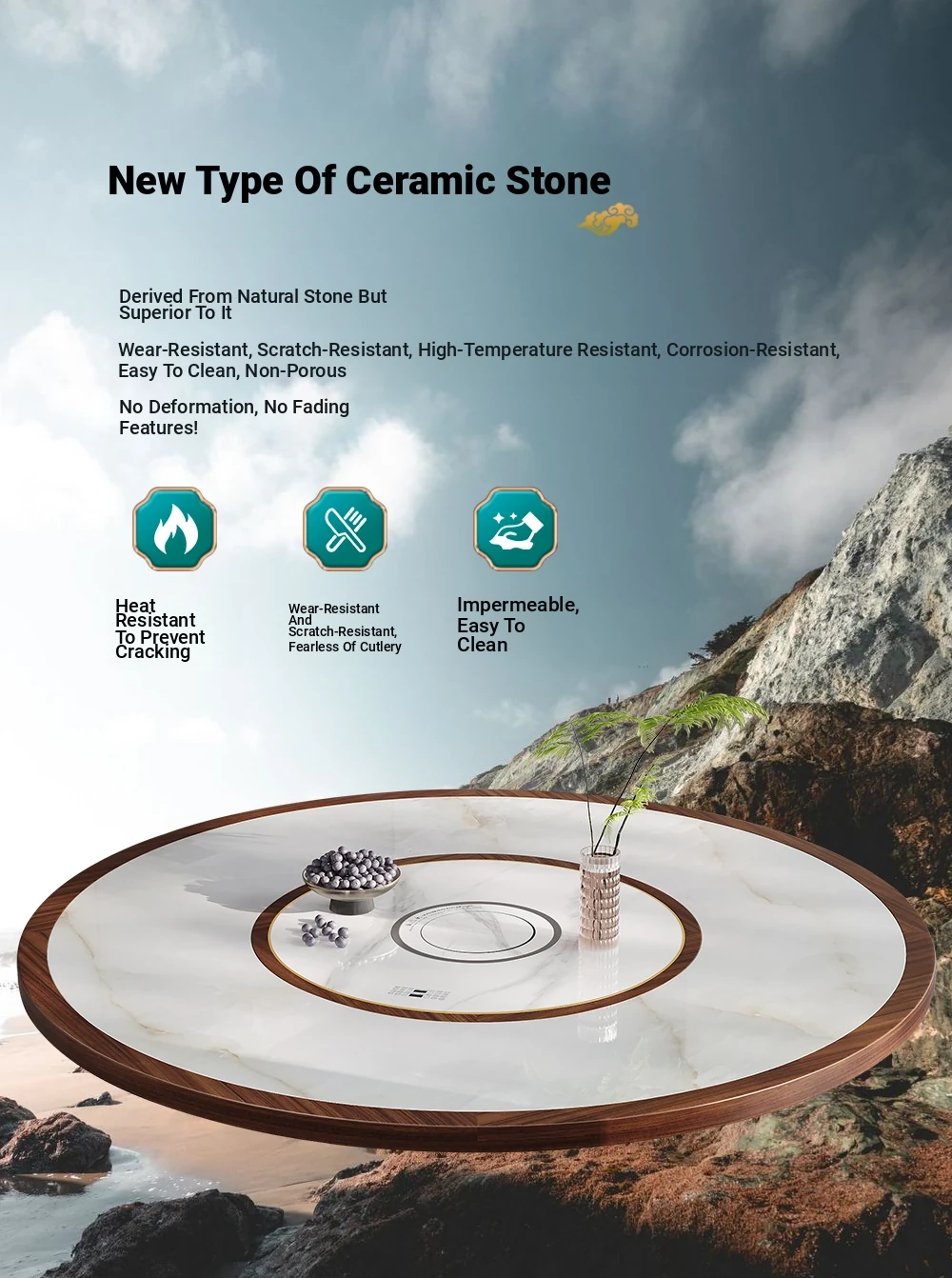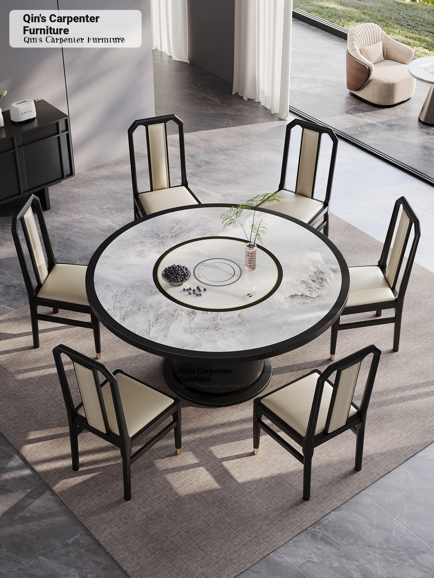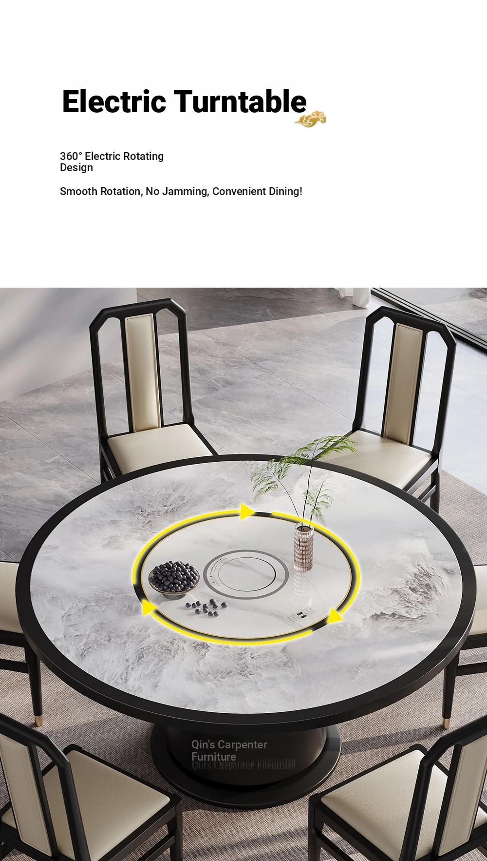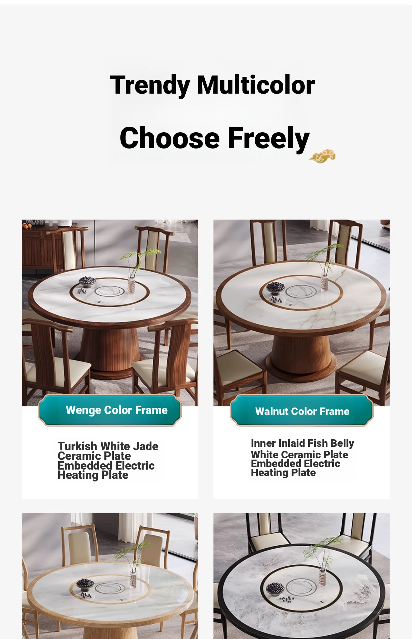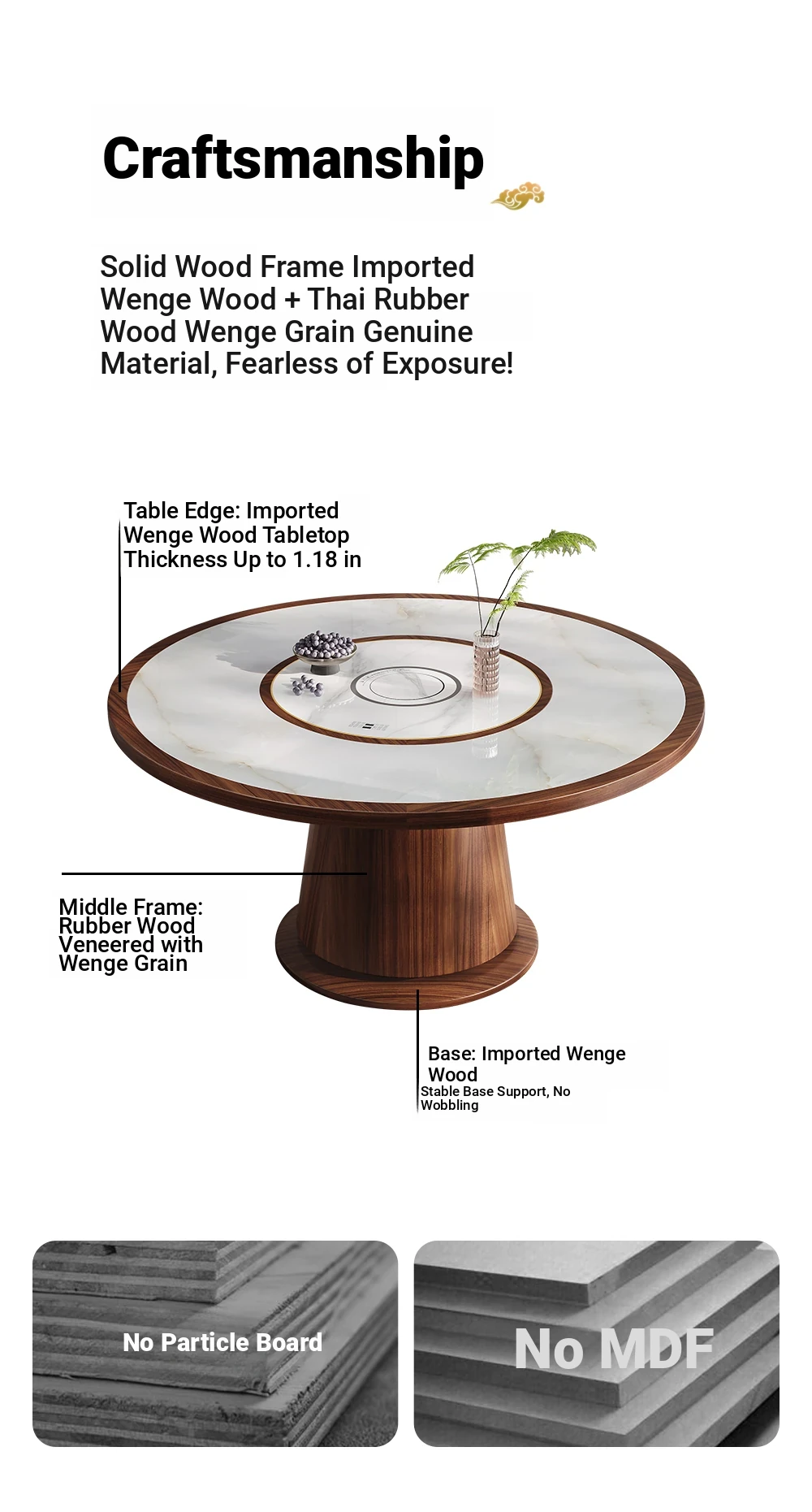 Elegant Solid Wood Multi-Functional Dining Table Set with Induction Cooker and Electric Warming Plate - Modern Chinese Style Round Table for Home Use