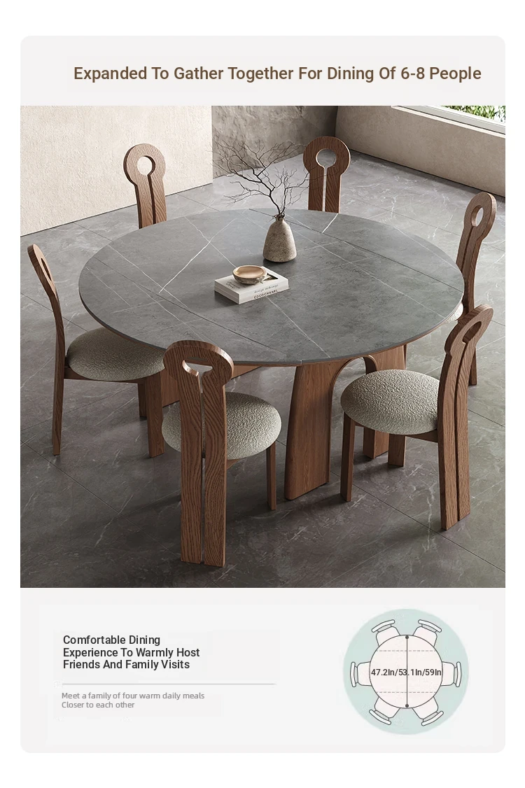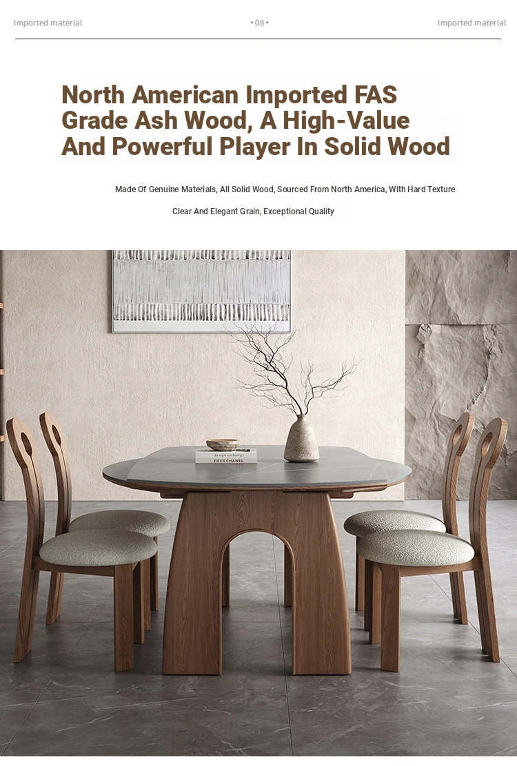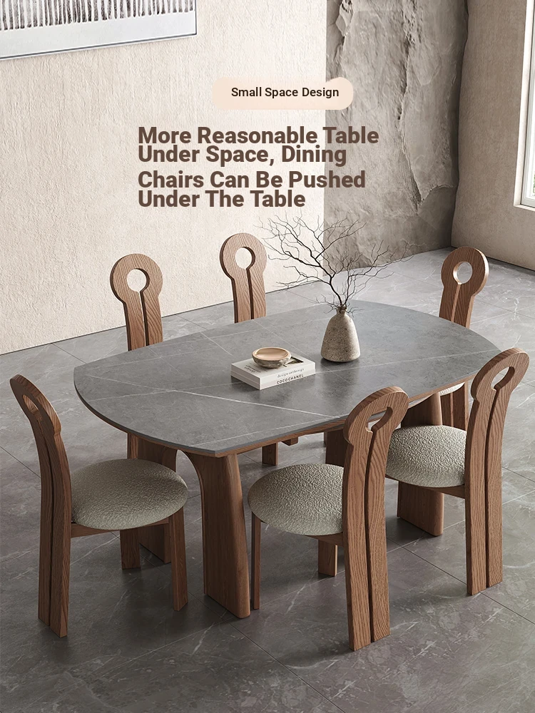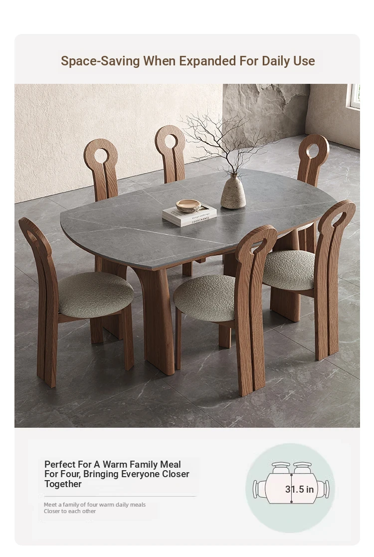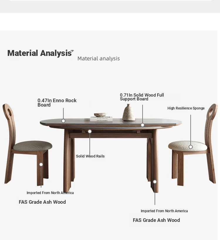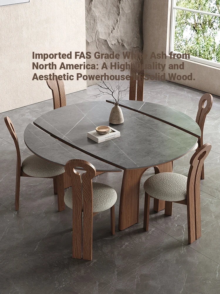 51.18in telescopic dining table +6 chairs [ash wood/Eno rock plate]]