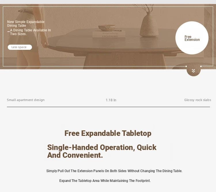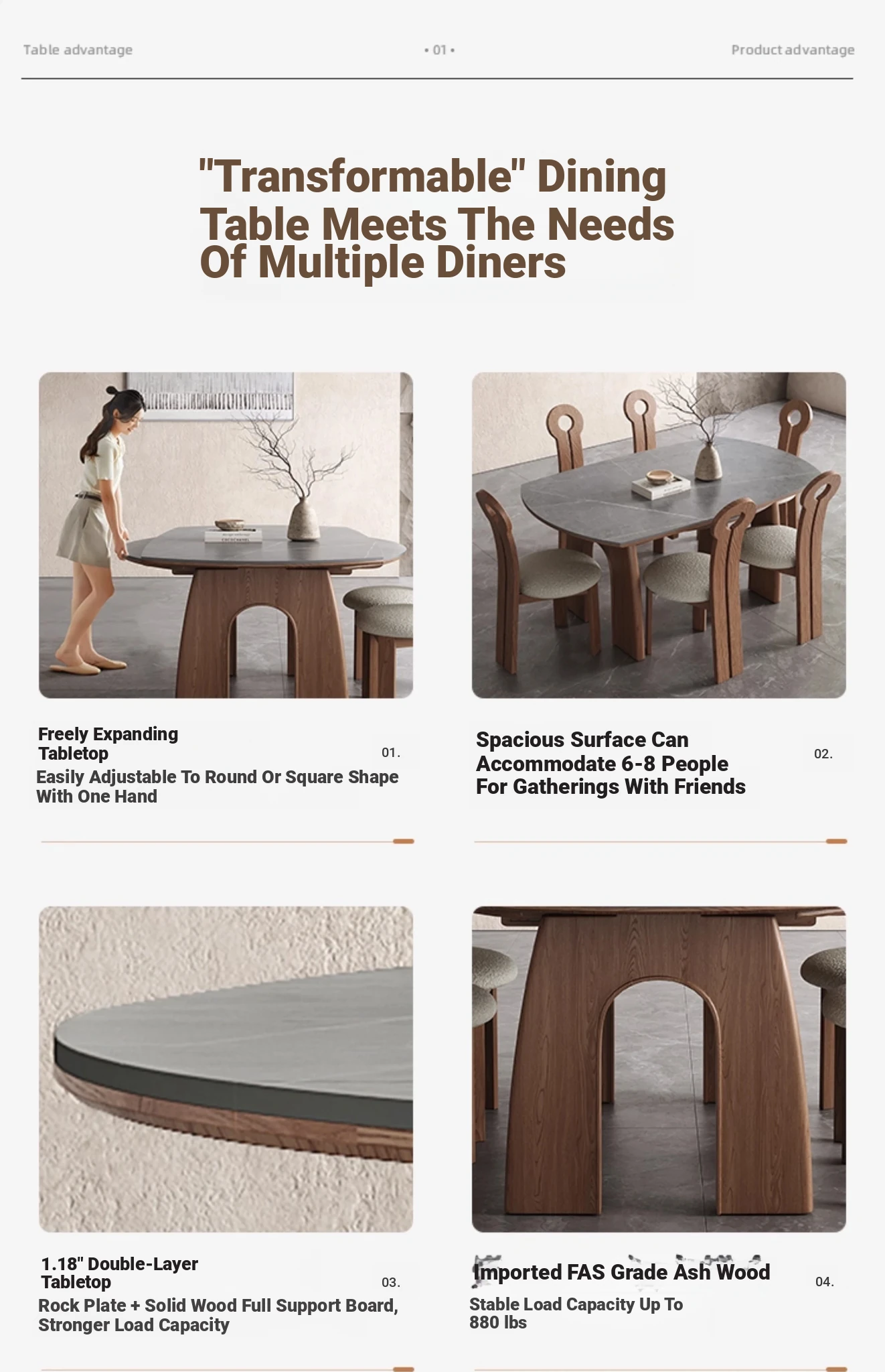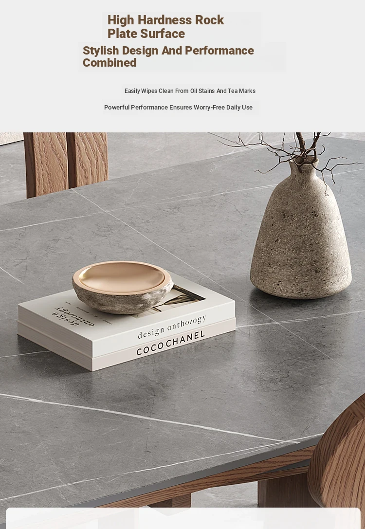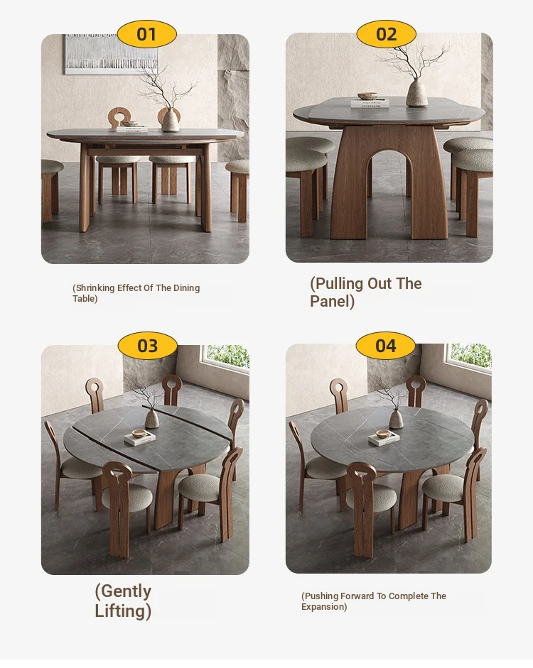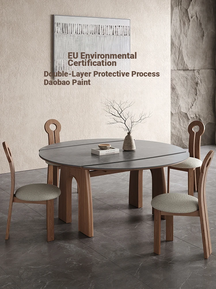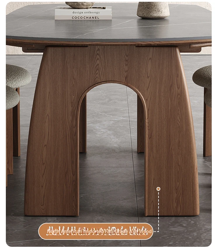 51.18in telescopic dining table +6 chairs [ash wood/Eno rock plate]]