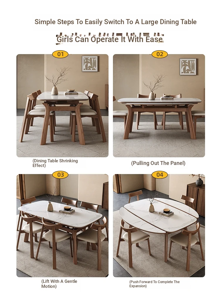 Expandable Solid Wood Dining Table - Versatile Round and Square Design for Small Spaces, Minimalist Style, Perfect for Modern Homes, Foldable for Easy Storage