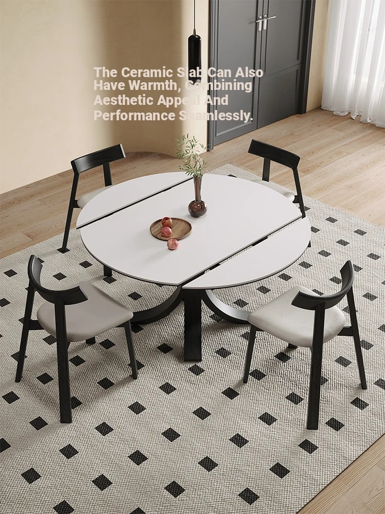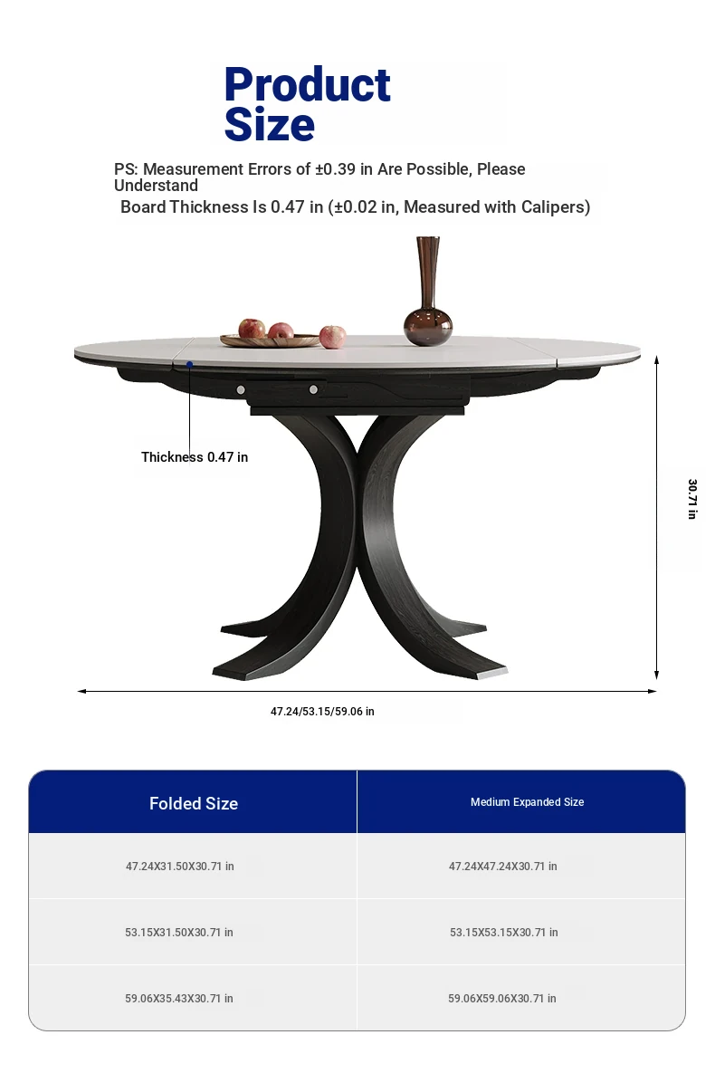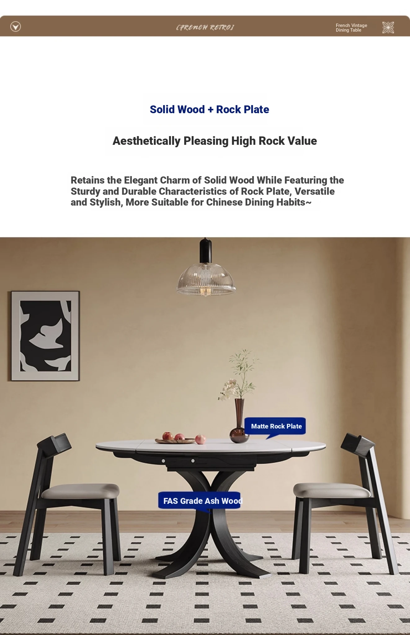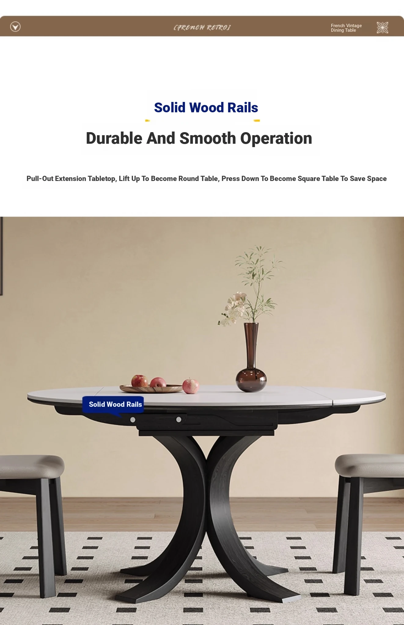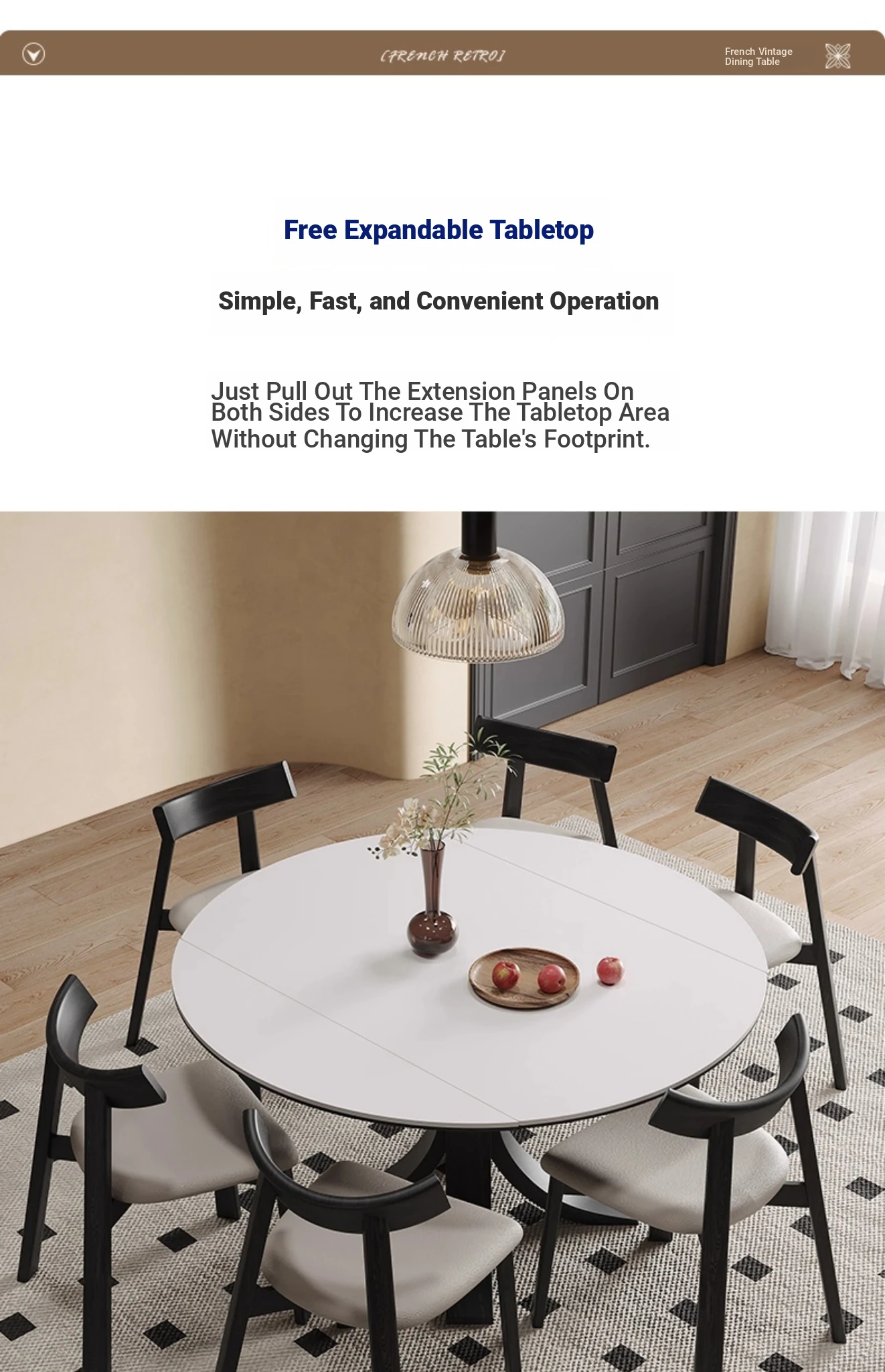 French Vintage Folding Solid Wood Extendable Dining Table - Luxurious and Elegant, Versatile Round Table for Living Room and Home Use