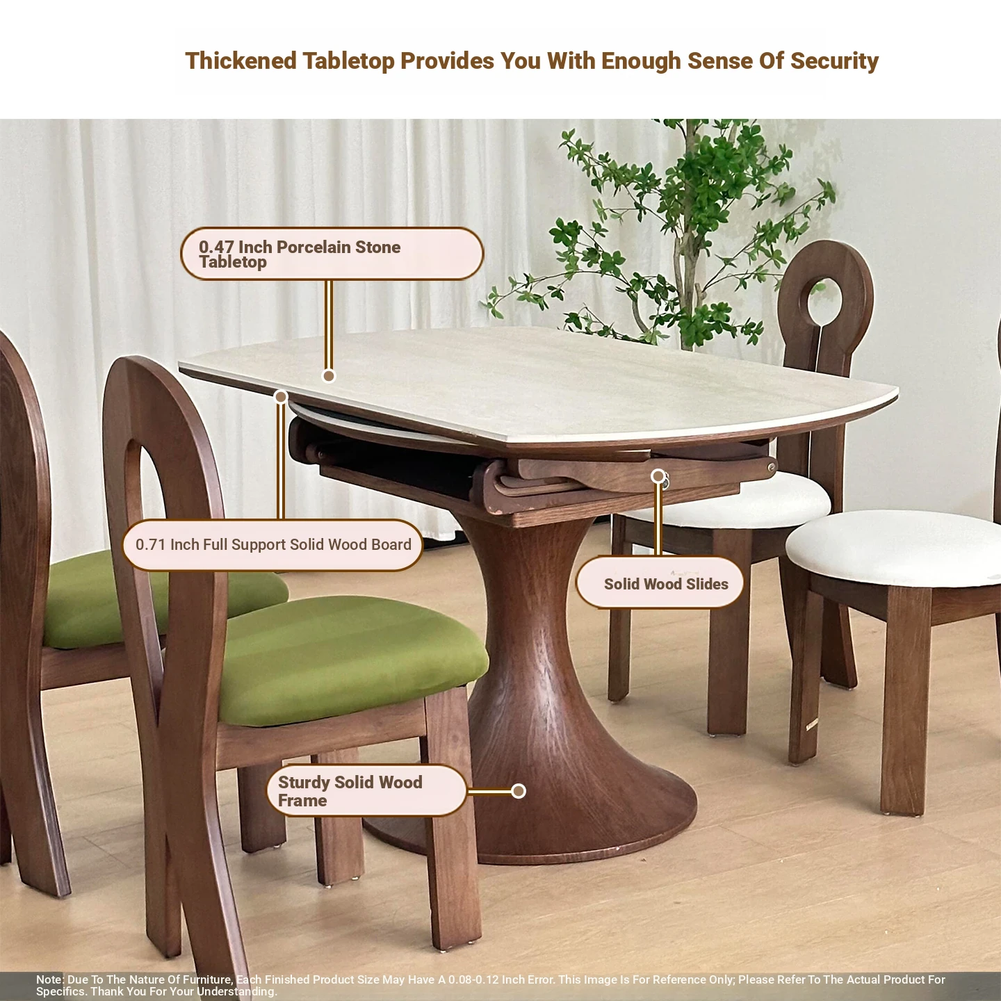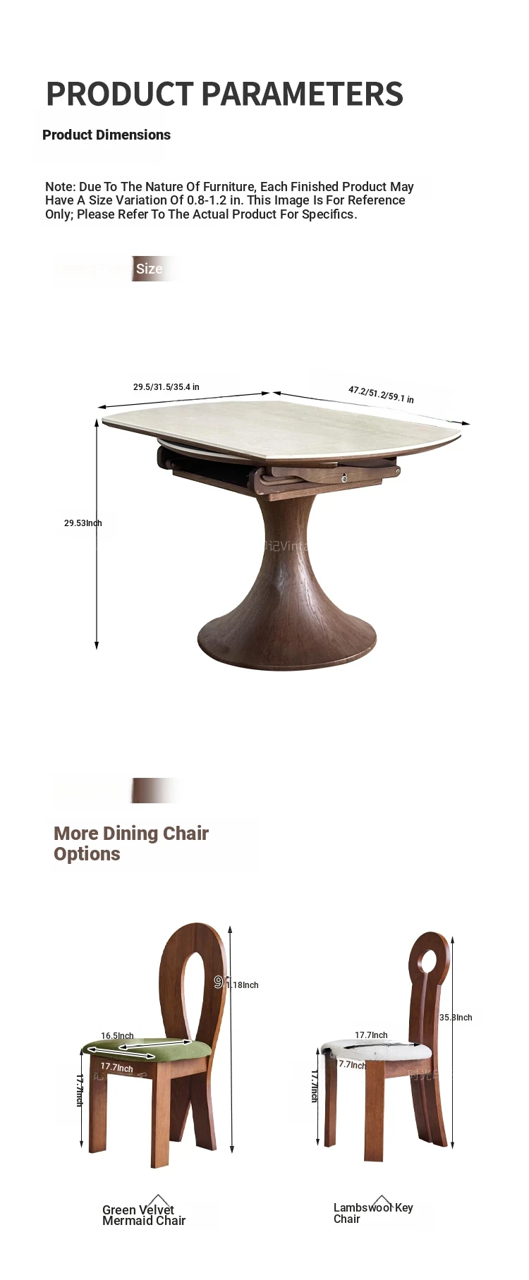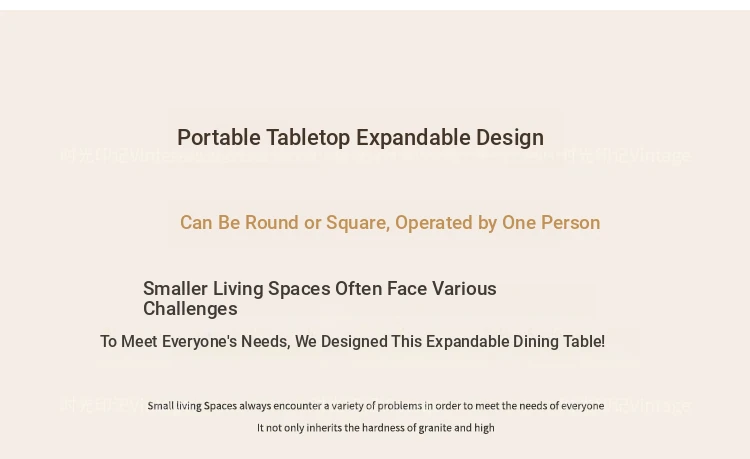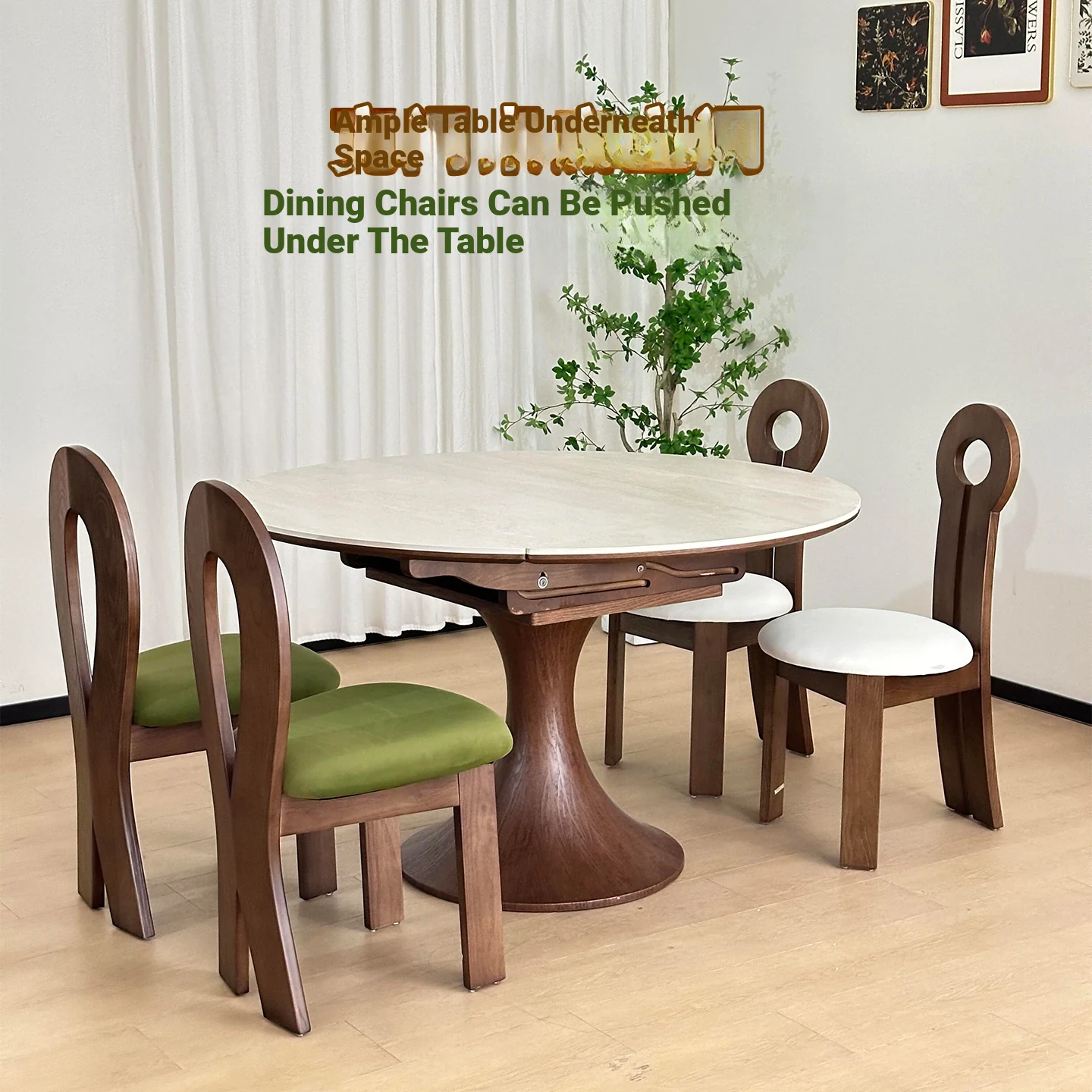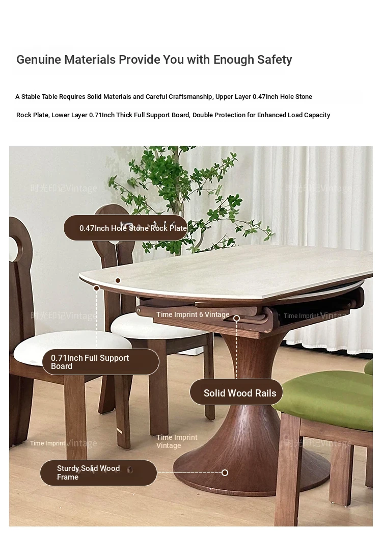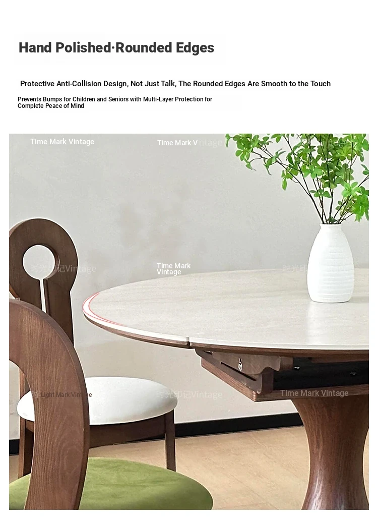 French Vintage Style Retractable Round Dining Table and Chair Set - Foldable Ash Wood Home Use with Unique Stone Design for Elegant Dining Experience