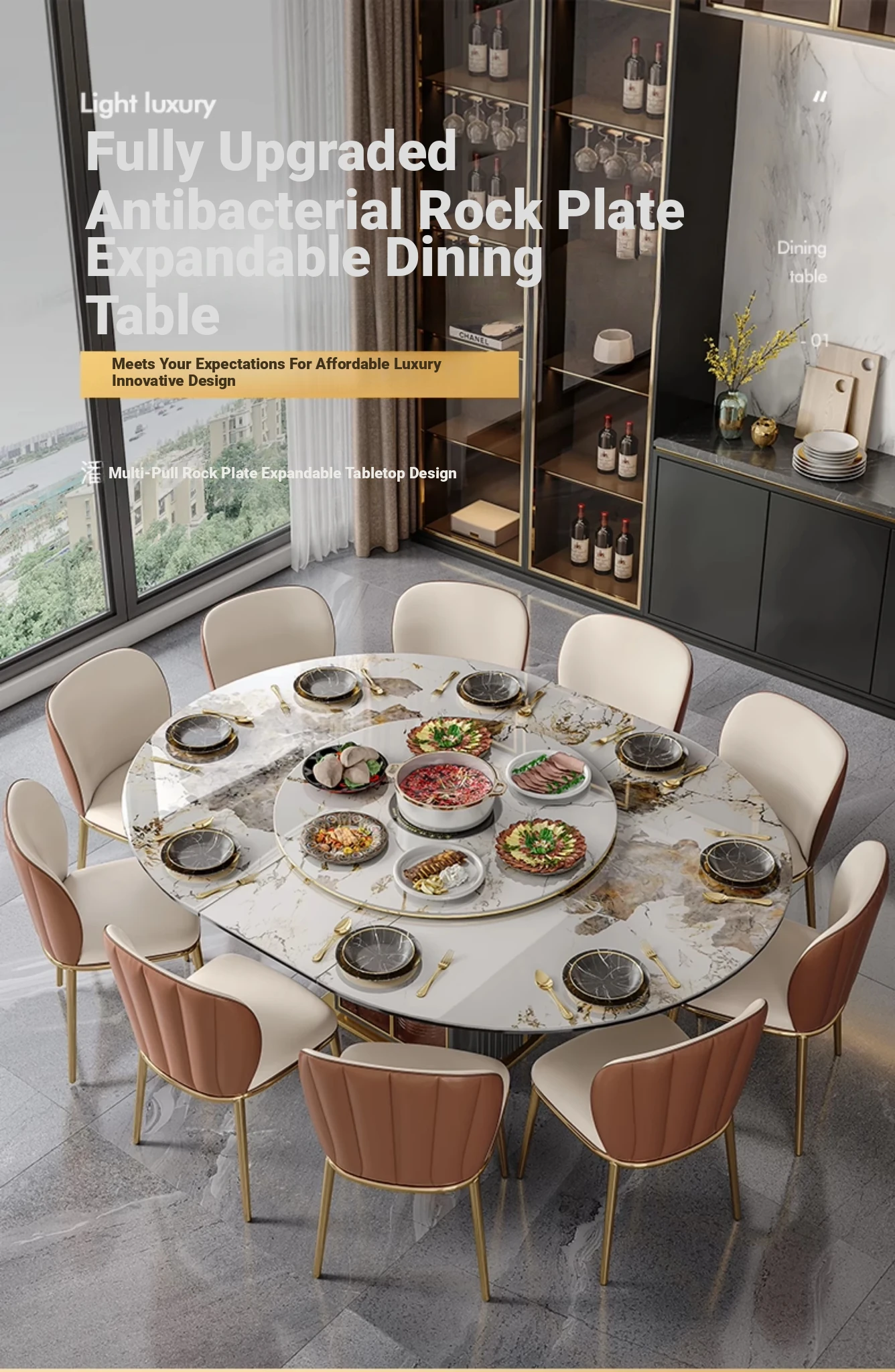 1.35/66.93 in Dining Table-[Upgrade Antibacterial Slab] +10 Chairs