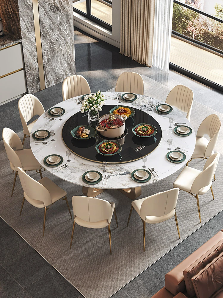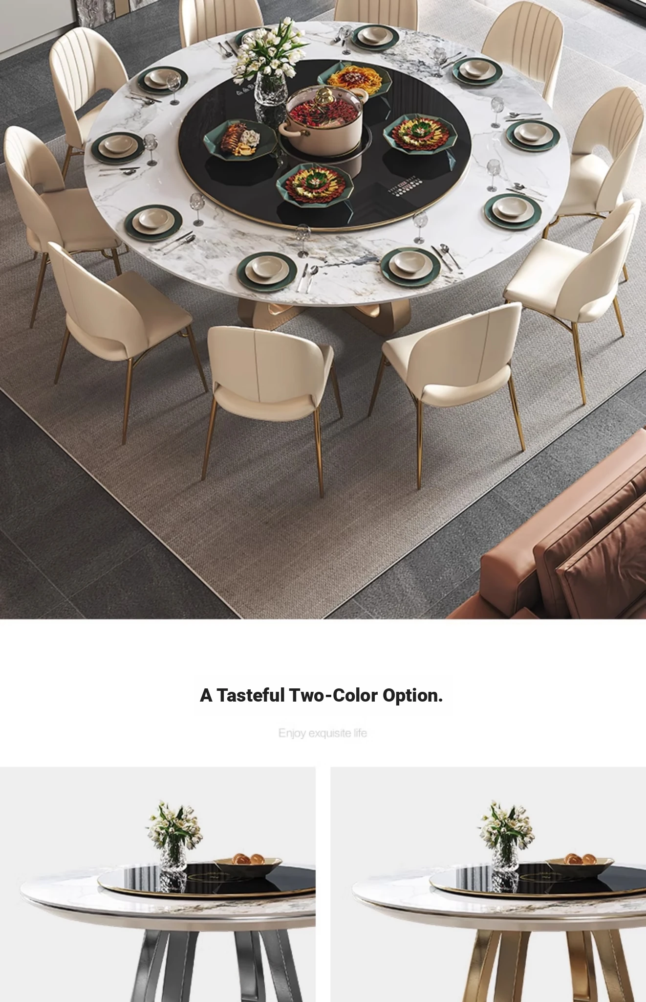 62.99in/flower dining table +12 chairs-[heat preservation warm dishes + Induction cooker + Rotate turntable]]
