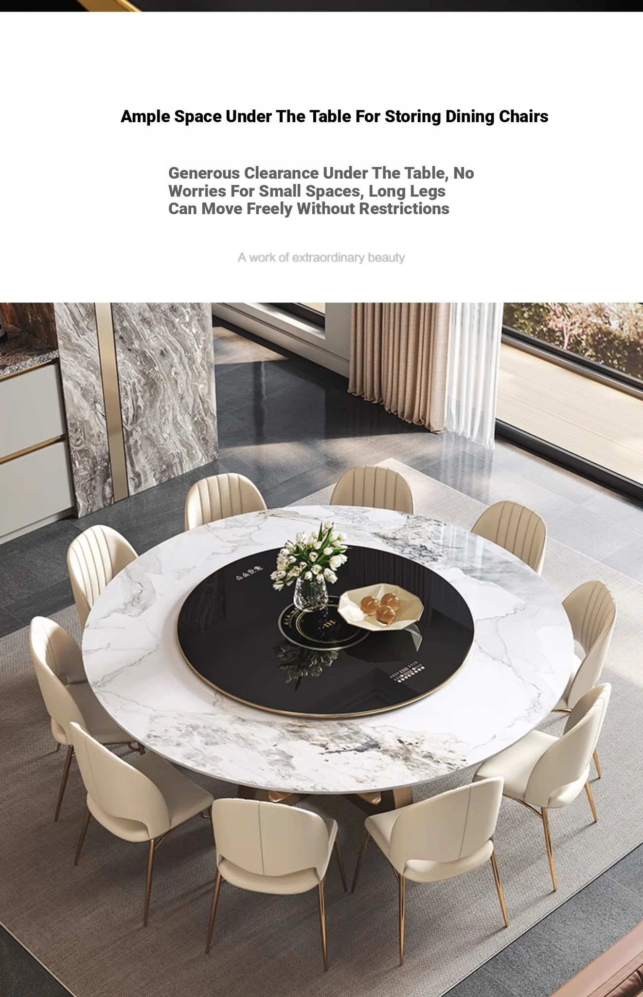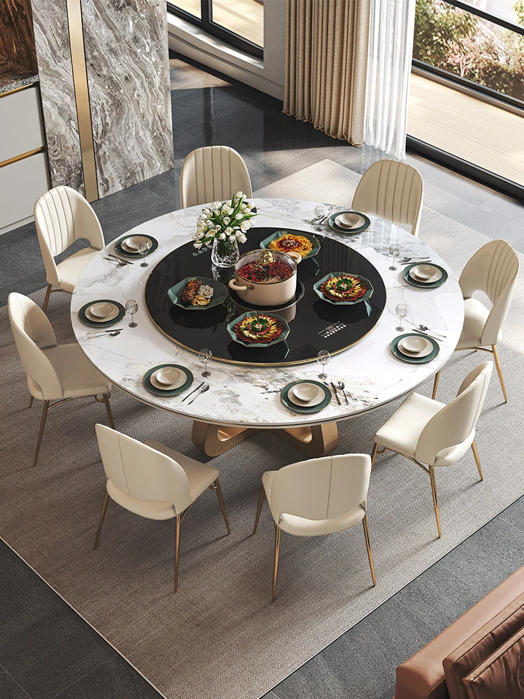 62.99in/flower dining table +10 chairs-[heat preservation warm dishes + Induction cooker + Rotate turntable]]