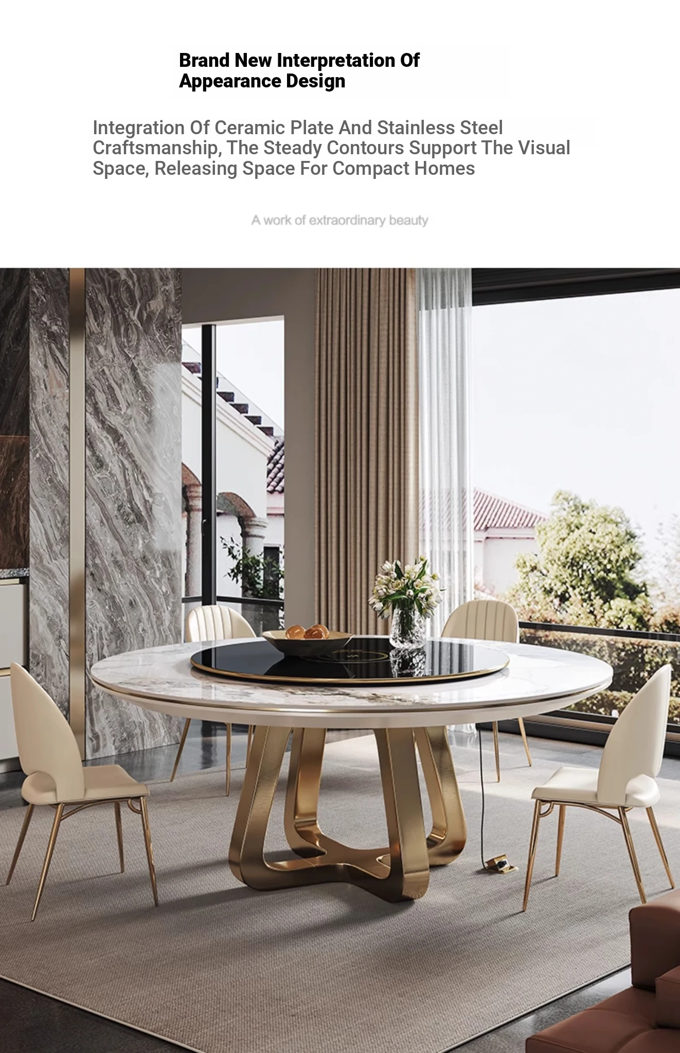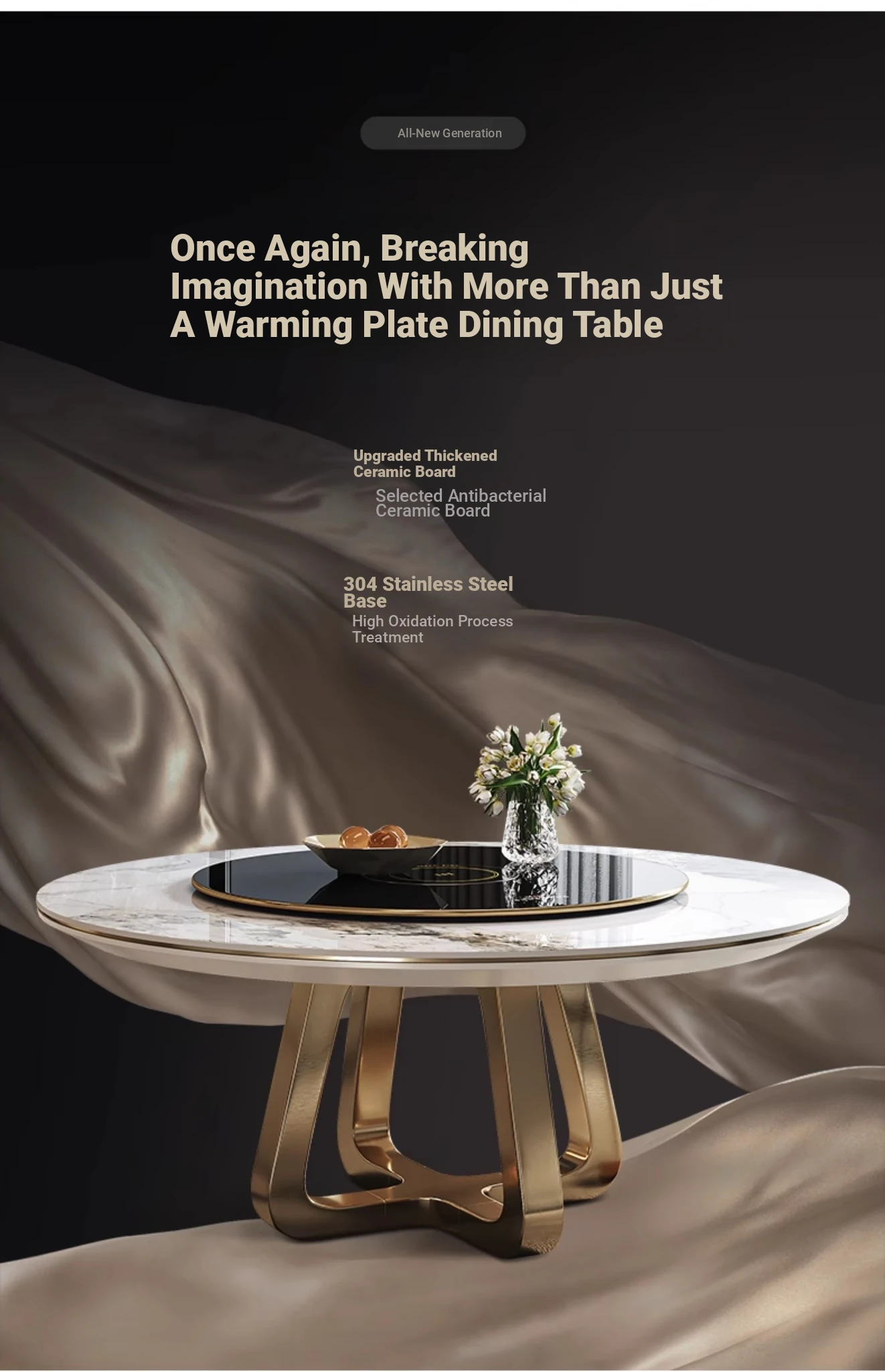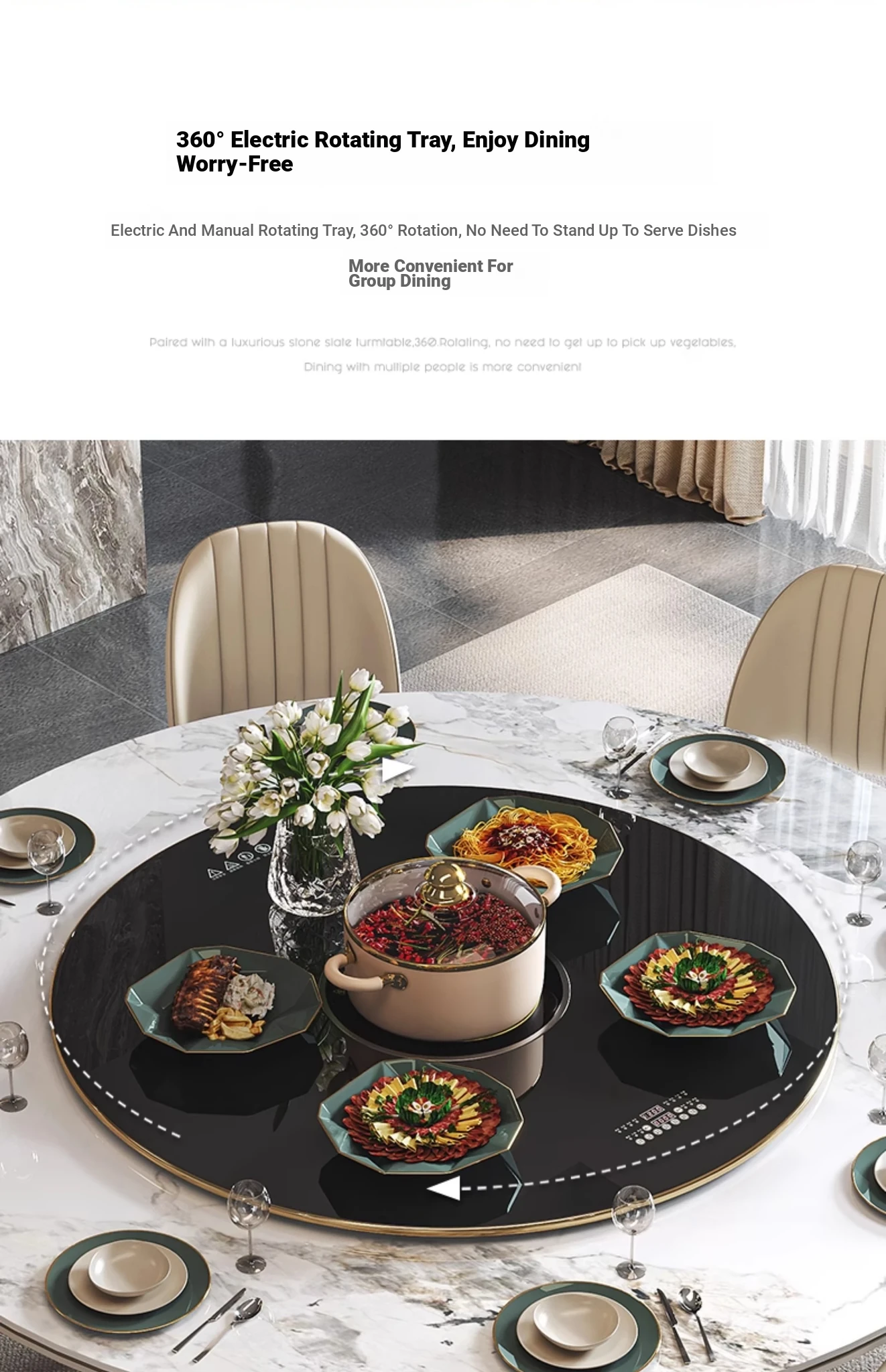 62.99in/flowered dining table-[heat preservation warm dishes + Induction cooker + Rotate turntable]]