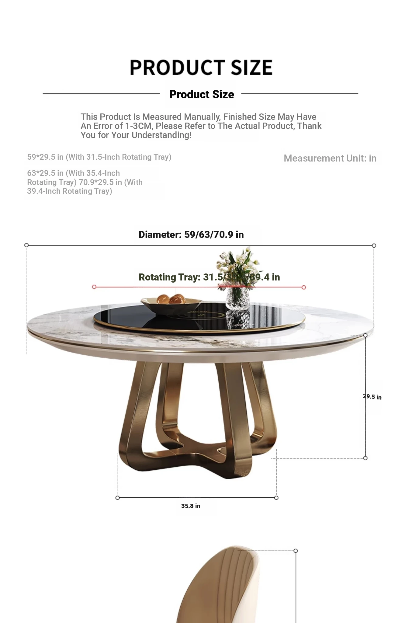 59.06in/flower dining table +10 chairs-[heat preservation warm dishes + Induction cooker + Rotate turntable]]
