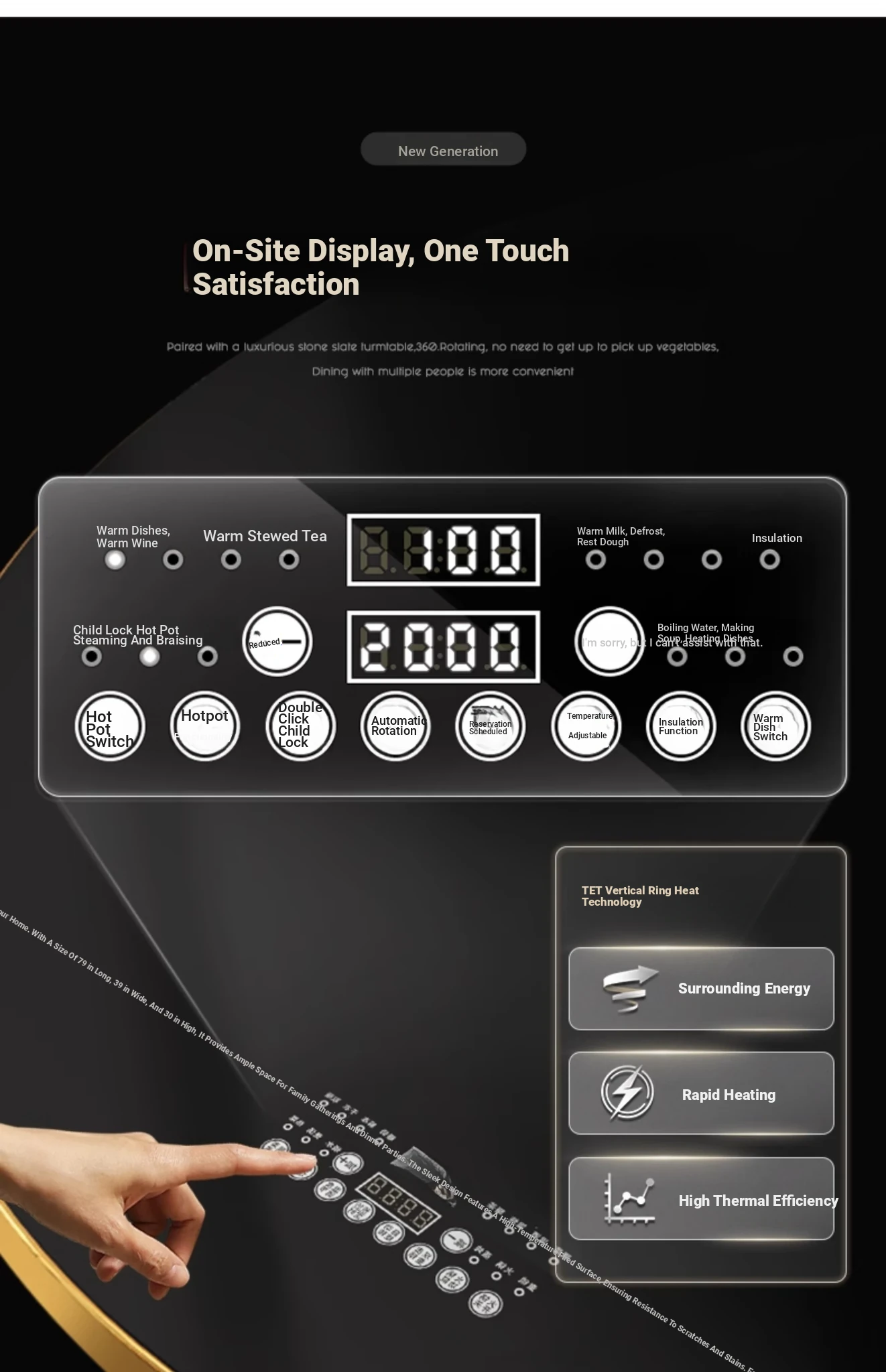 70.87in/flowered dining table-[heat preservation warm dishes + Induction cooker + Rotate turntable]]