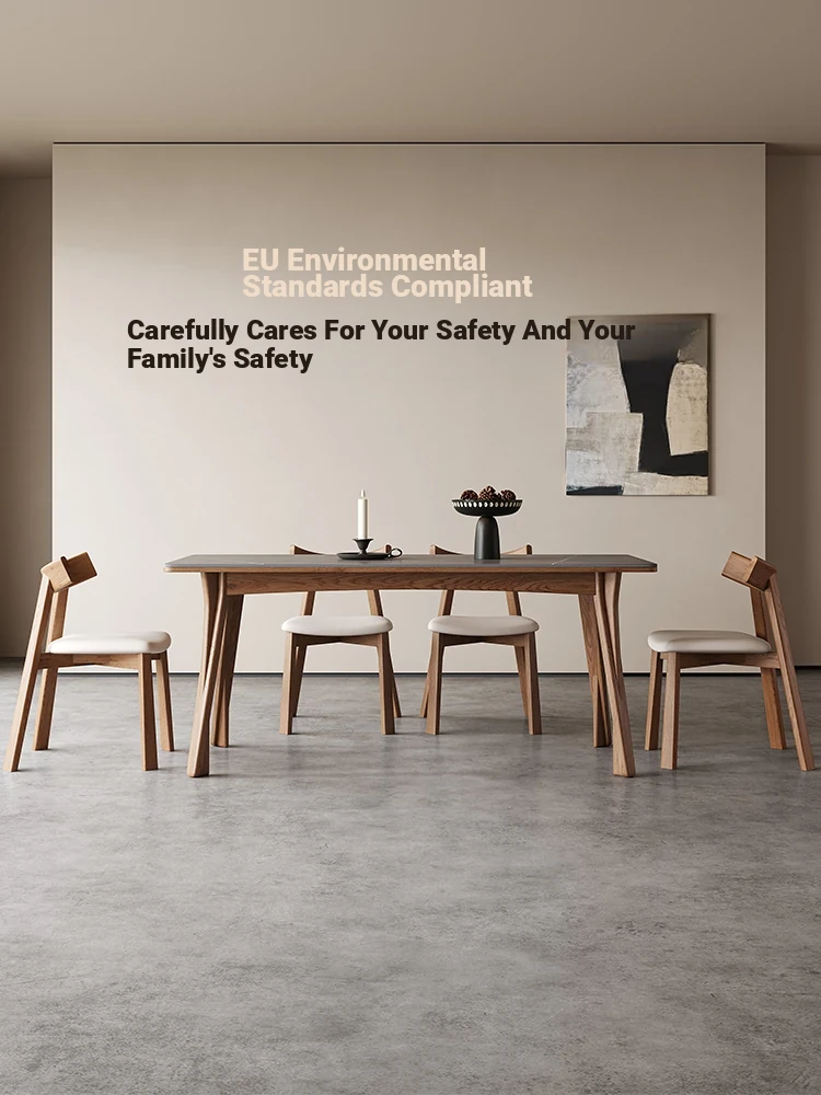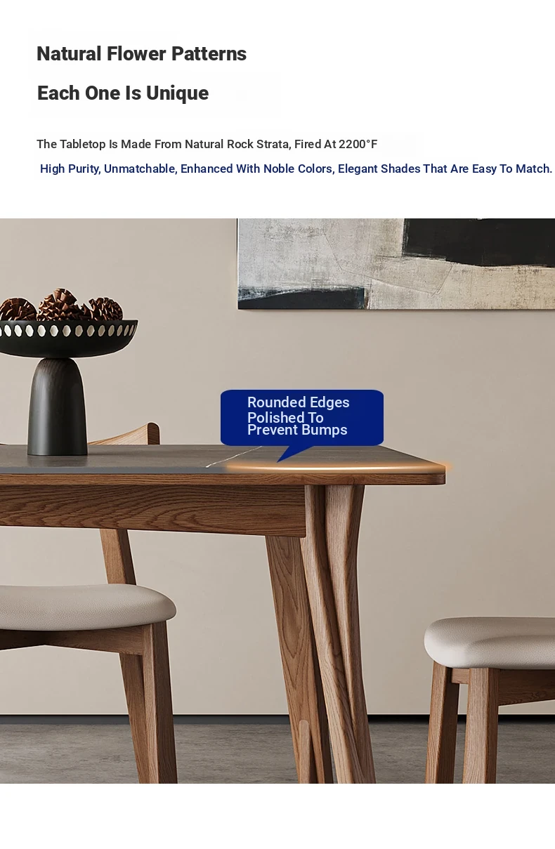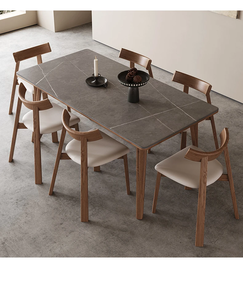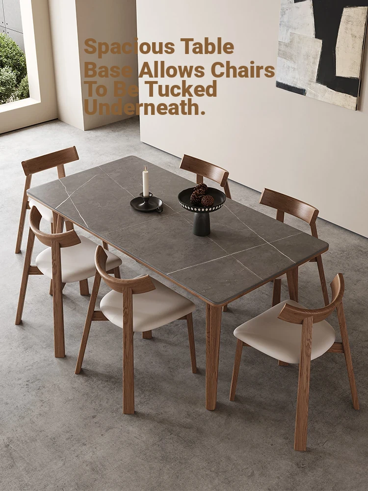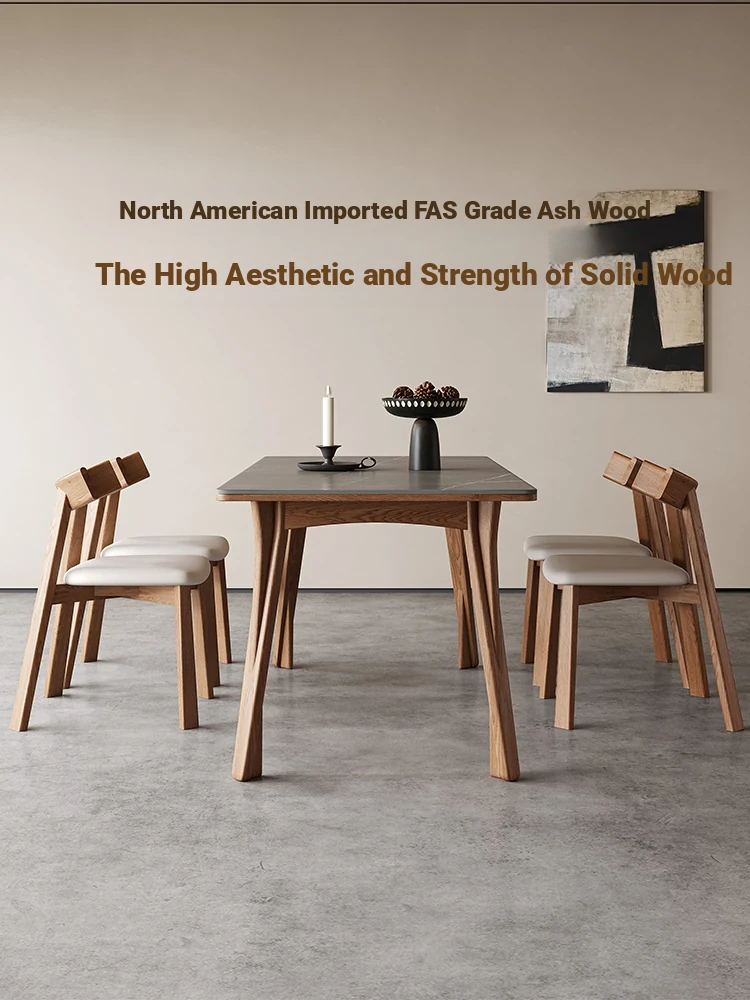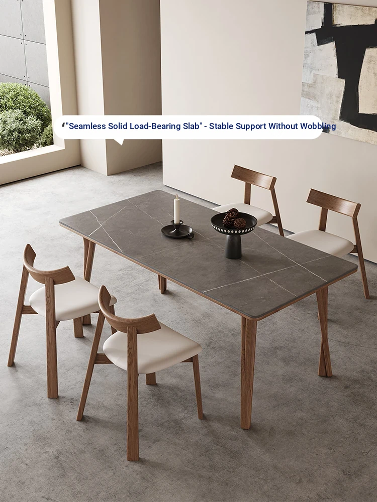 Minimalist Solid Wood Dining Table with Stone Surface - Luxurious Rectangular Design for Small Spaces, Perfect for Modern Homes - New 2025 Collection