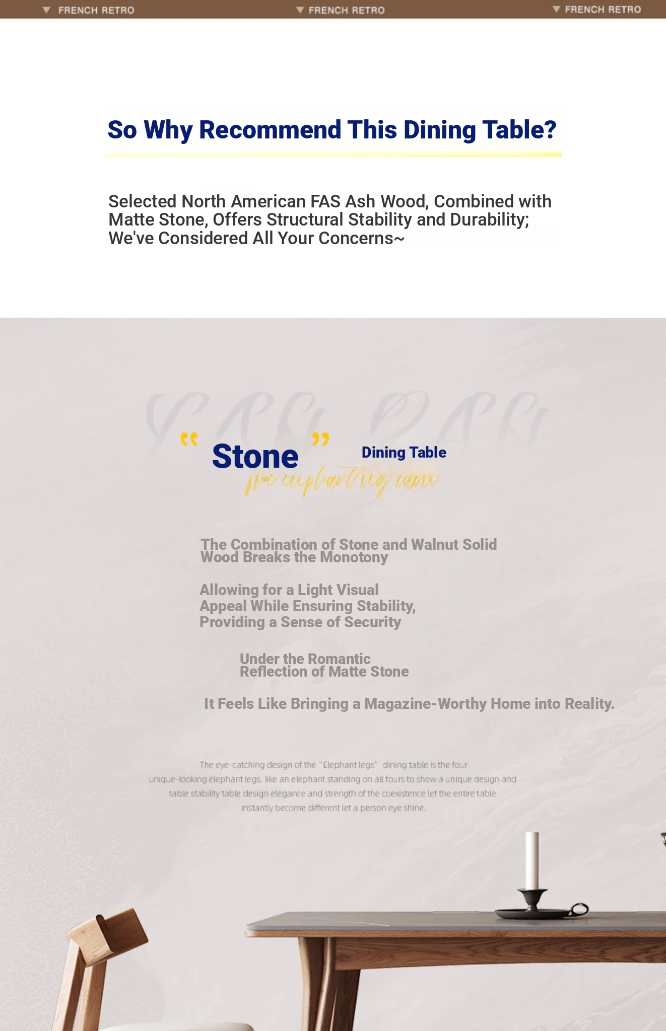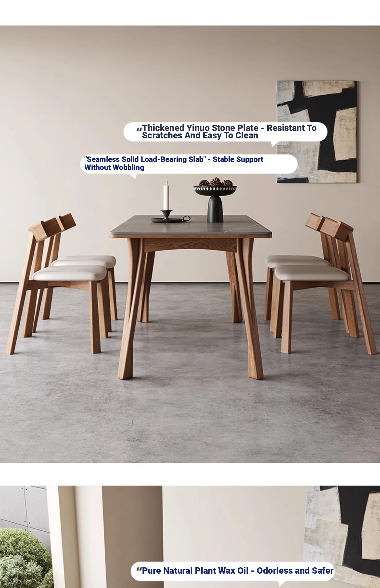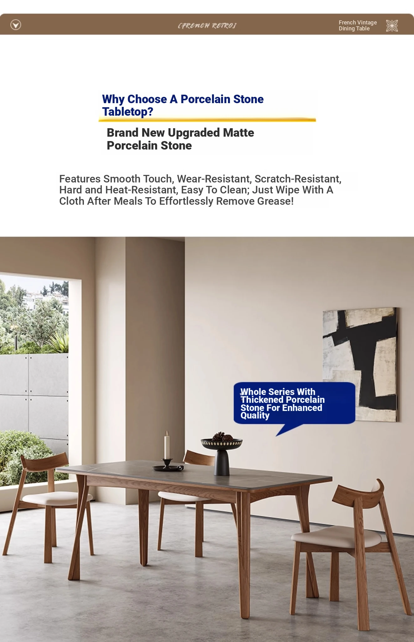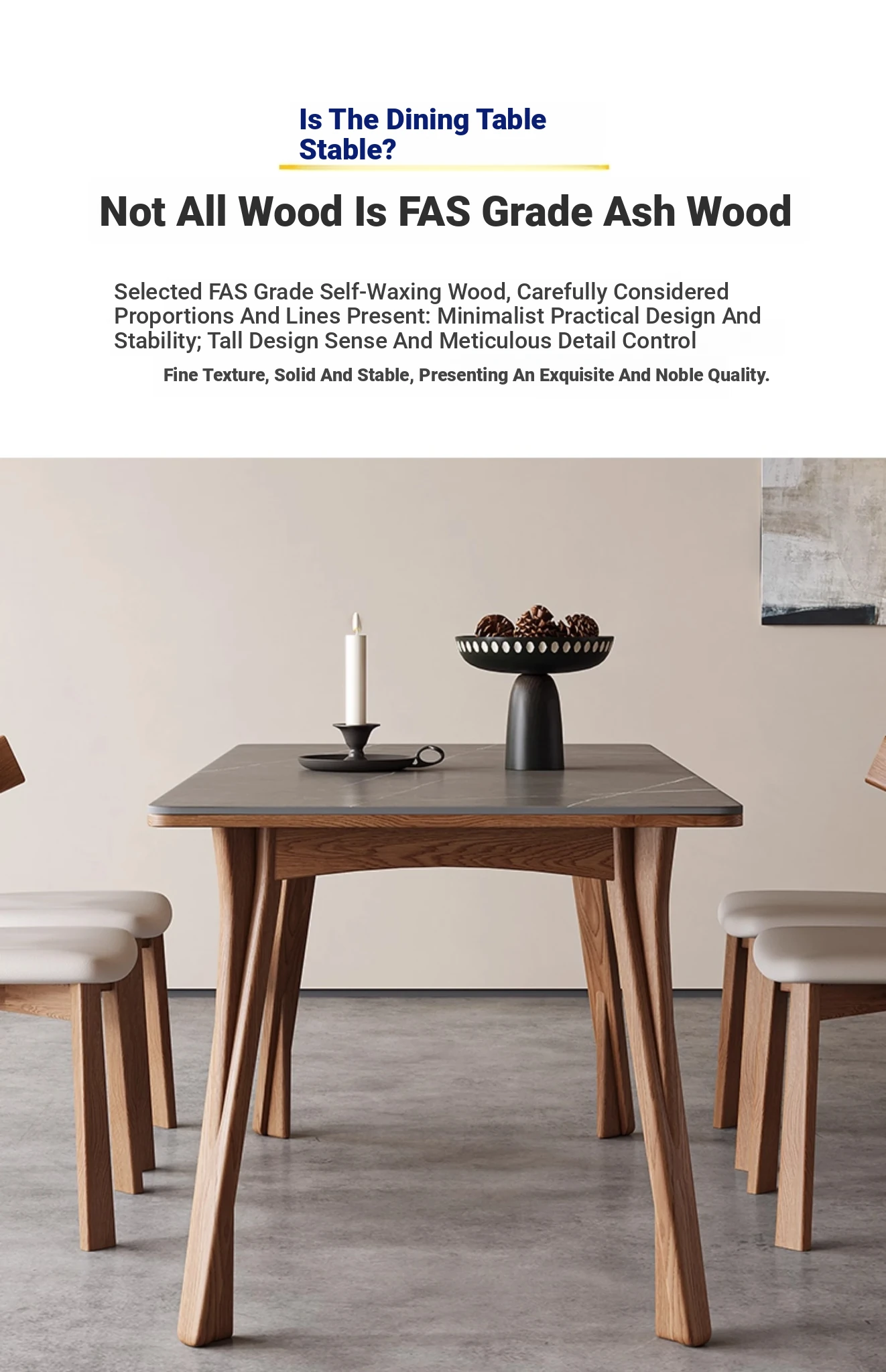 Minimalist Solid Wood Dining Table with Stone Surface - Luxurious Rectangular Design for Small Spaces, Perfect for Modern Homes - New 2025 Collection