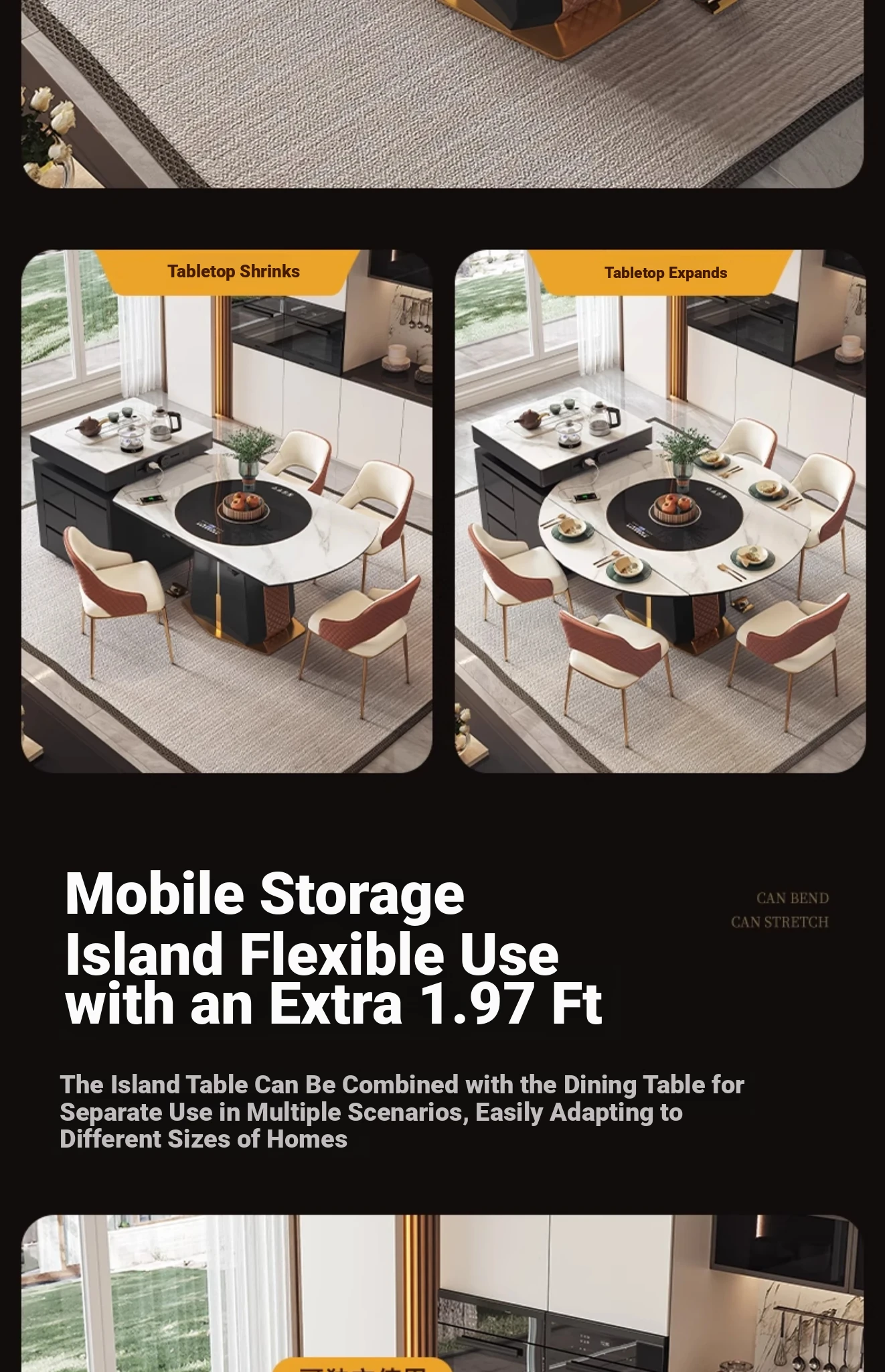 59.06 ins square dual-purpose dining table + tea-making Island +8 chairs
