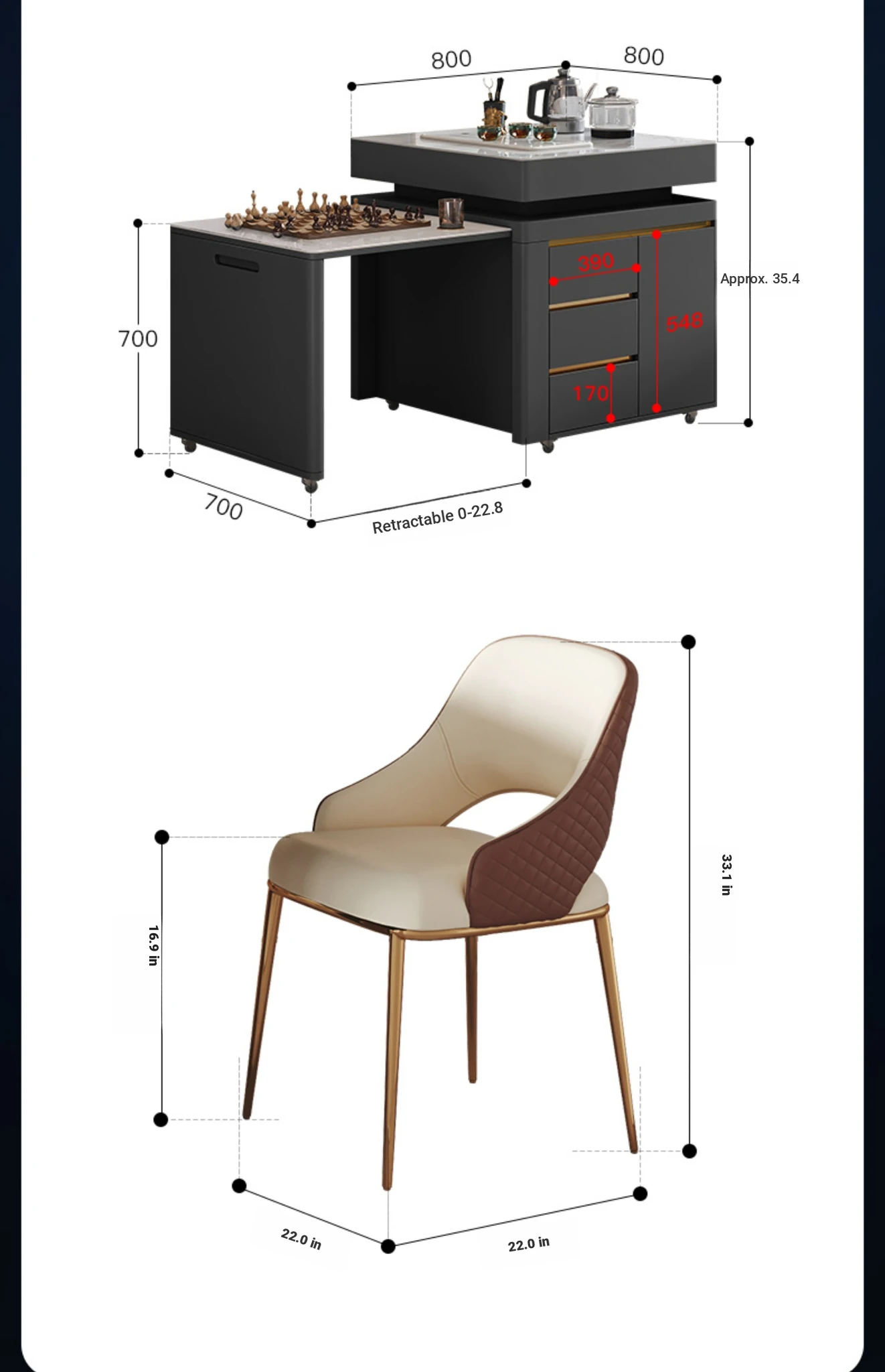 59.06 ins square dual-purpose dining table + tea-making Island +10 chairs