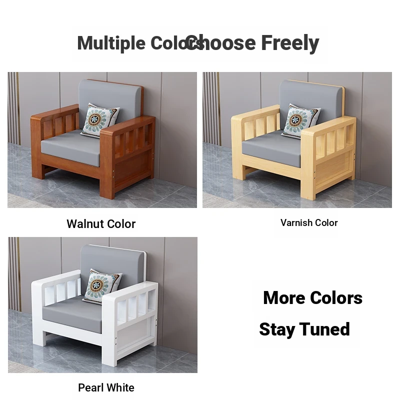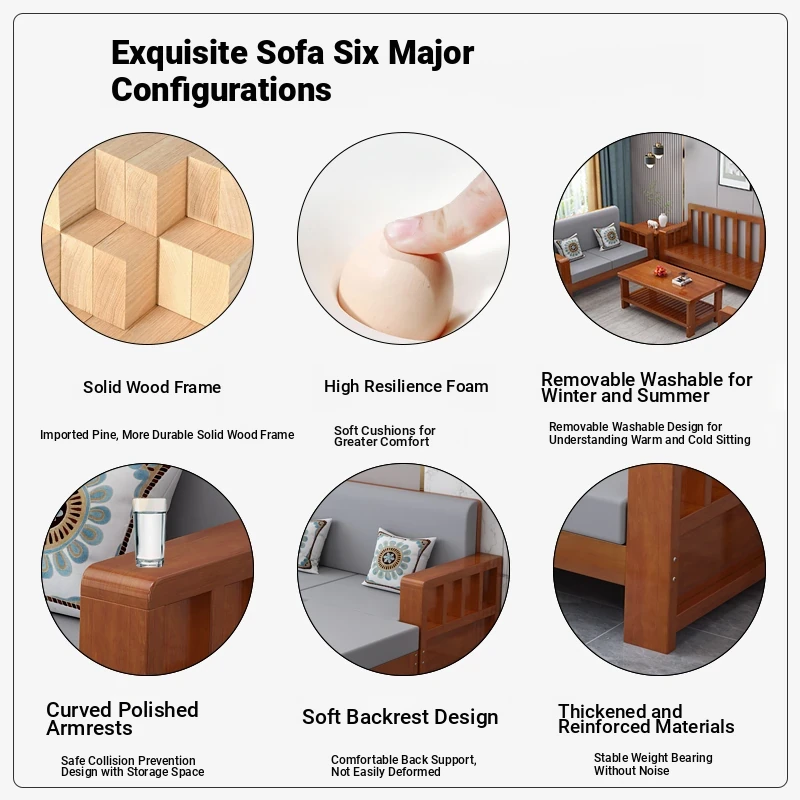 Modern Chinese Solid Wood Sofa Set - All Solid Wood, Simple and Stylish for Small Rural Living Rooms, Versatile Furniture for Year-Round Comfort.