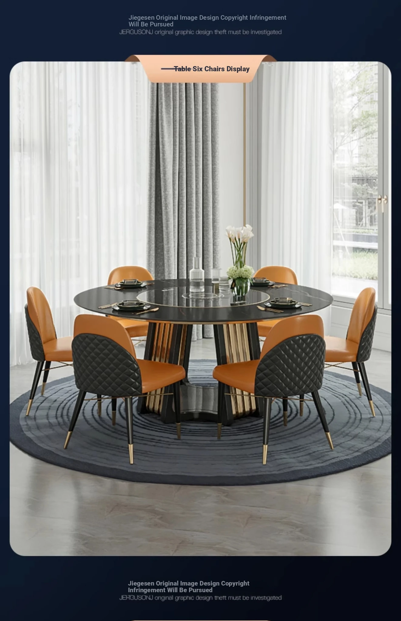 62.99 in dining table +6 chairs [warm dishes + Induction cooker + electric turntable]]