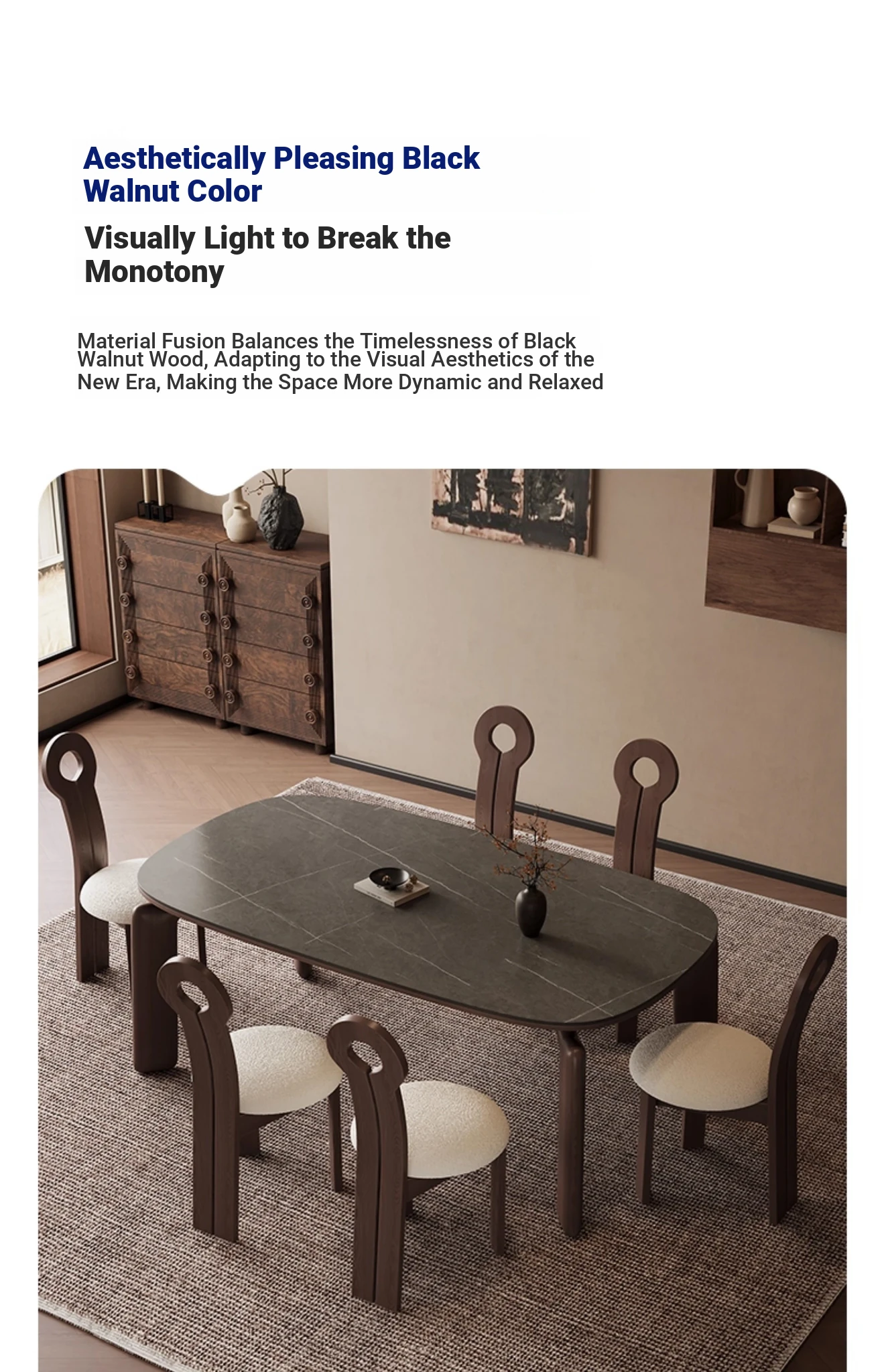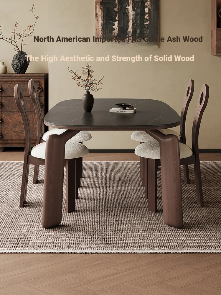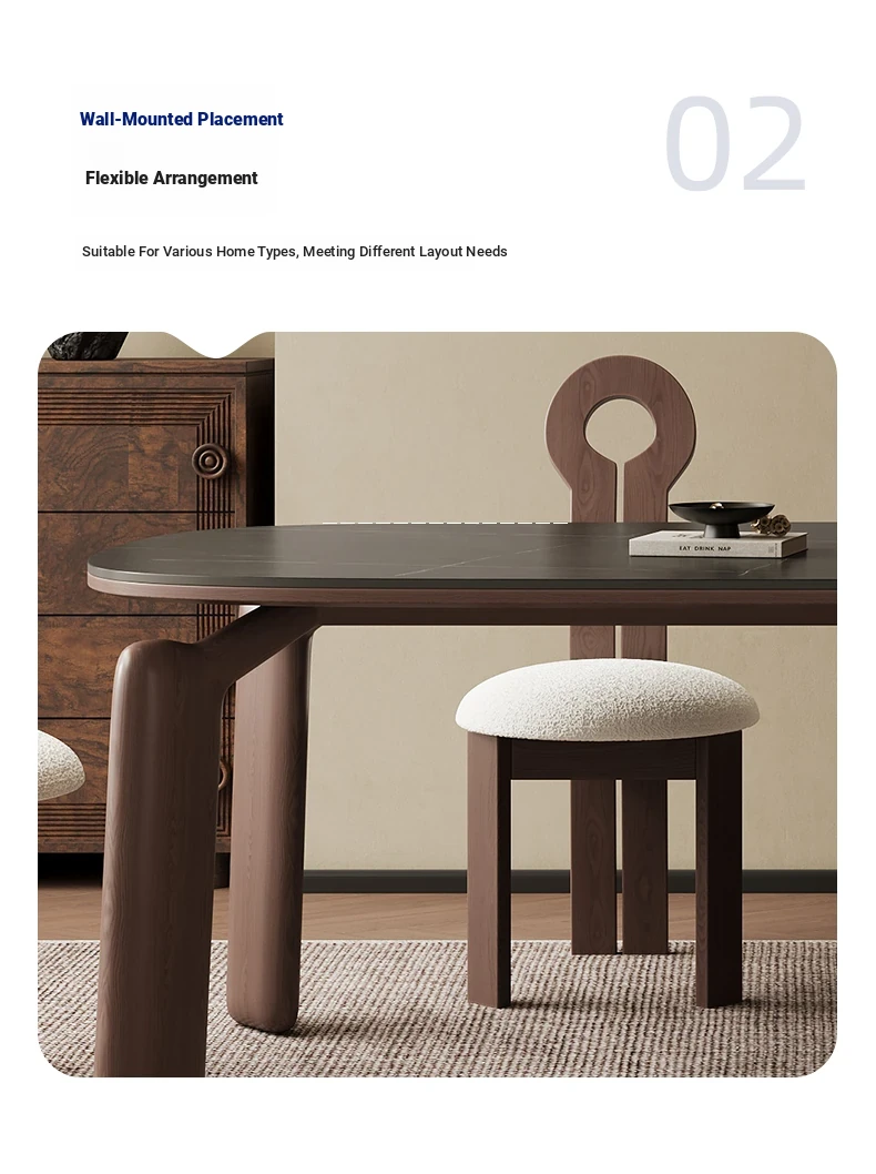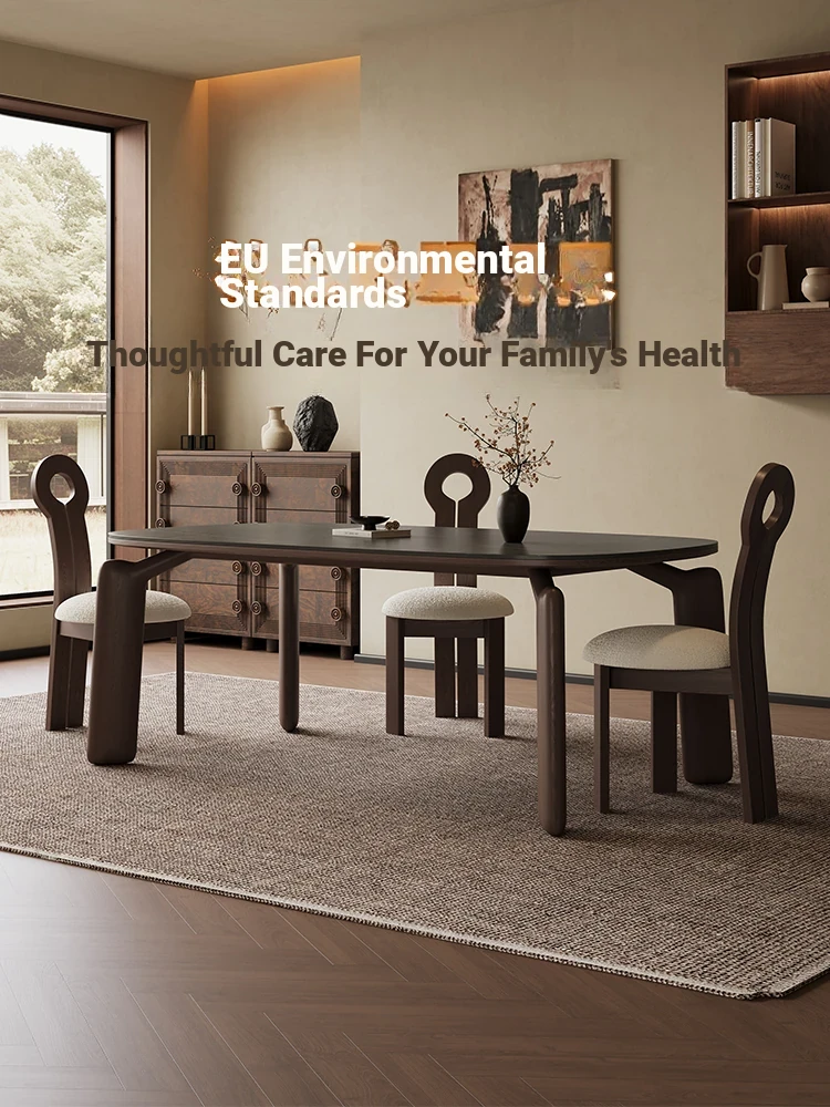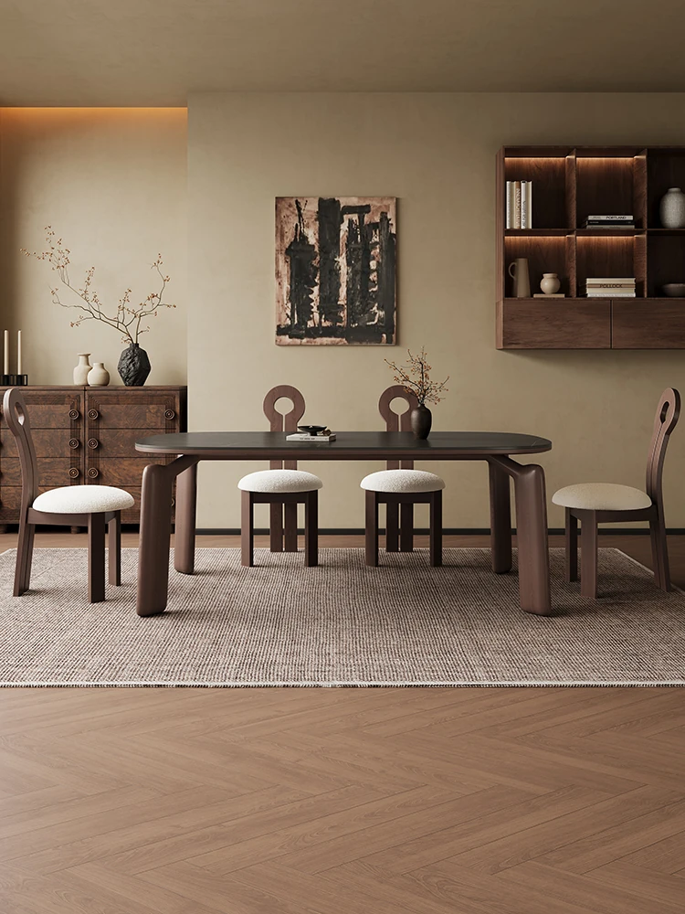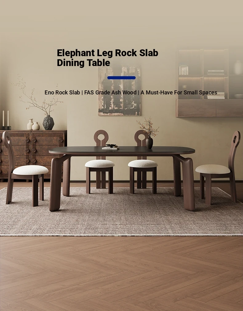 Modern Minimalist Black Walnut Solid Wood Dining Table with Elephant Legs - Perfect for Small Living Spaces, Embracing Wabi-Sabi Aesthetics for Your Home Dining Experience