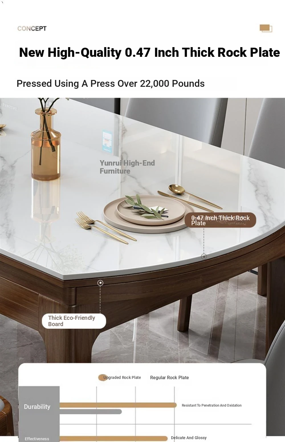 53.15 in one table and eight chairs [with Induction cooker] -0.47in thick Classy rock plate