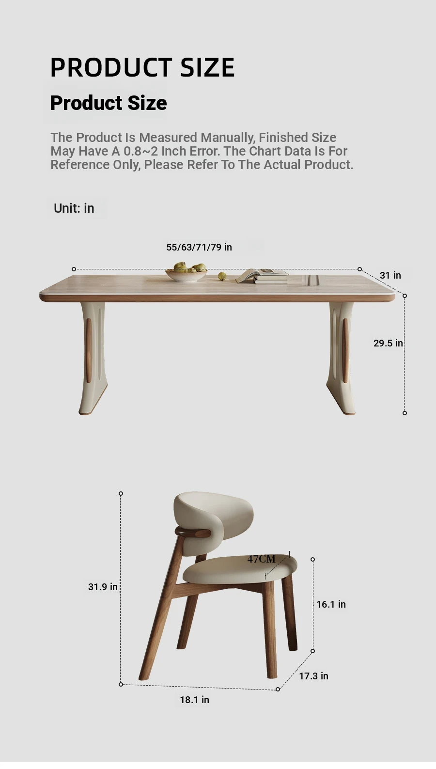 78.74 in dining table +8 chairs