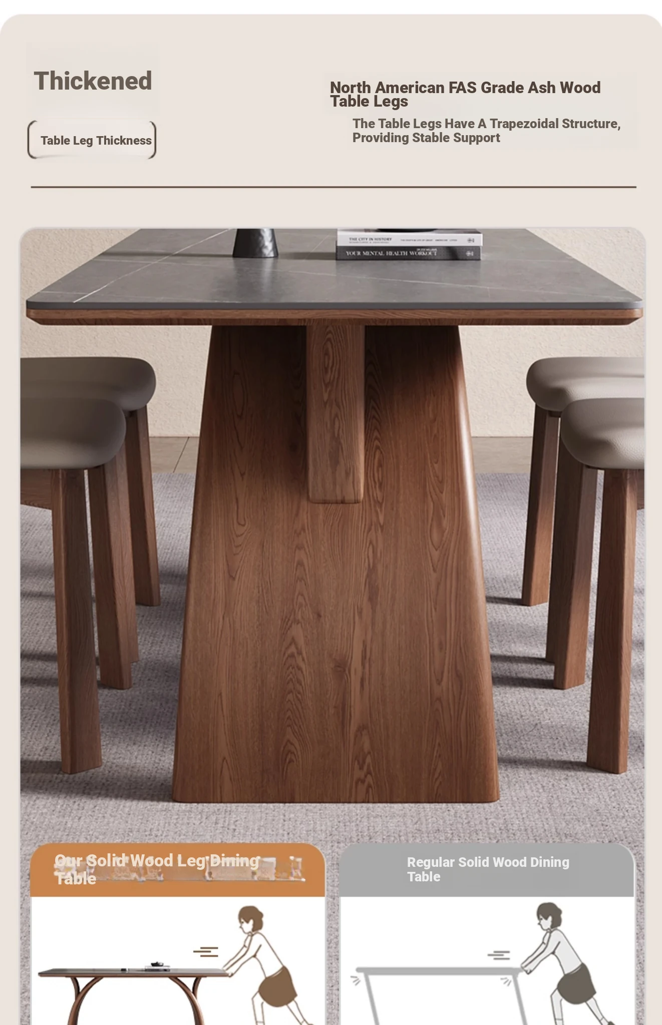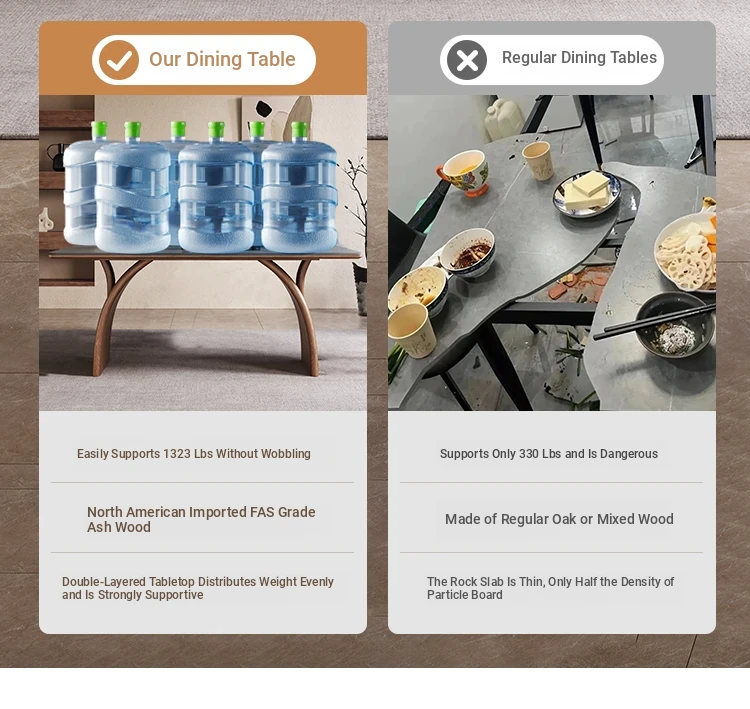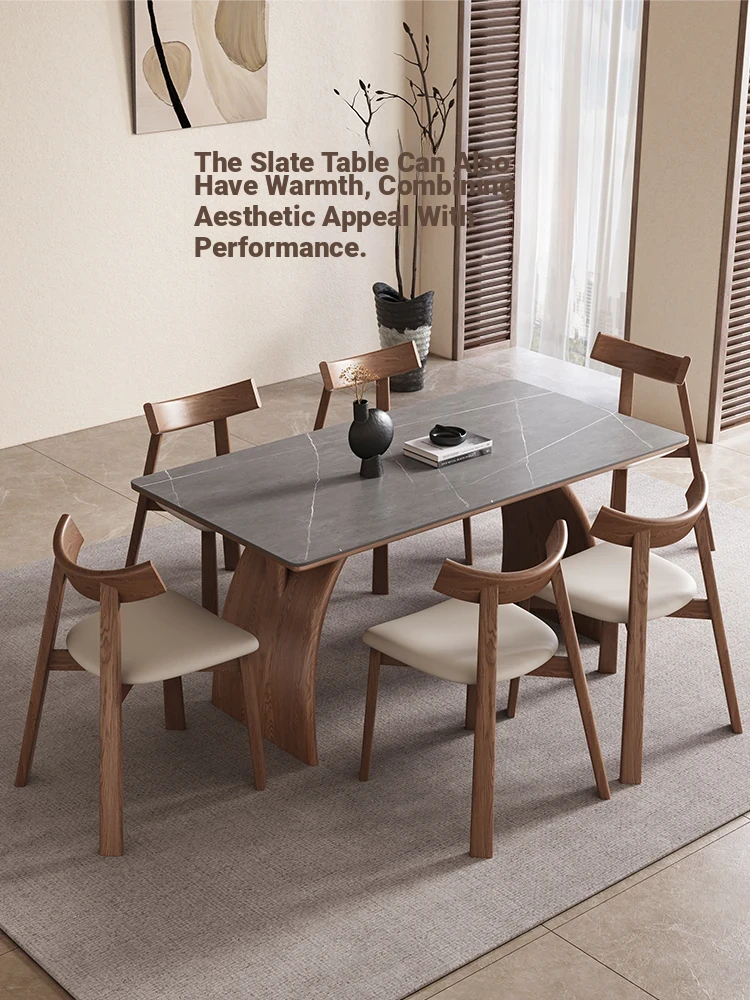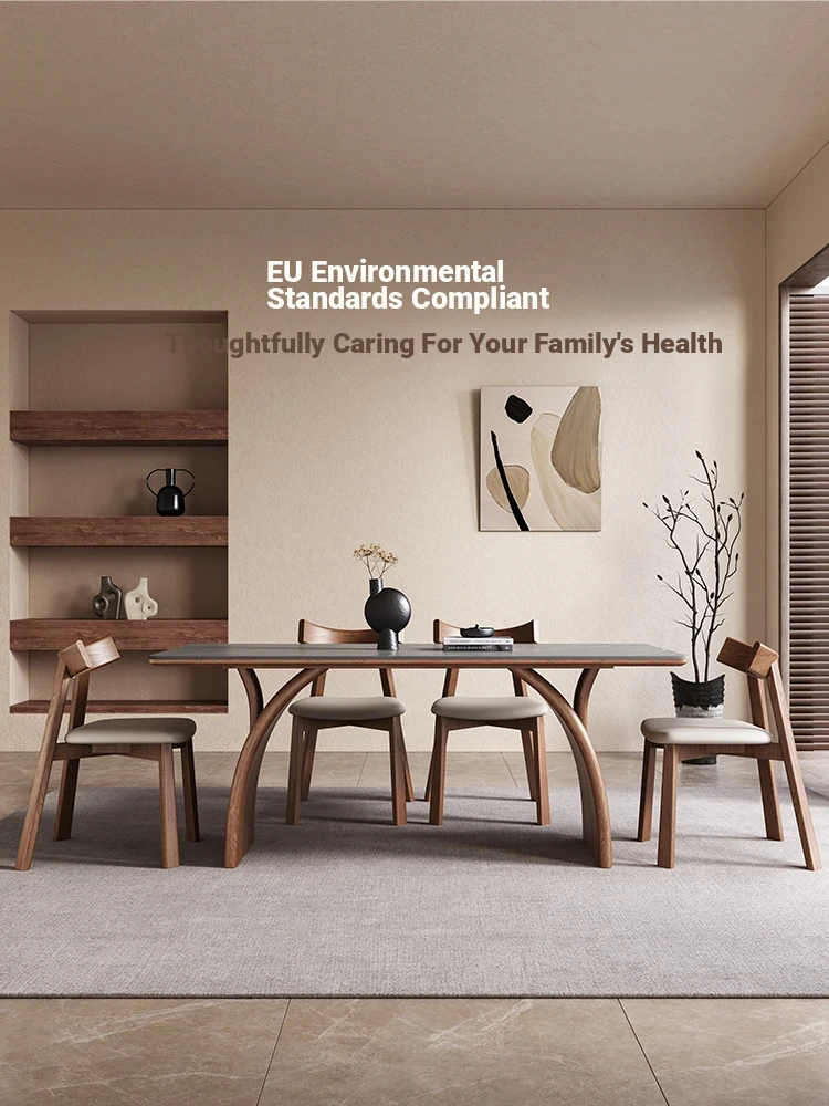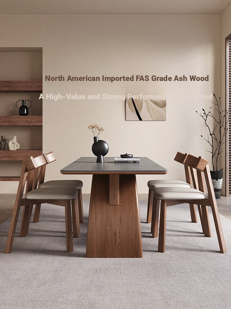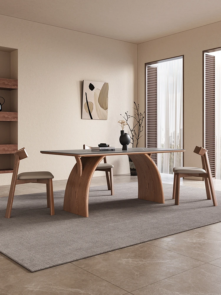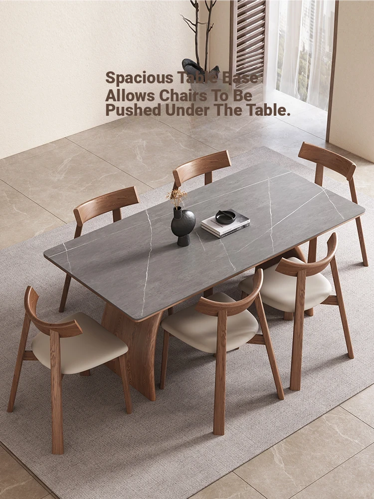 Modern Minimalist Solid Wood Dining Table with Rock Plate for Small Spaces - Elegant and Stylish Design for Home Use - 2025 New Arrival