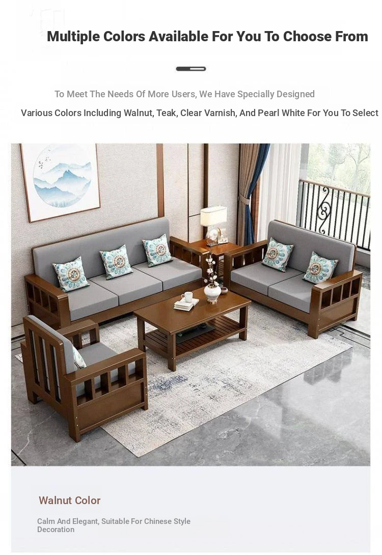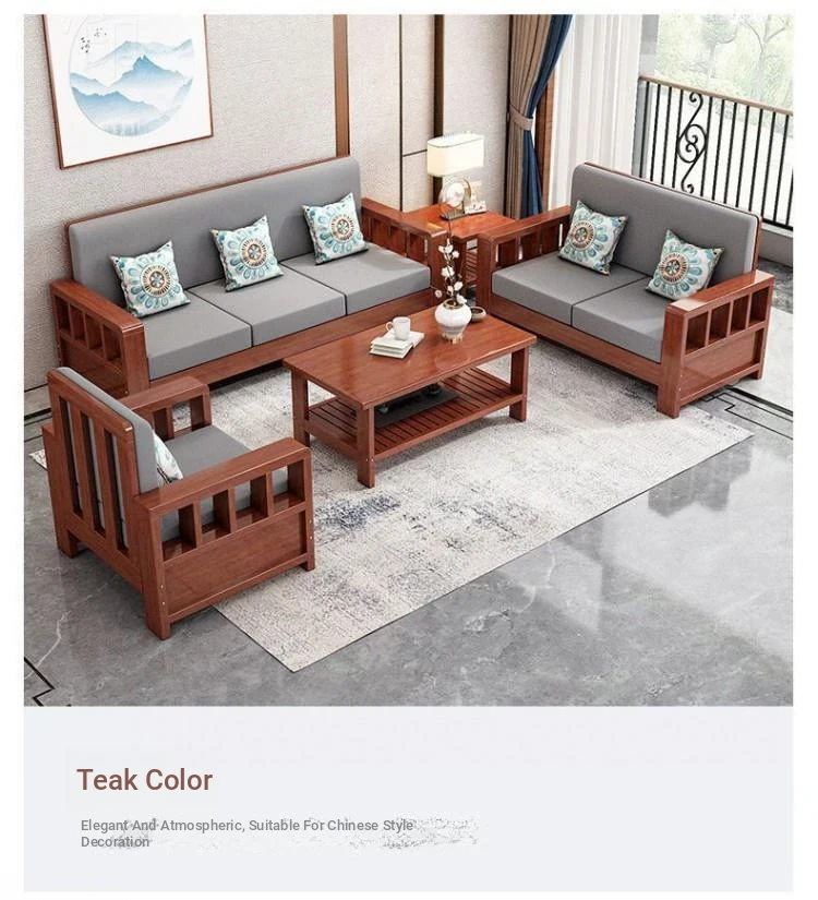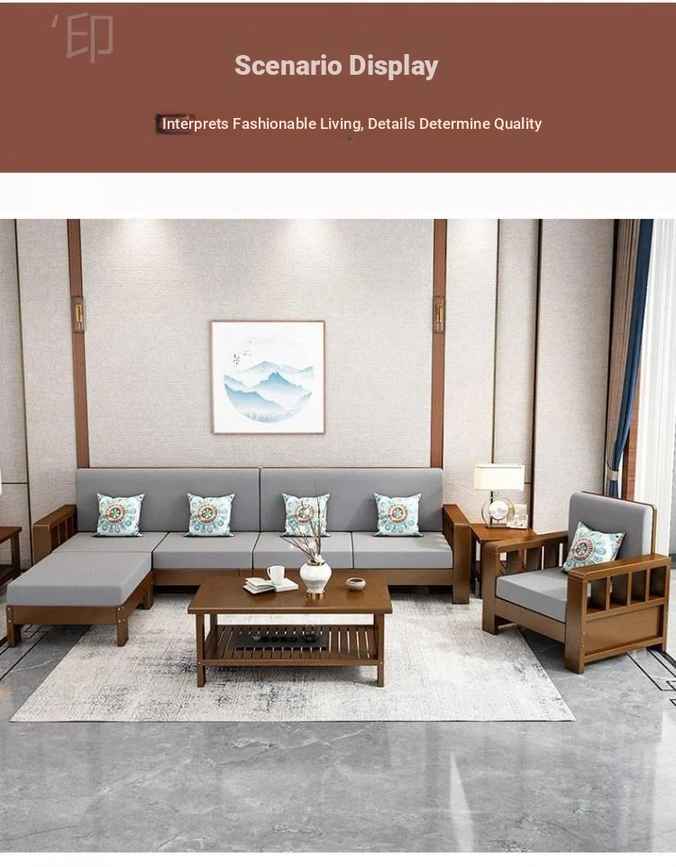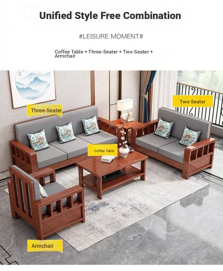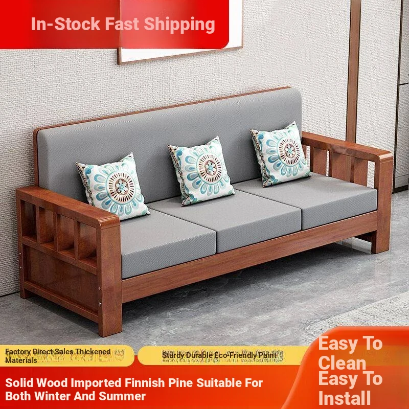Modern Minimalist Solid Wood Sofa Set for Small Living Rooms - Stylish 3-Seater Couch in New Chinese Style, Perfect for Cozy Spaces, Economical and Elegant Design