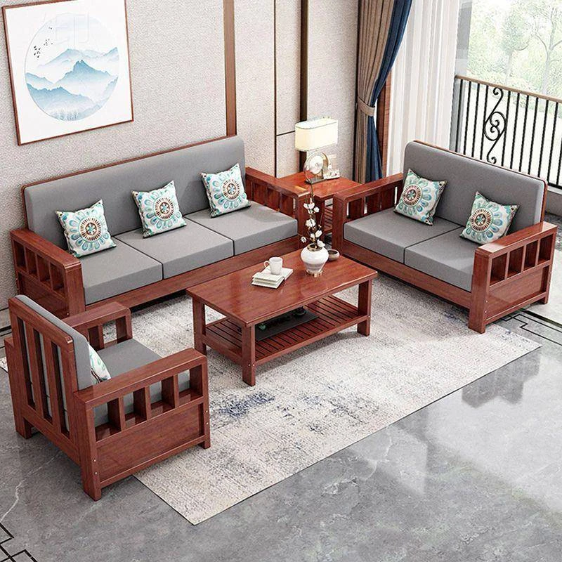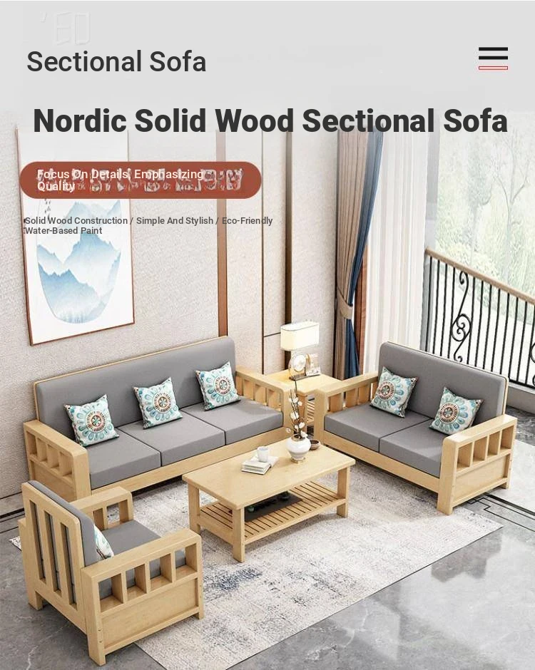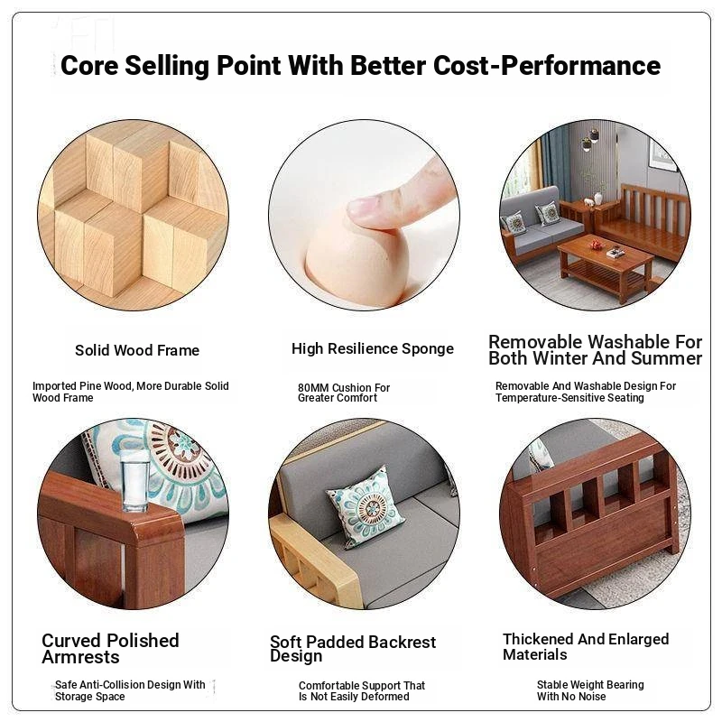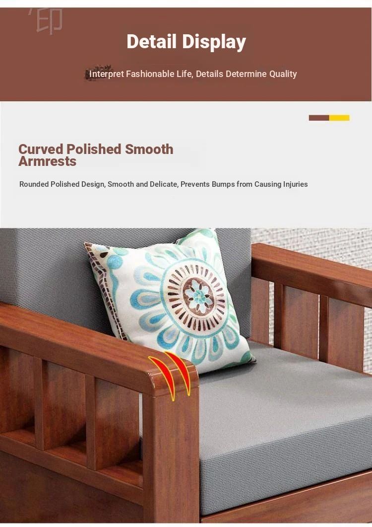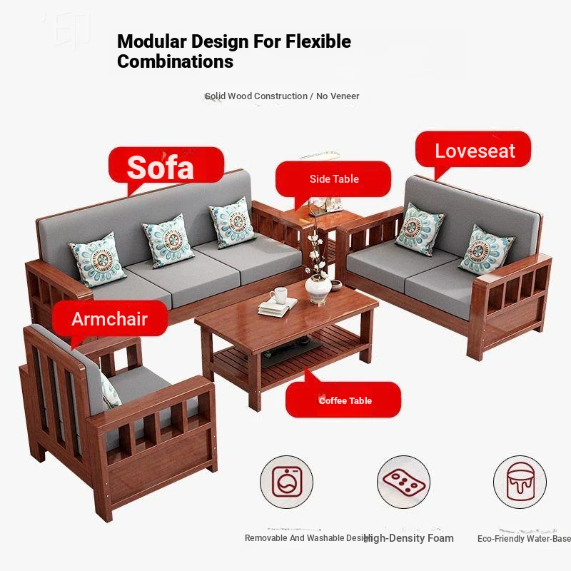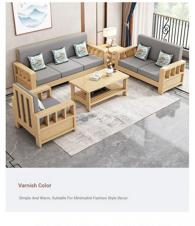 Modern Minimalist Solid Wood Sofa Set for Small Living Rooms - Stylish 3-Seater Couch in New Chinese Style, Perfect for Cozy Spaces, Economical and Elegant Design