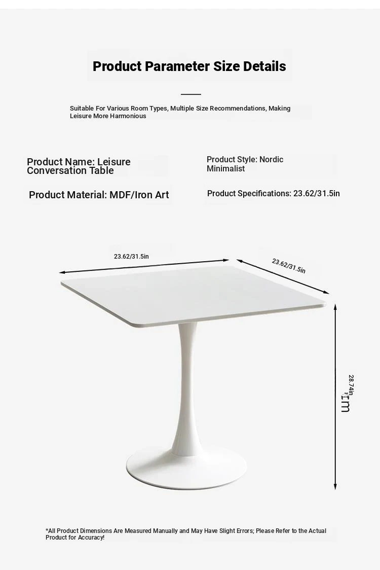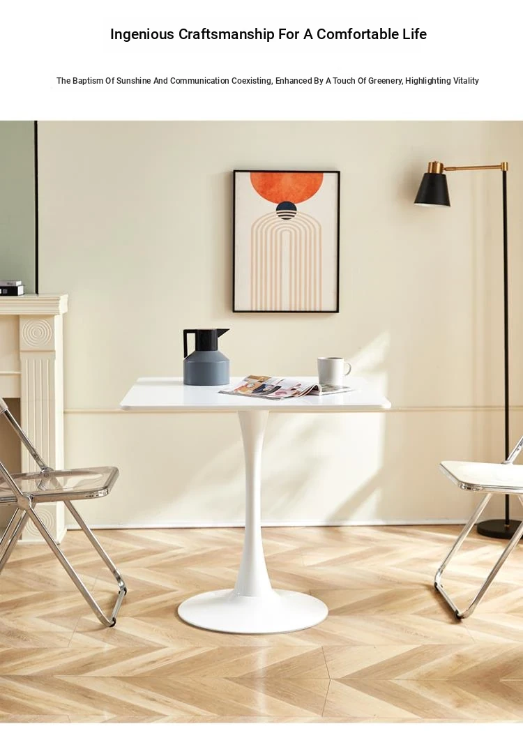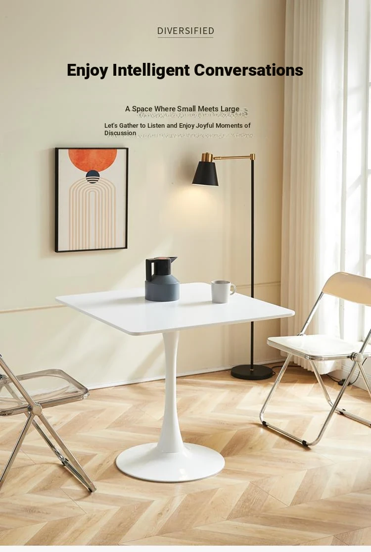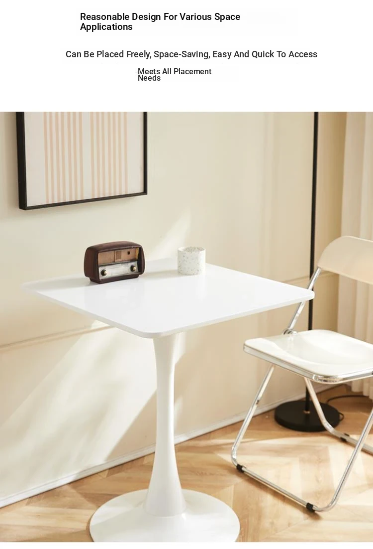Modern Minimalist White Square Dining Table for Small Spaces - Perfect for Homes, Cafes, and Balconies, Ideal for Coffee Meetings and Reception