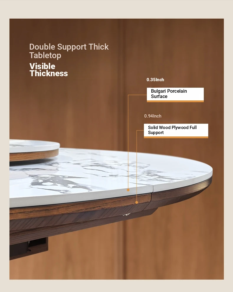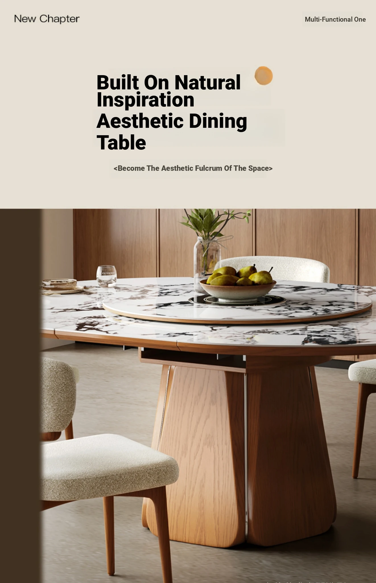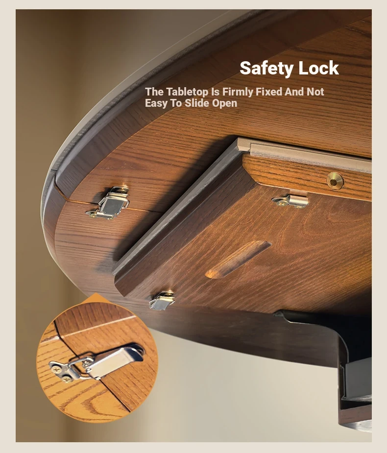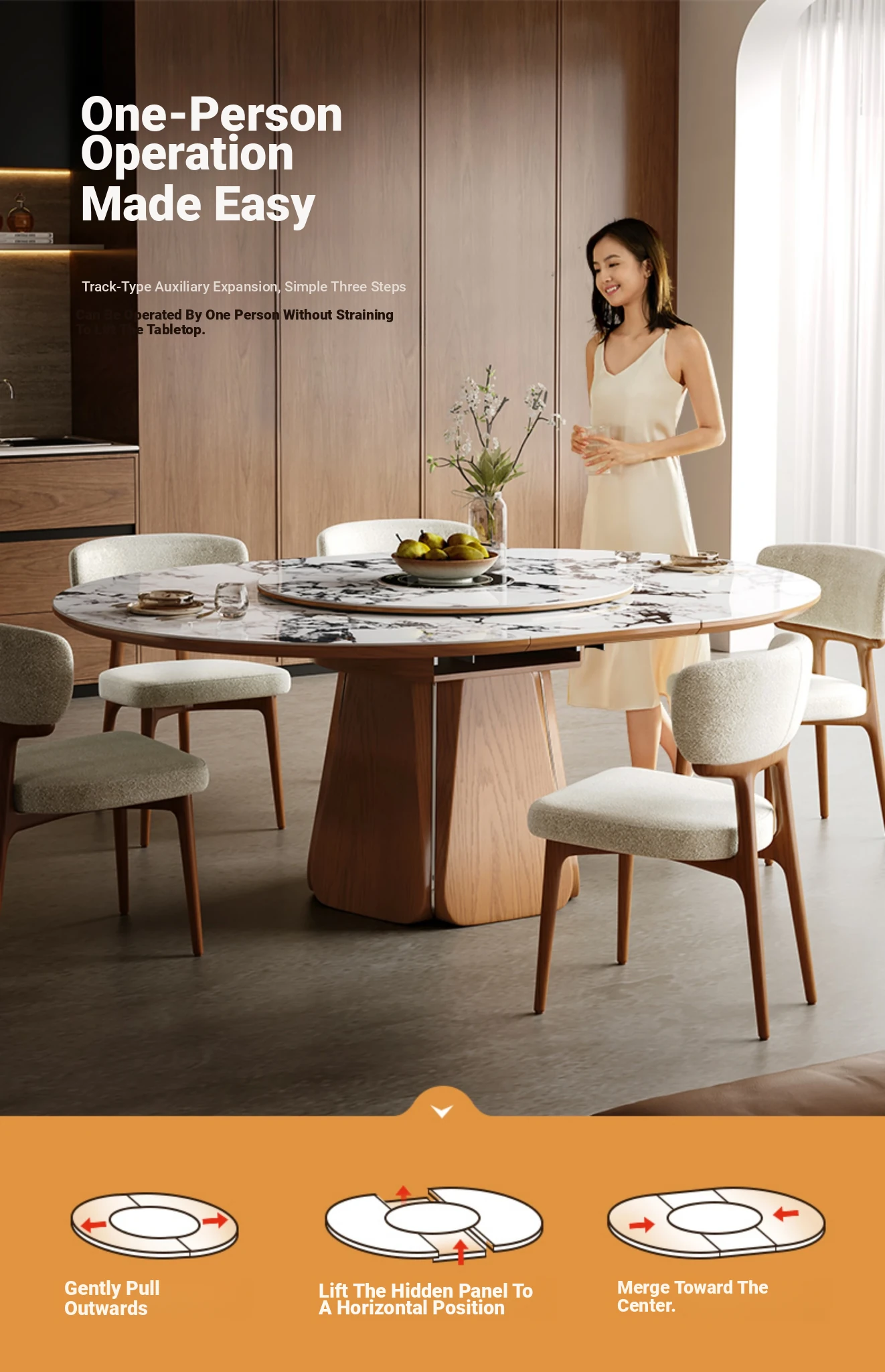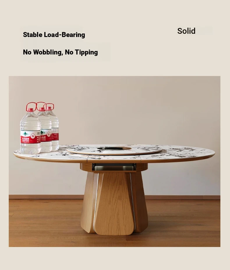 Modern Vintage Extendable Round Dining Table with Rotating Tray - High-End Integrated Induction Cooktop and Solid Wood Dining Chair Set for Home Use