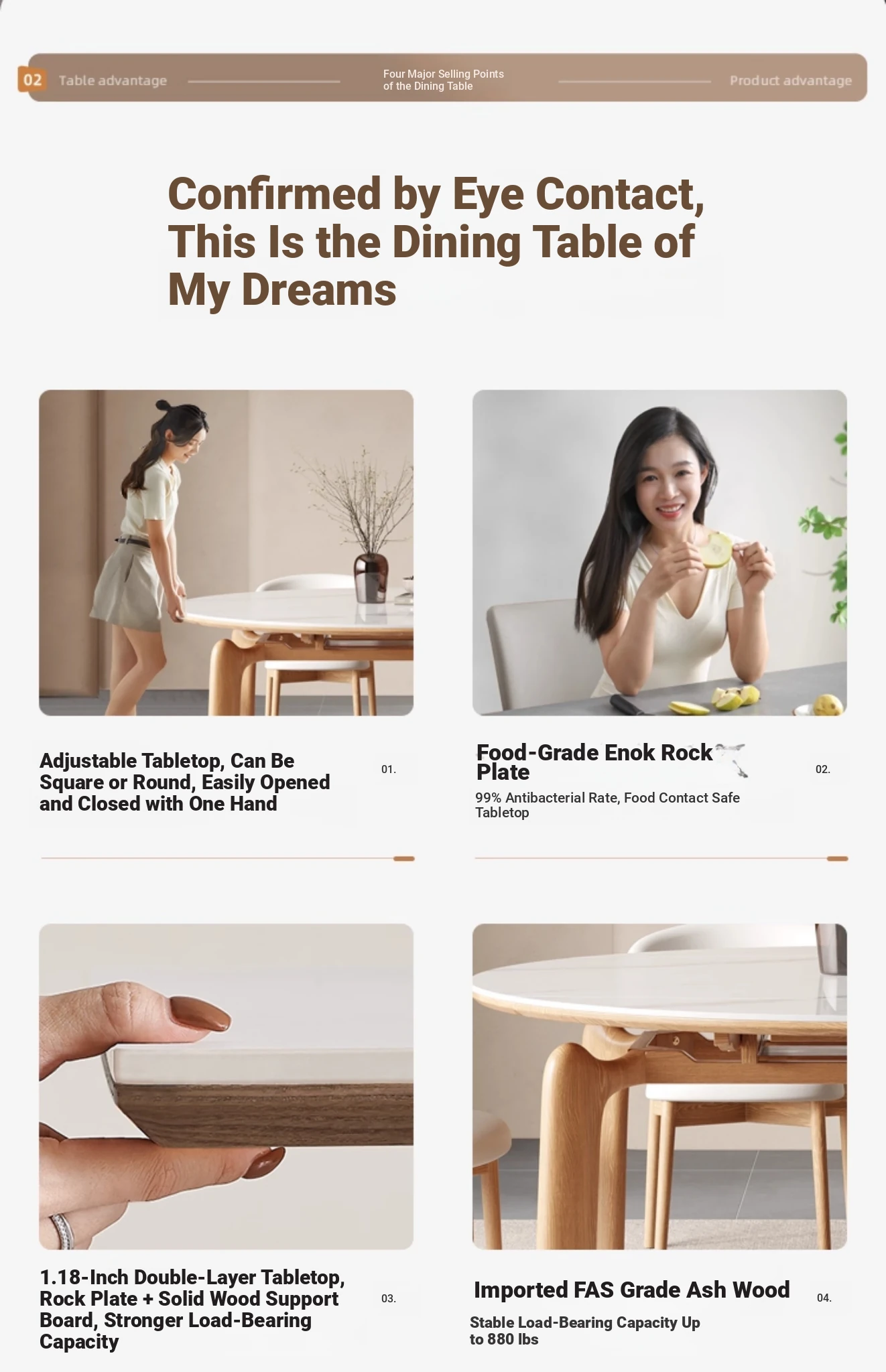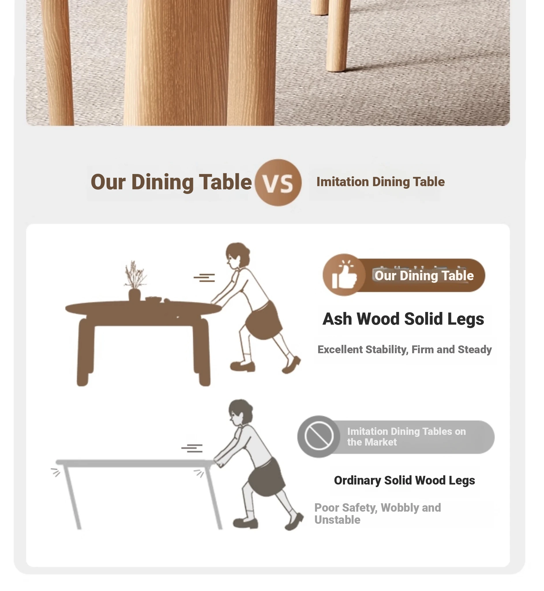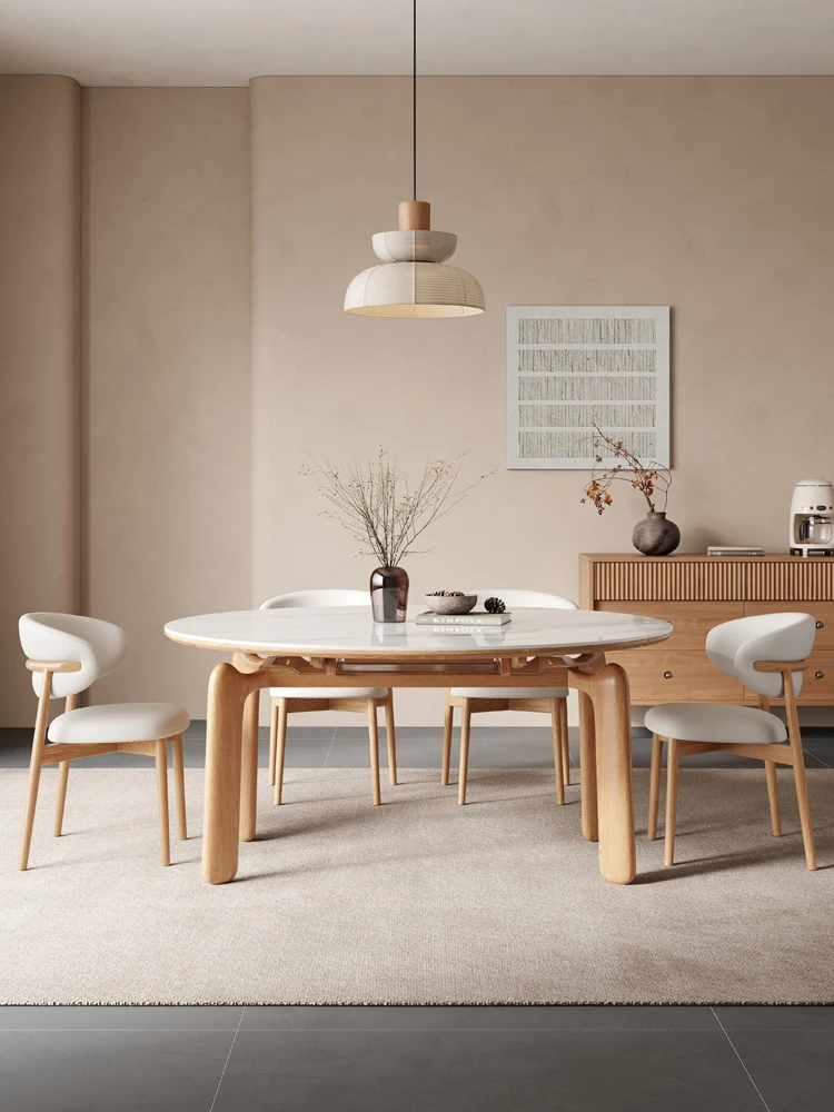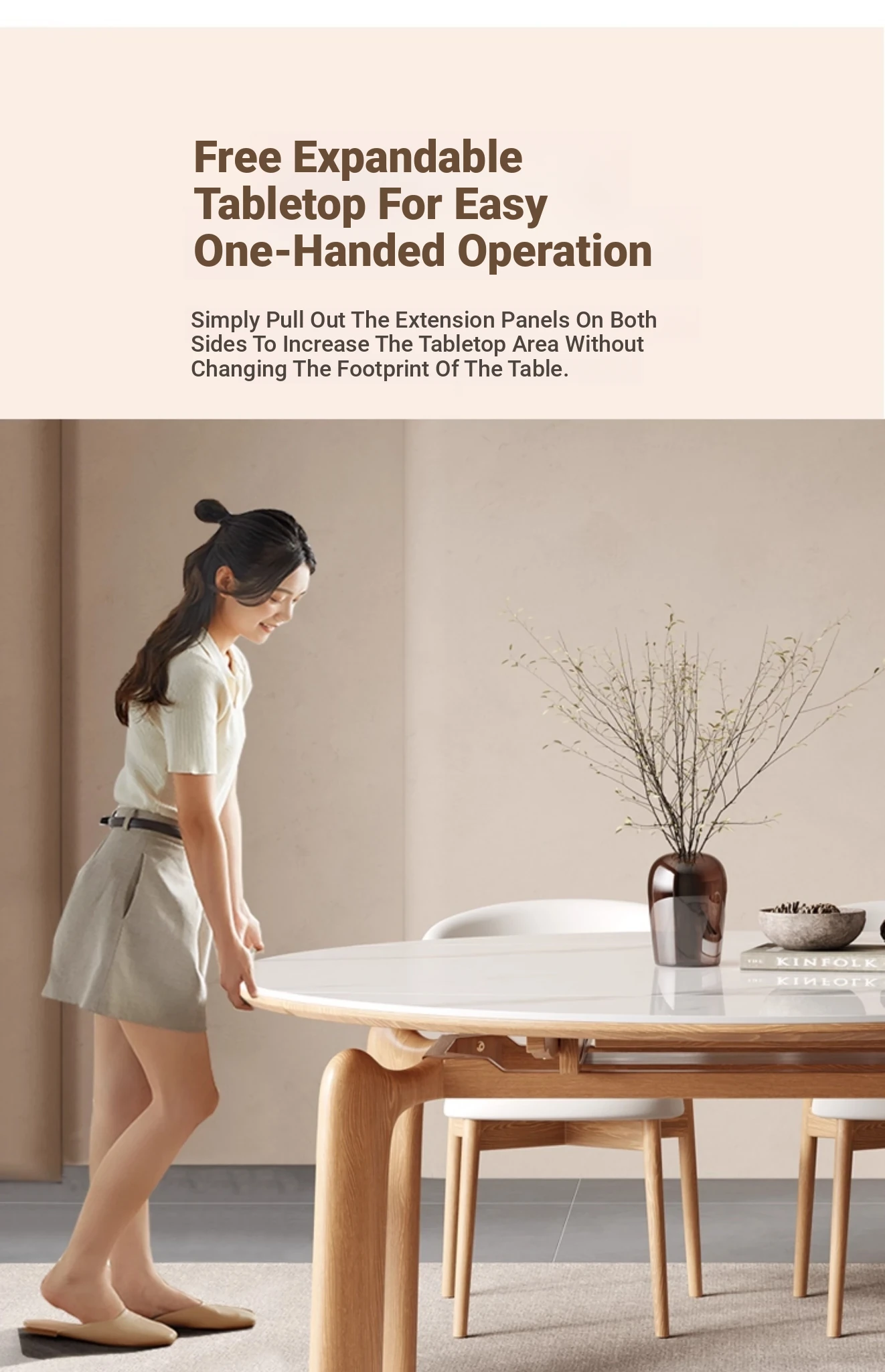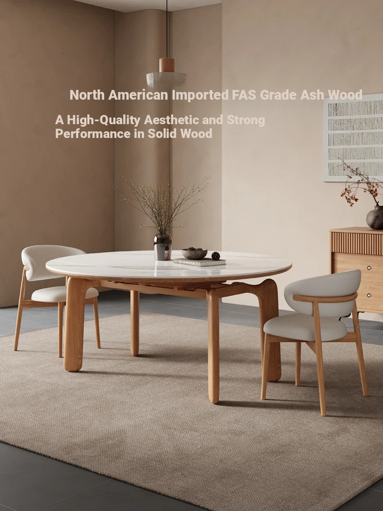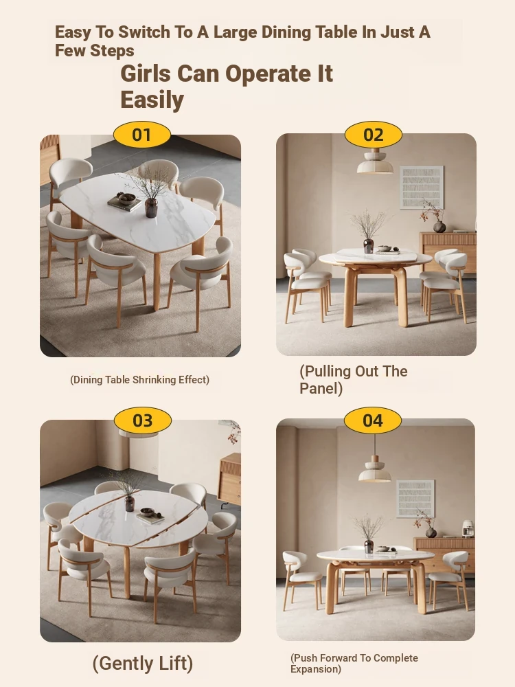 Natural Wood Color Elephant Leg Solid Wood Extendable Dining Table - Modern Minimalist Multifunctional Folding Table, Versatile Round and Square Design
