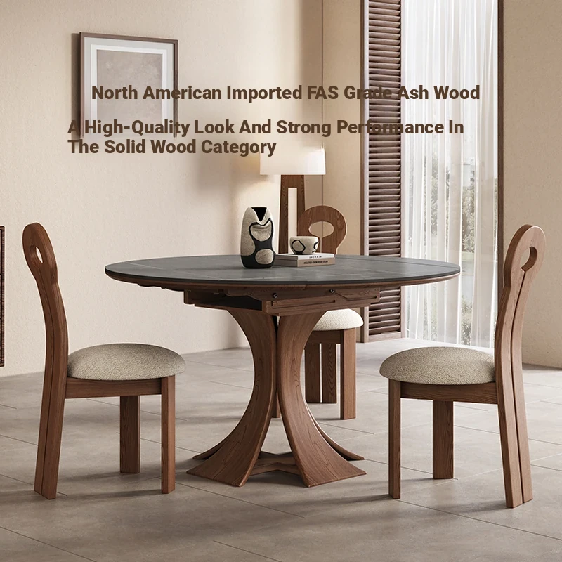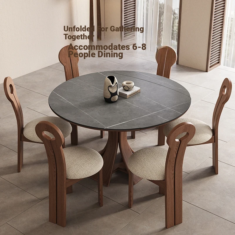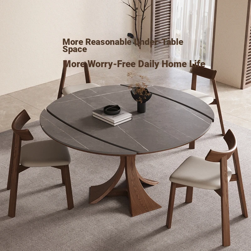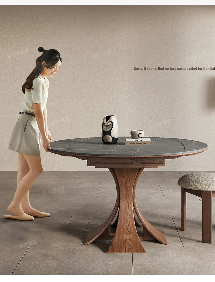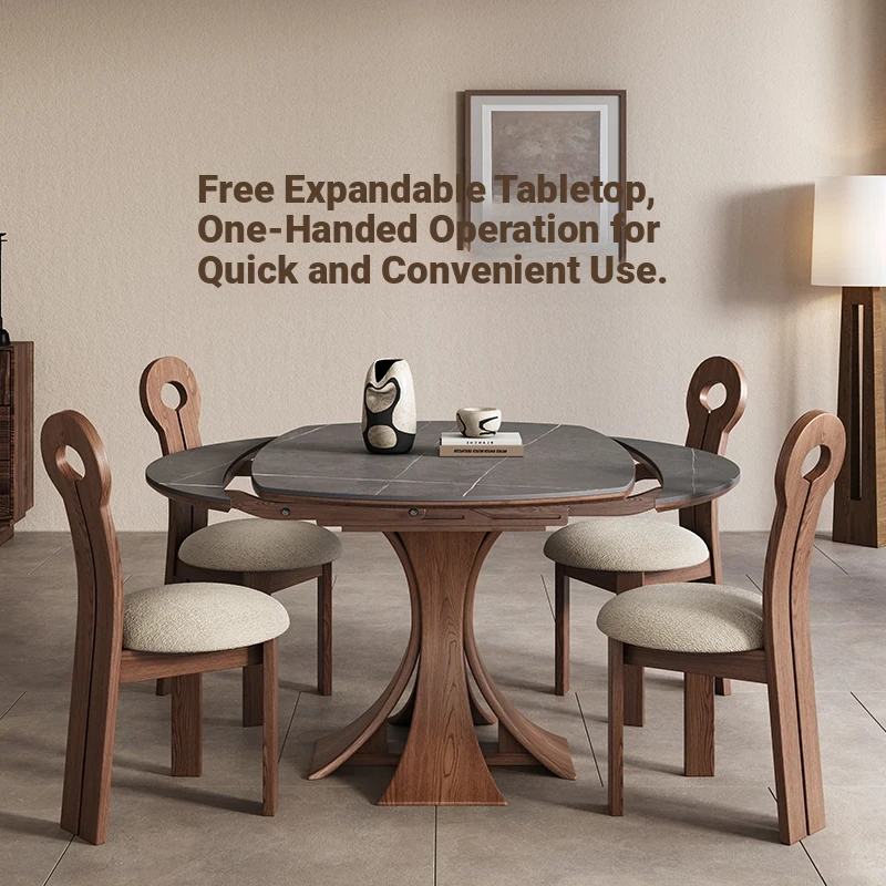 Nordic Expandable Round Dining Table - Versatile and Space-Saving Design for Small Homes, Features Foldable Solid Wood Construction, Perfect for Any Dining Experience.