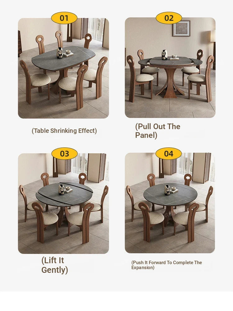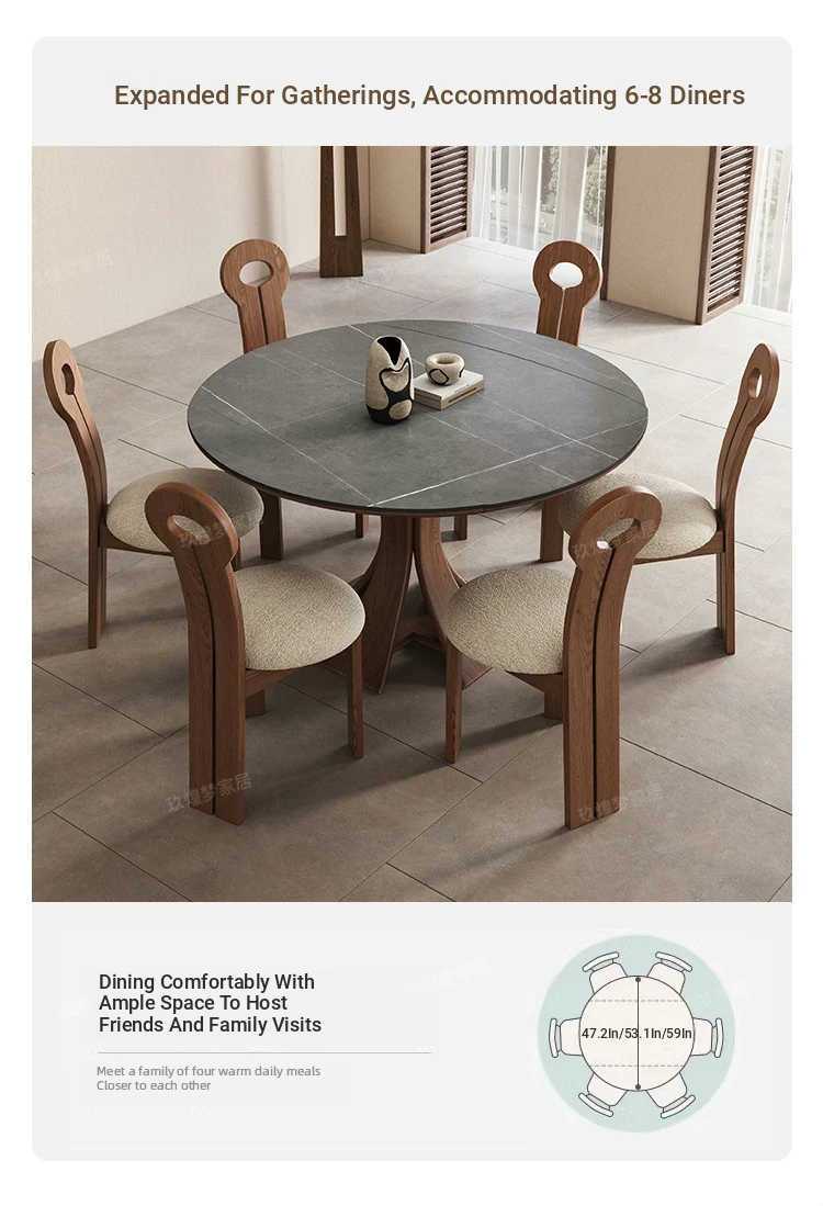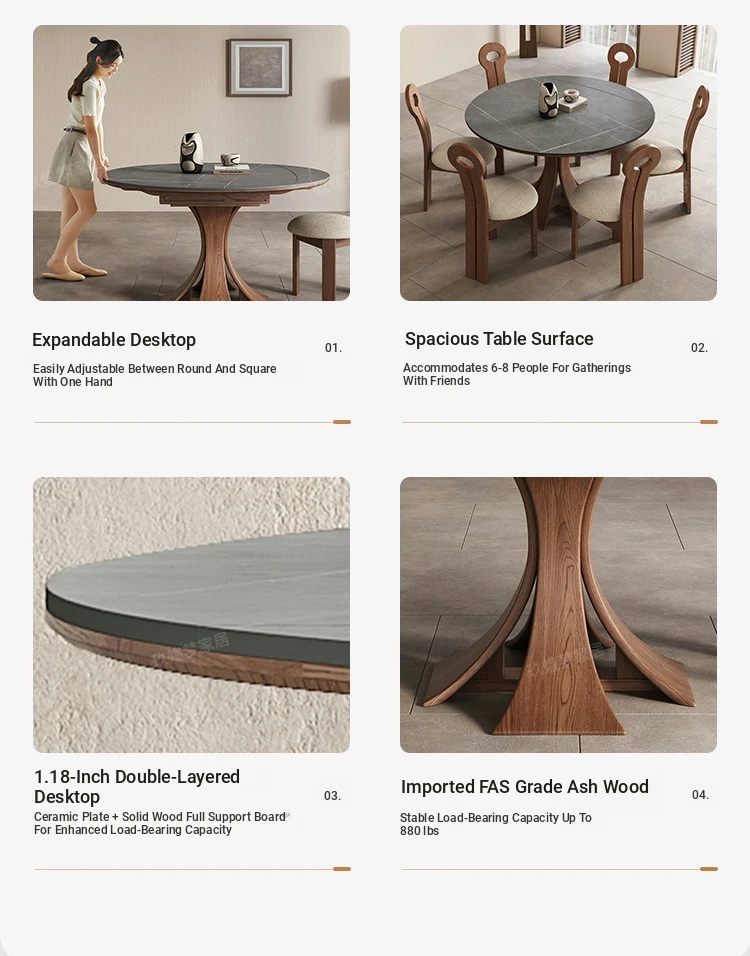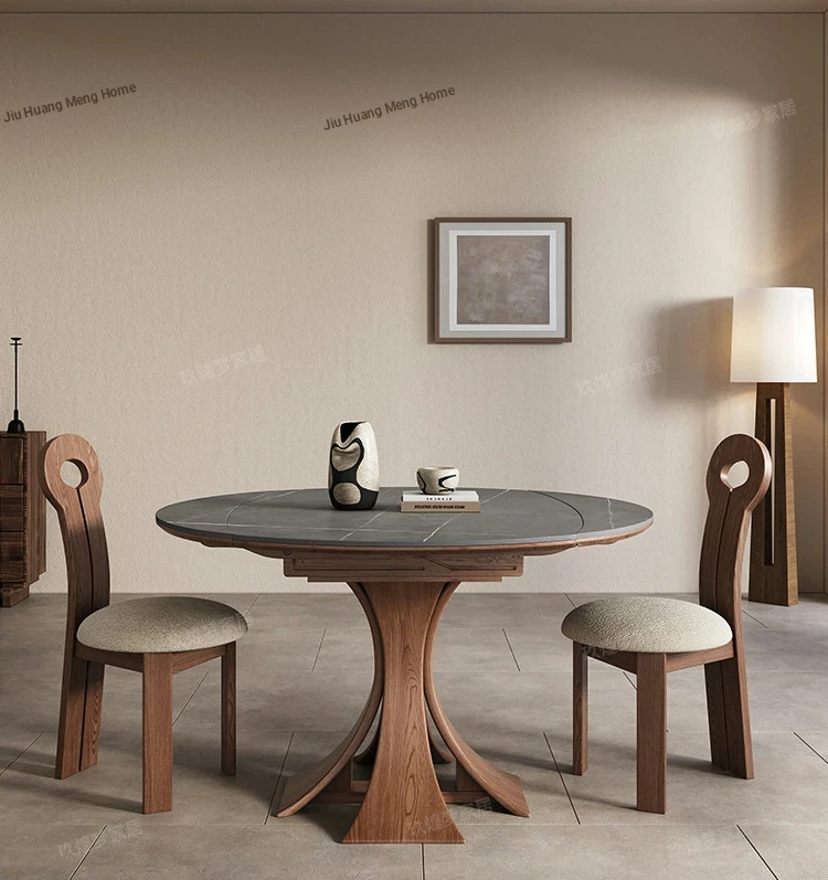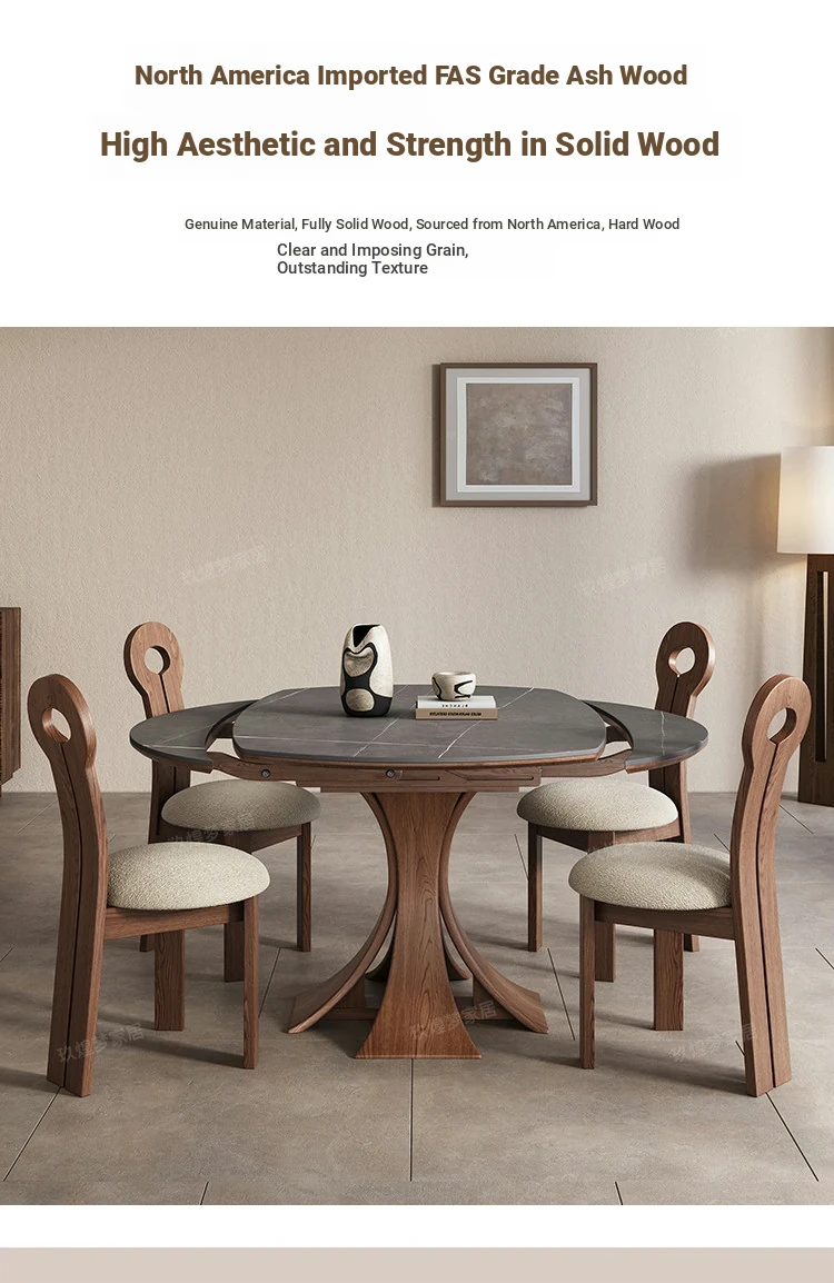 Nordic Expandable Round Dining Table - Versatile and Space-Saving Design for Small Homes, Features Foldable Solid Wood Construction, Perfect for Any Dining Experience.