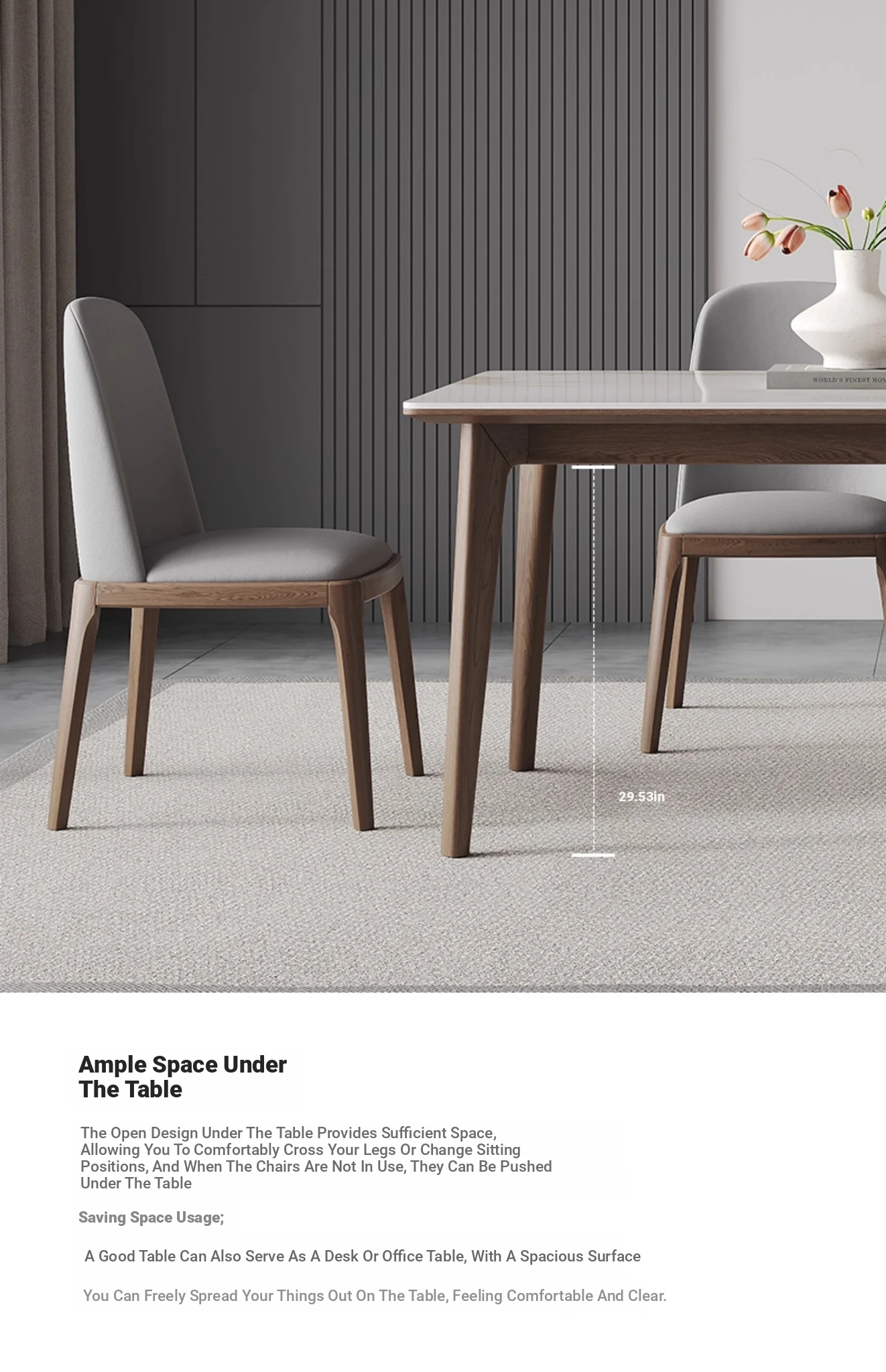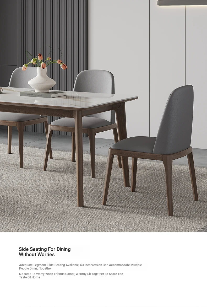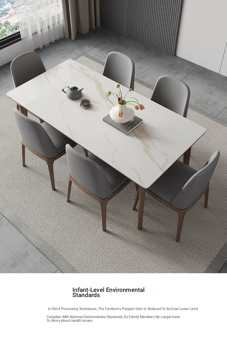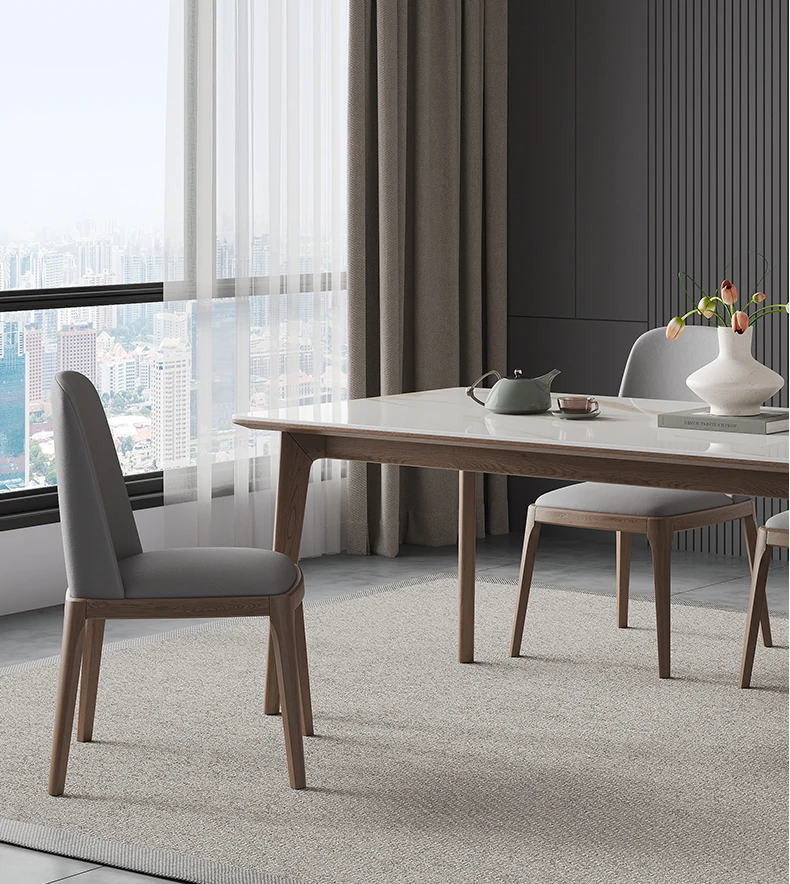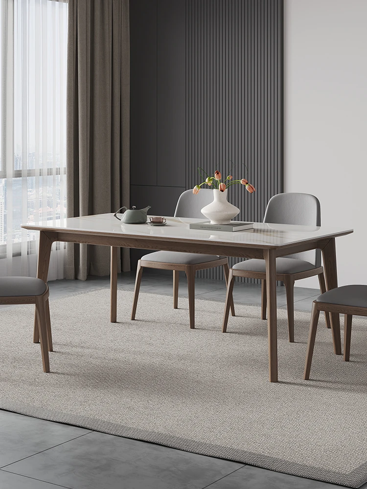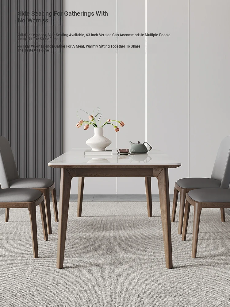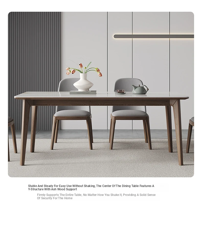 Nordic Solid Wood Dining Table with Rock Slab - Modern Minimalist Italian Design, Imported Ash Wood, Rectangular Small Space Dining Set with Chairs