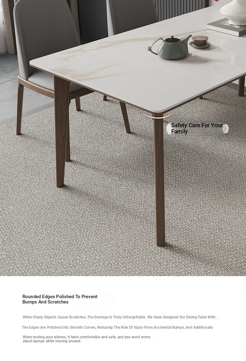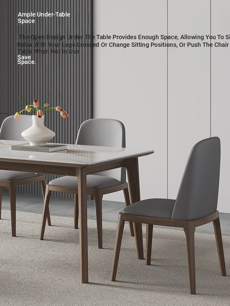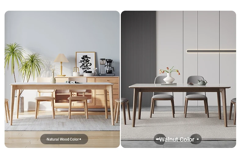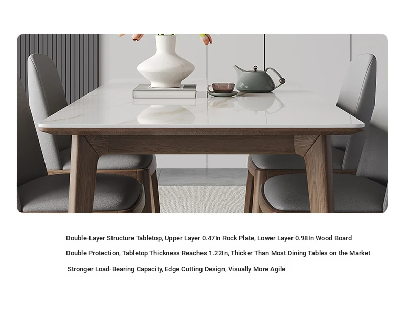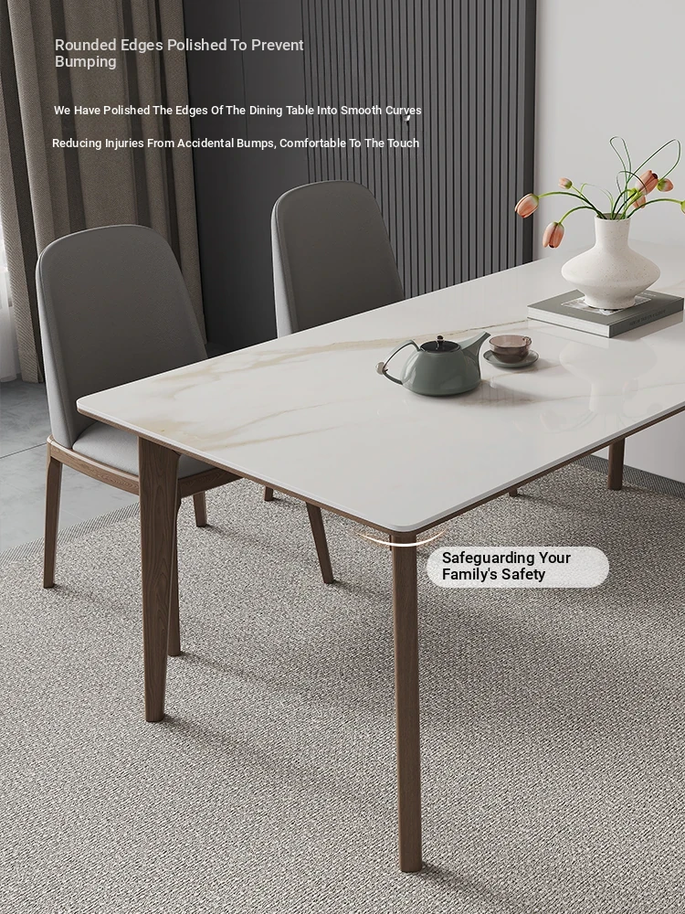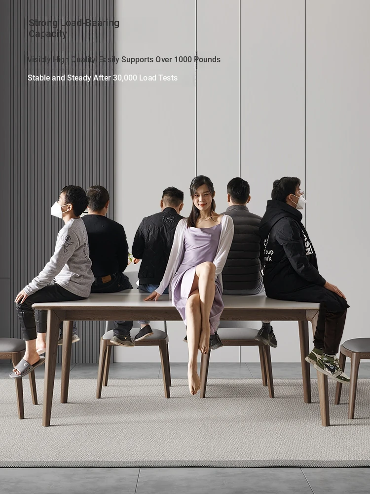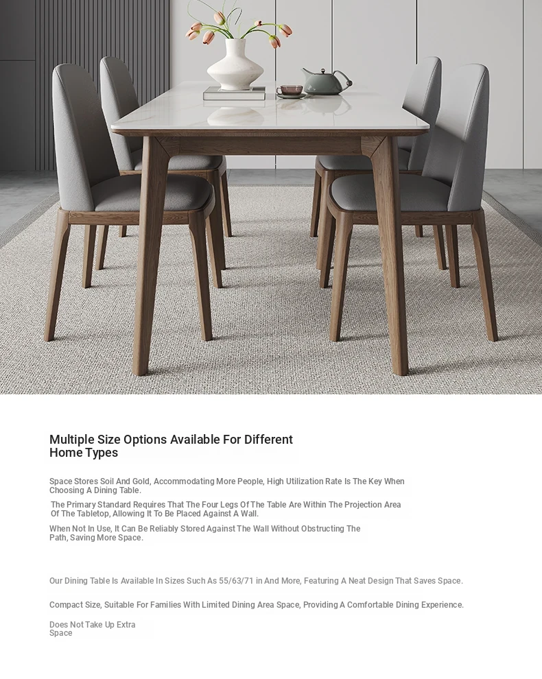 Nordic Solid Wood Dining Table with Rock Slab - Modern Minimalist Italian Design, Imported Ash Wood, Rectangular Small Space Dining Set with Chairs
