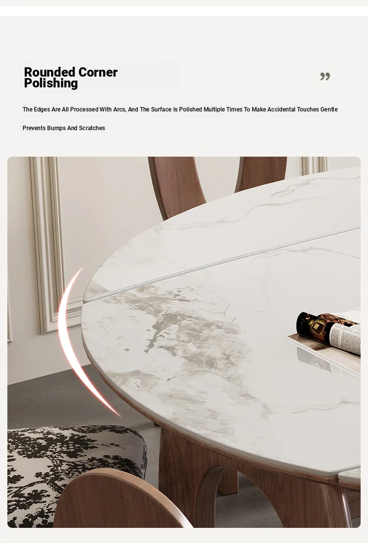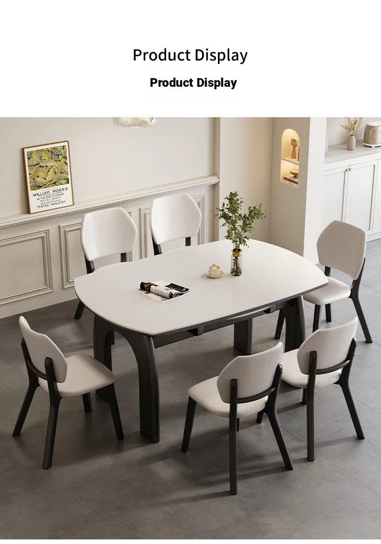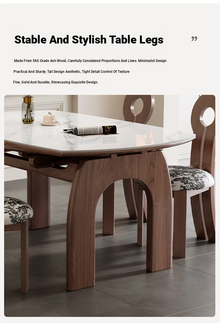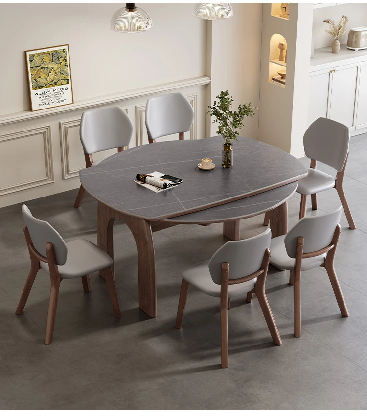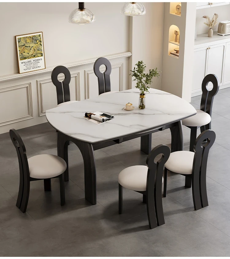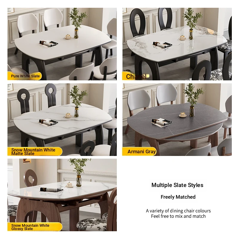 Solid Wood Rock plate telescopic dining table + U-shaped chair * 6
