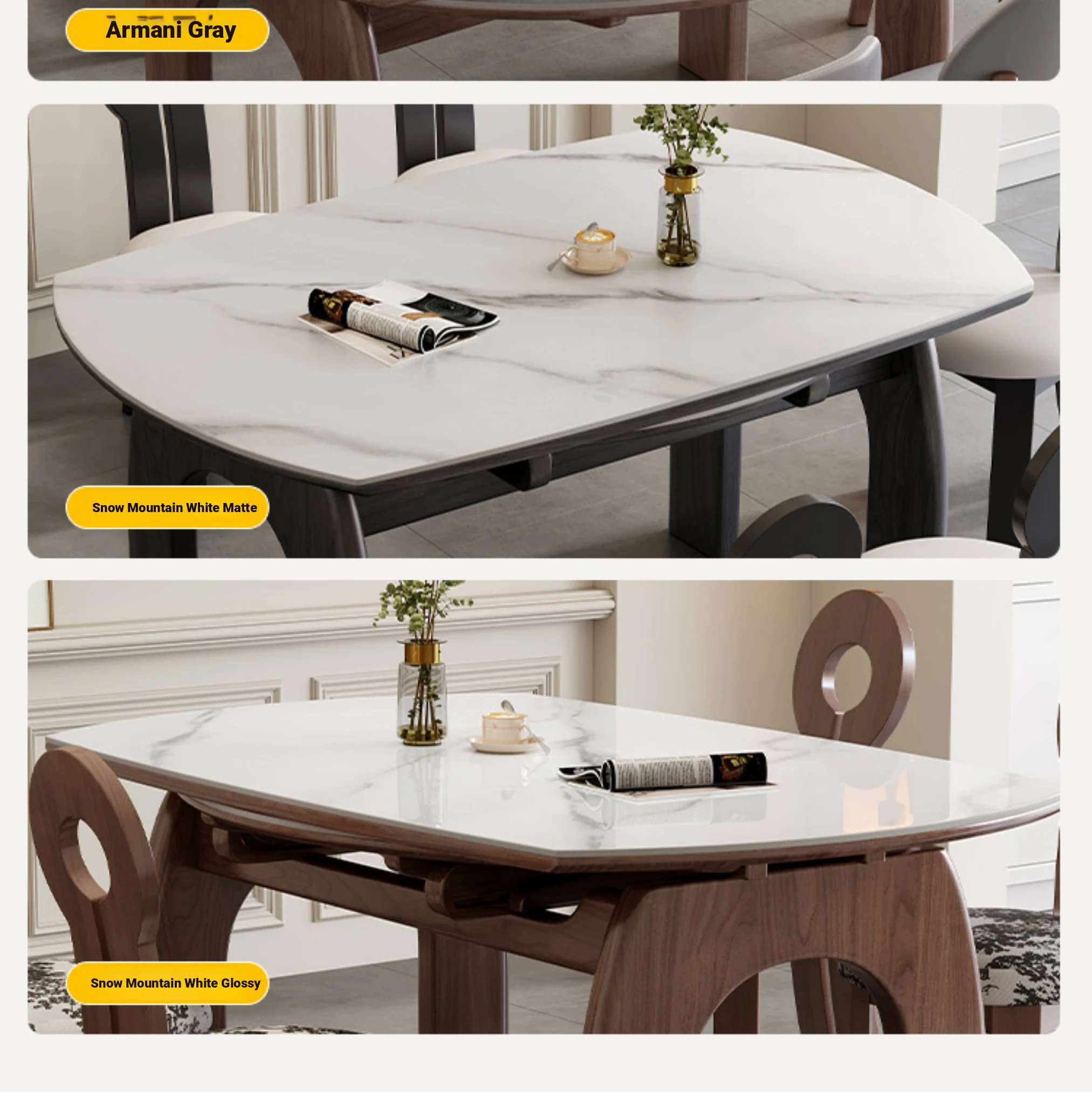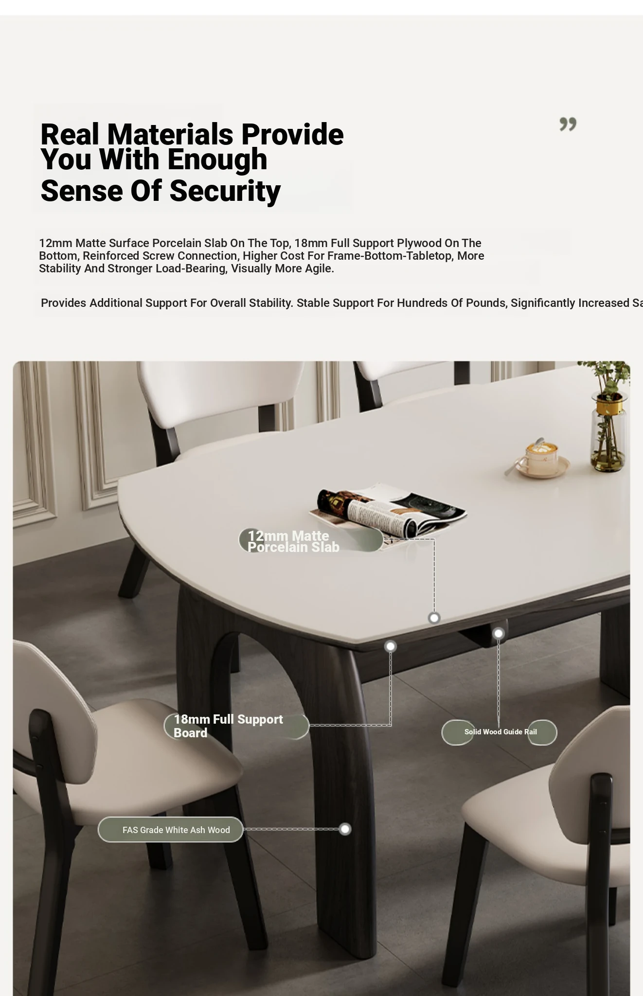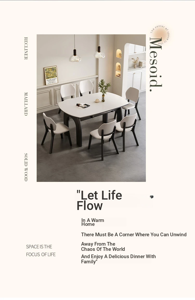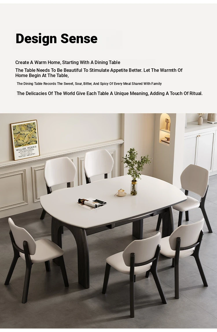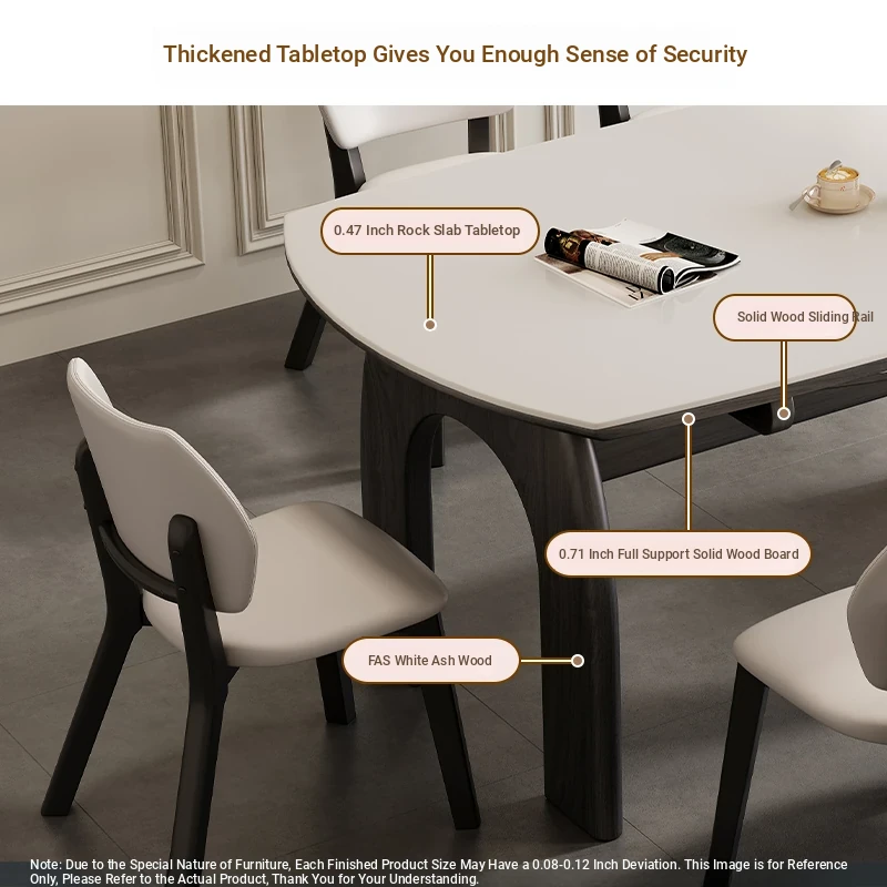 Solid Wood Rock plate telescopic dining table + U-shaped chair * 6